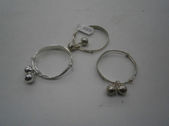 Three baby bracelet rattles, stamped 925