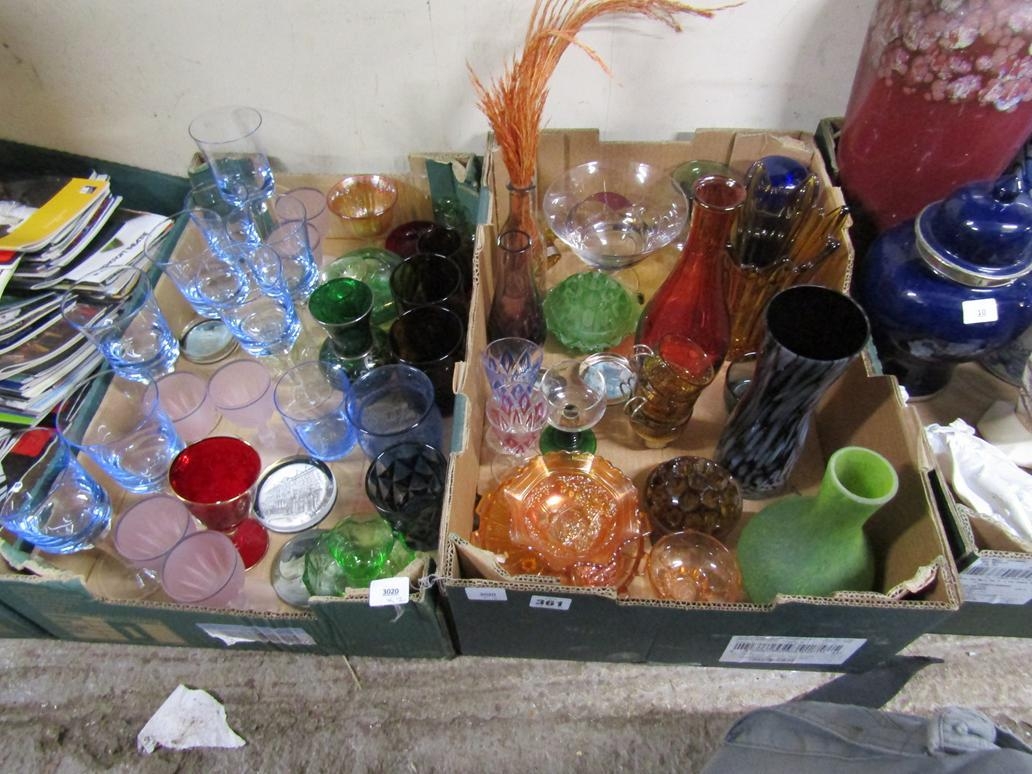TWO BOXES OF COLOURED GLASS