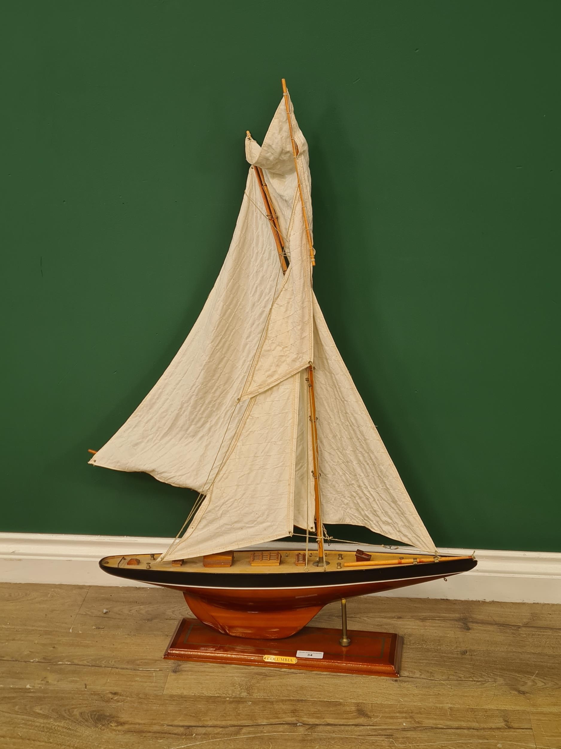 A Model Sailing Boat "Columbia" raised on plinth base, 3ft 3...