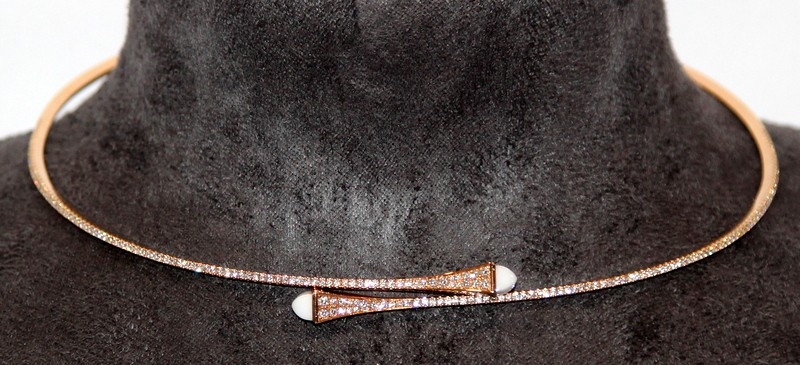 Anita Ko 18ct Rose Gold Diamond Slip On Collar Necklace with White Agate Finials size large, set with 1.65 carats of diamonds. Presented boxed with price tag attached. Brand new and directly from a retail environment. RRP £11,200