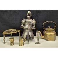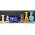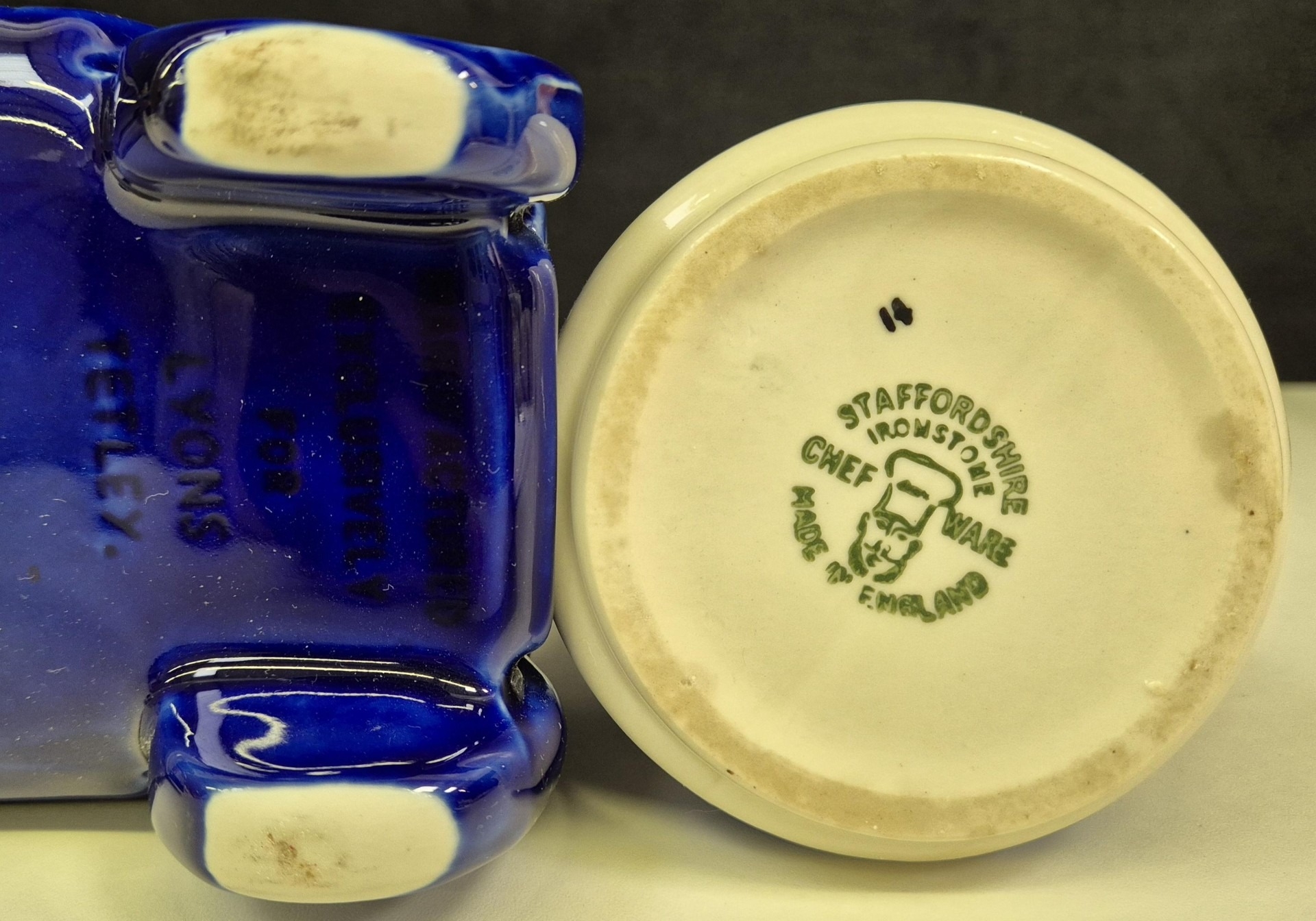 Selection of 6 pieces of vintage decor. To include a Luminarc glass vase, Tetley Teas piggy bank, Staffordshire Ironstone vinegar bottle, etc. Tallest 23cm.