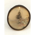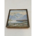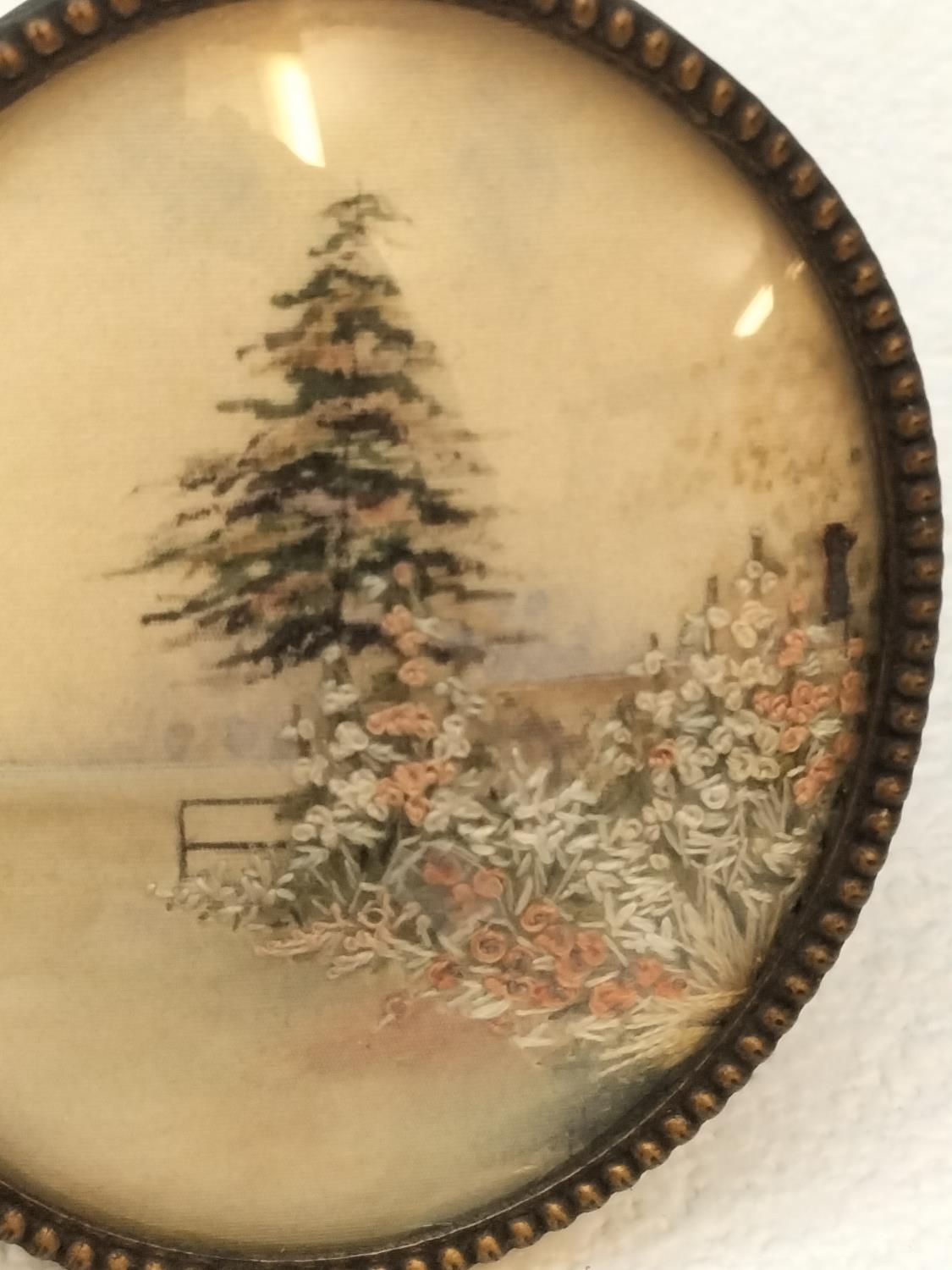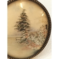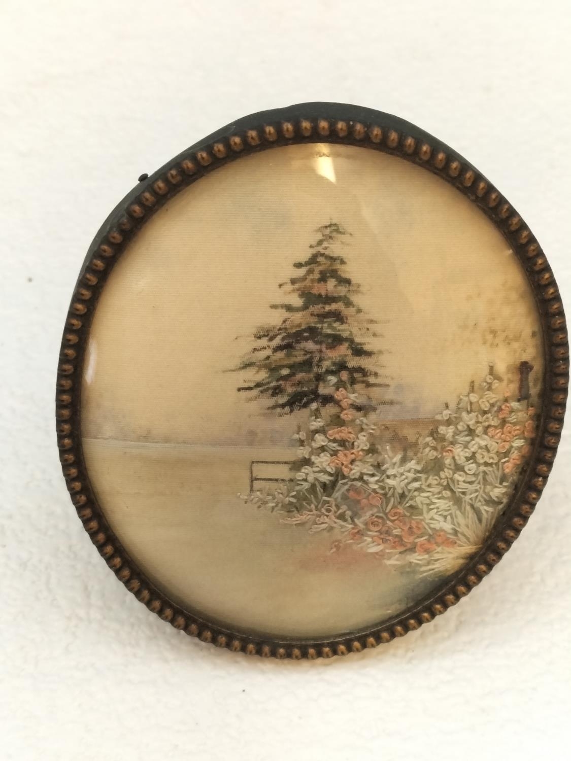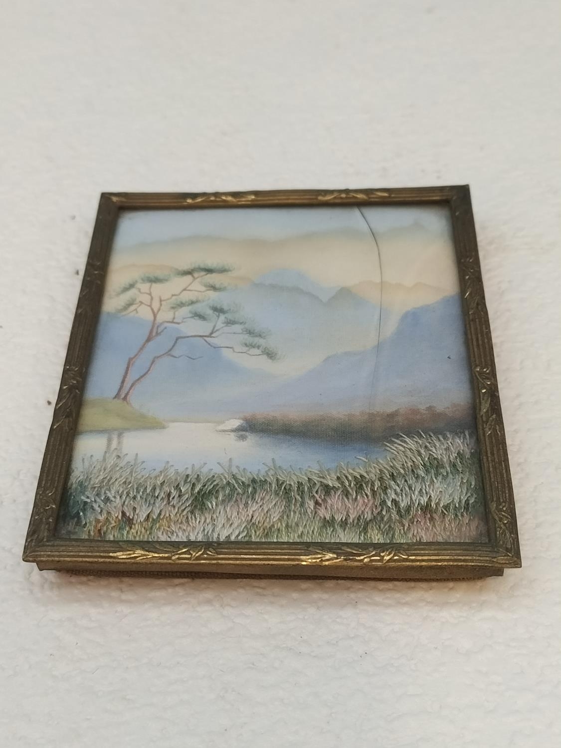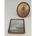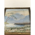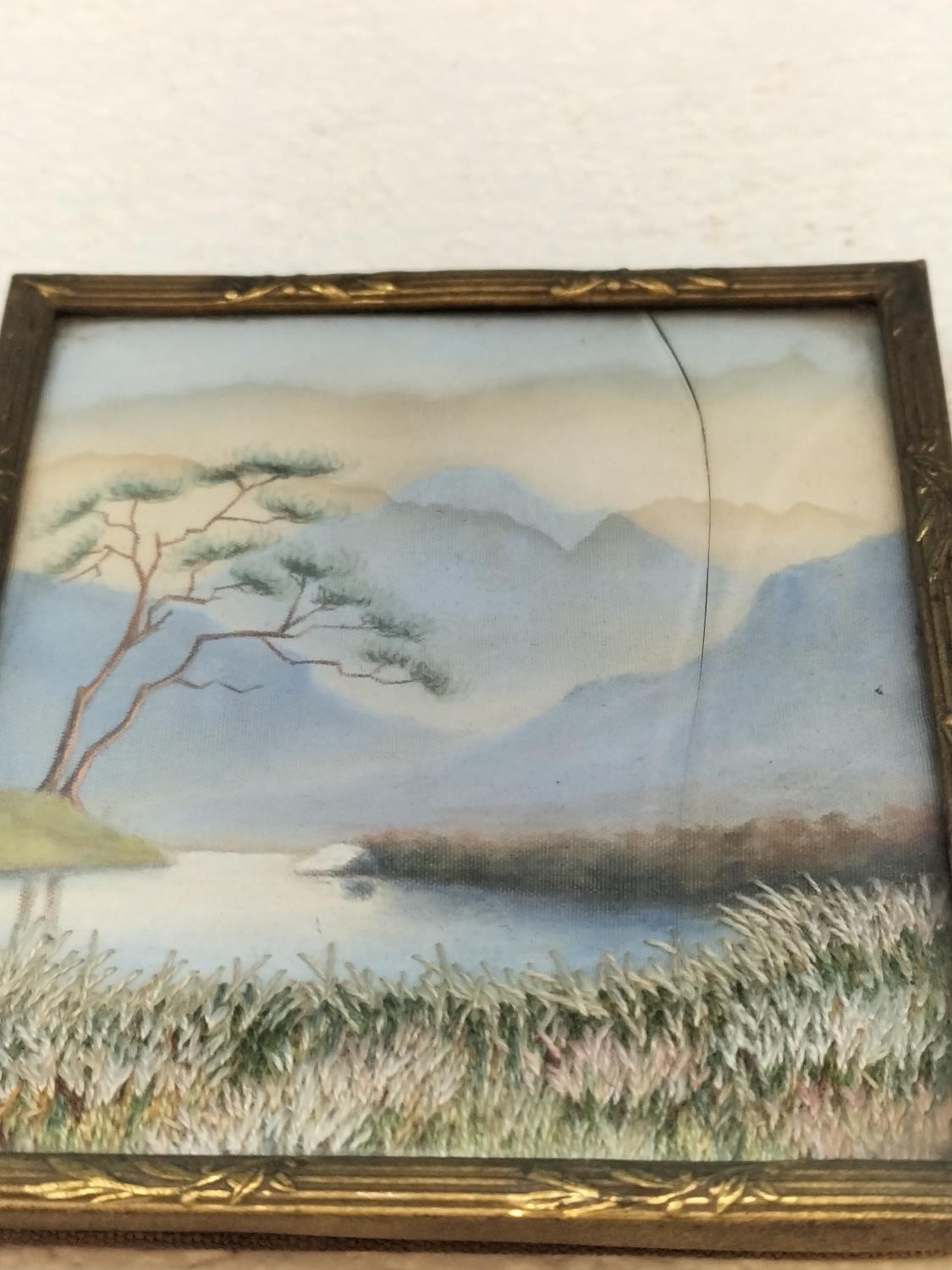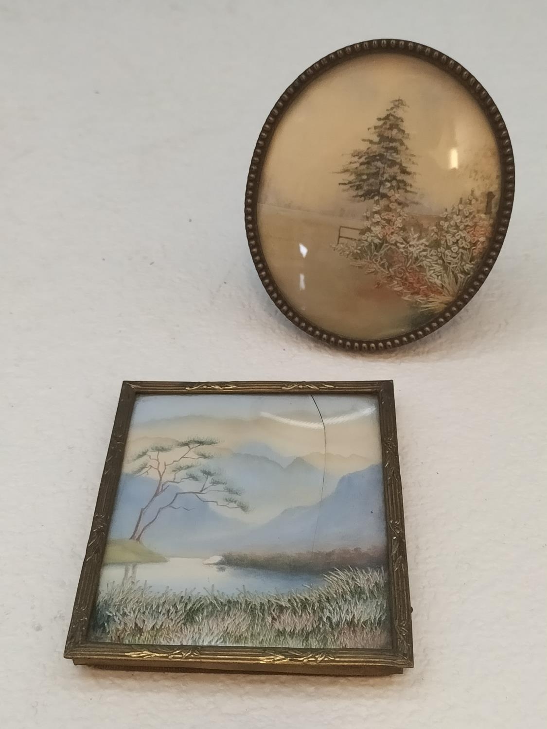 Antique Japanese Silk Embroidery Miniature Pictures (2). Largest 7cm x 8cm. One Glass A/F.