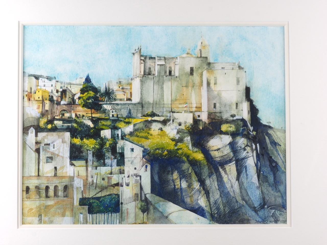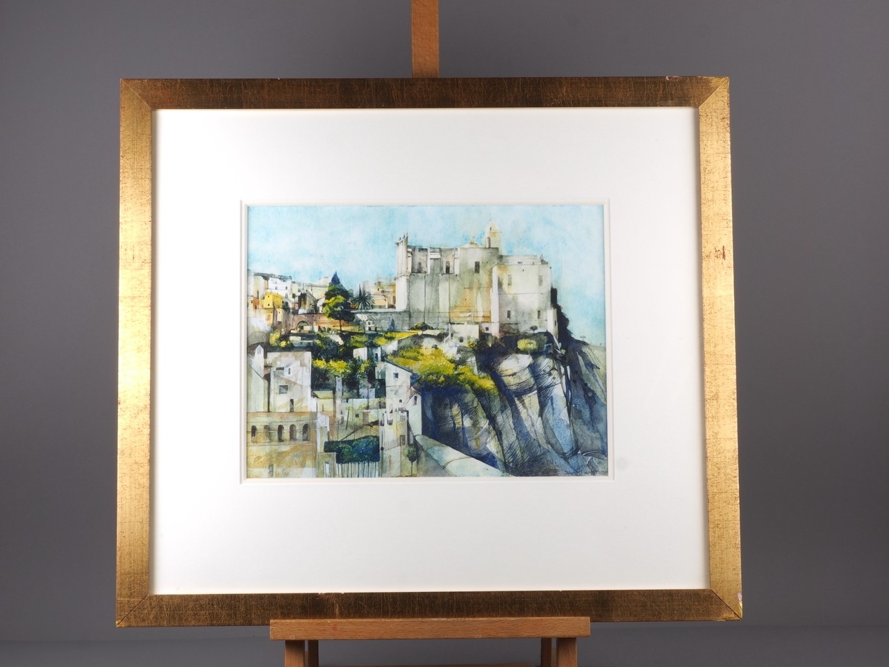 David Firmstore: watercolours, Italian landscape, possibly Grotte di Castro? 10 1/2" x 13 3/4", in gilt strip frame