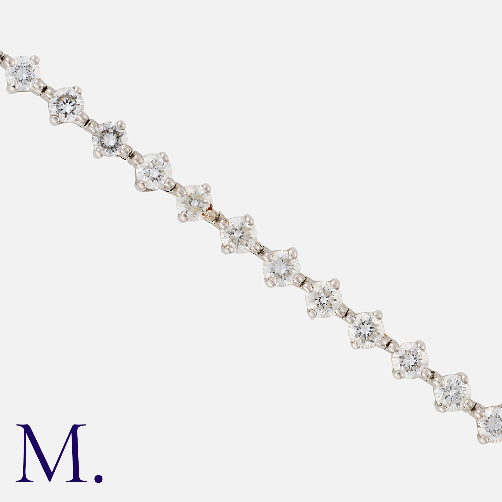 A Diamond Line Bracelet in 18 carat white gold, set with round brilliant cut diamonds totalling approximately 1.20 carats. Marked 750 for 18 carat gold.