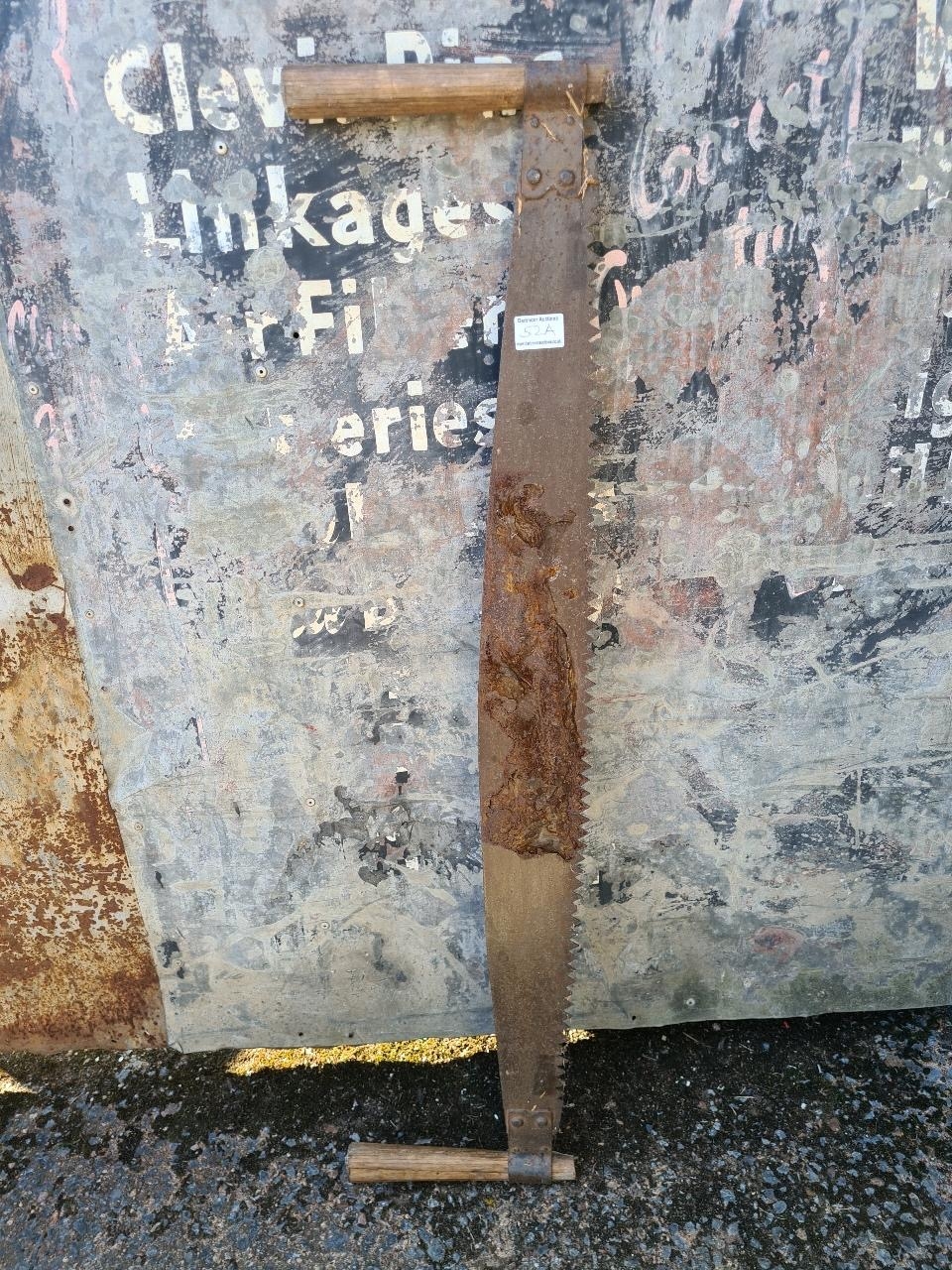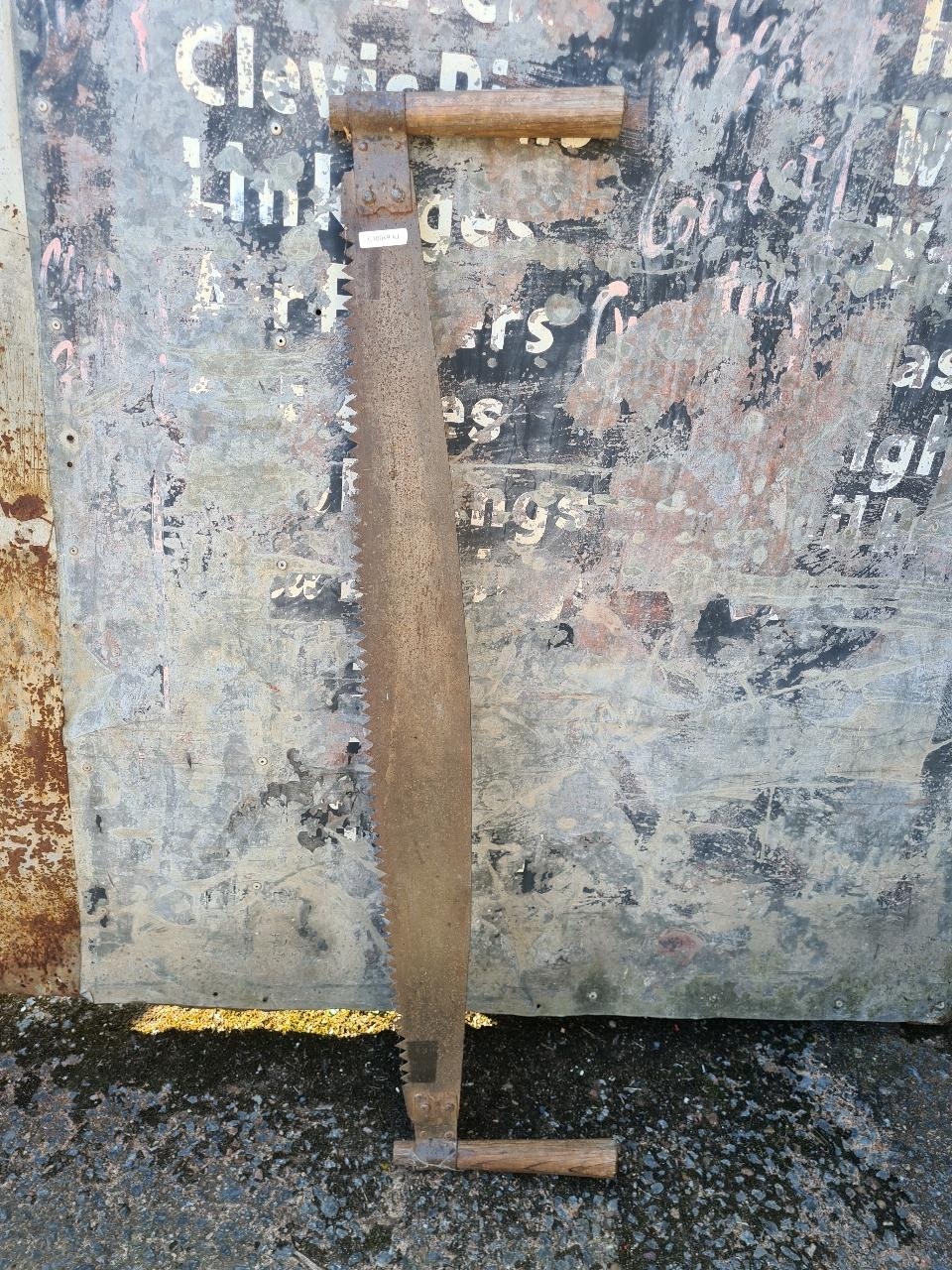 Vintage two-man crosscut saw - ideal for a decorative display. Approx H108cm.