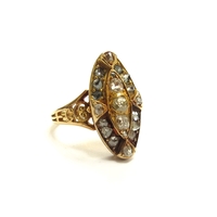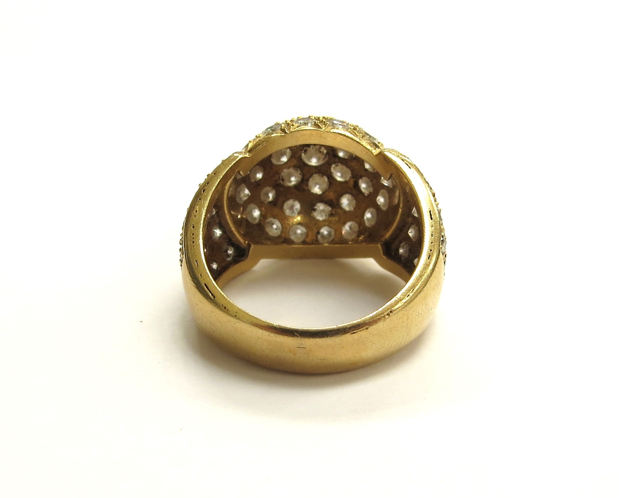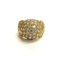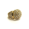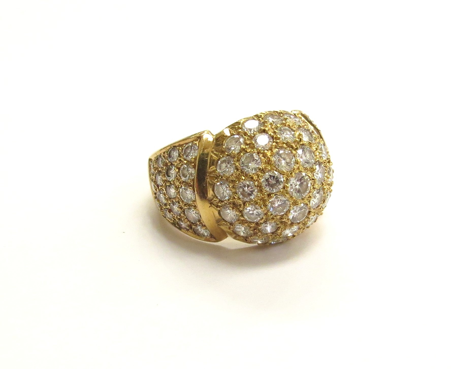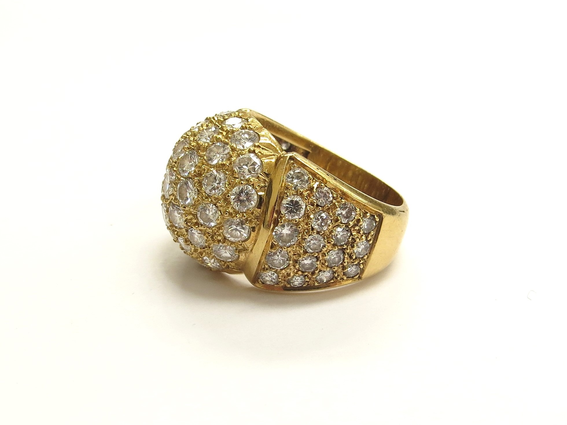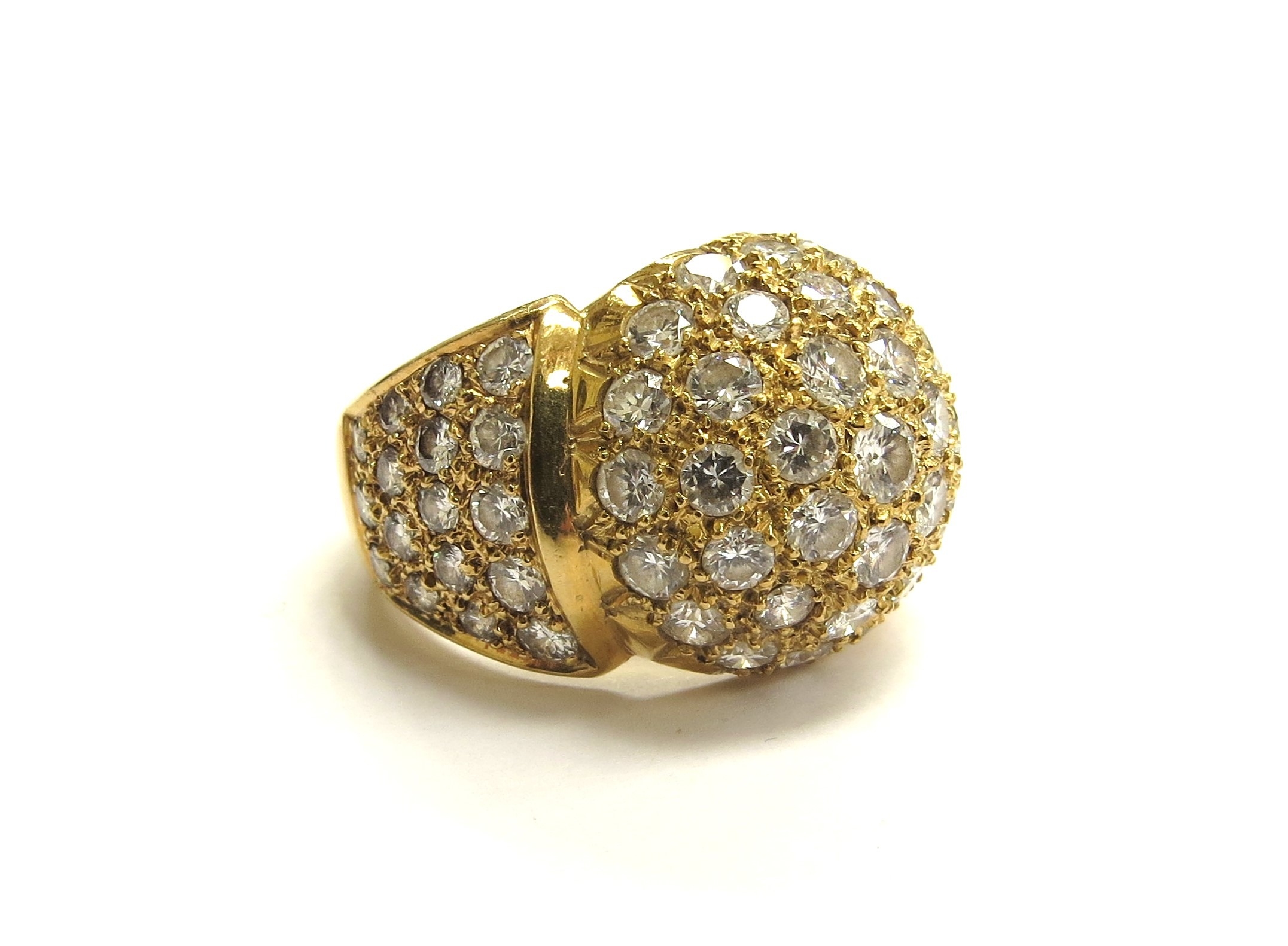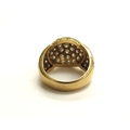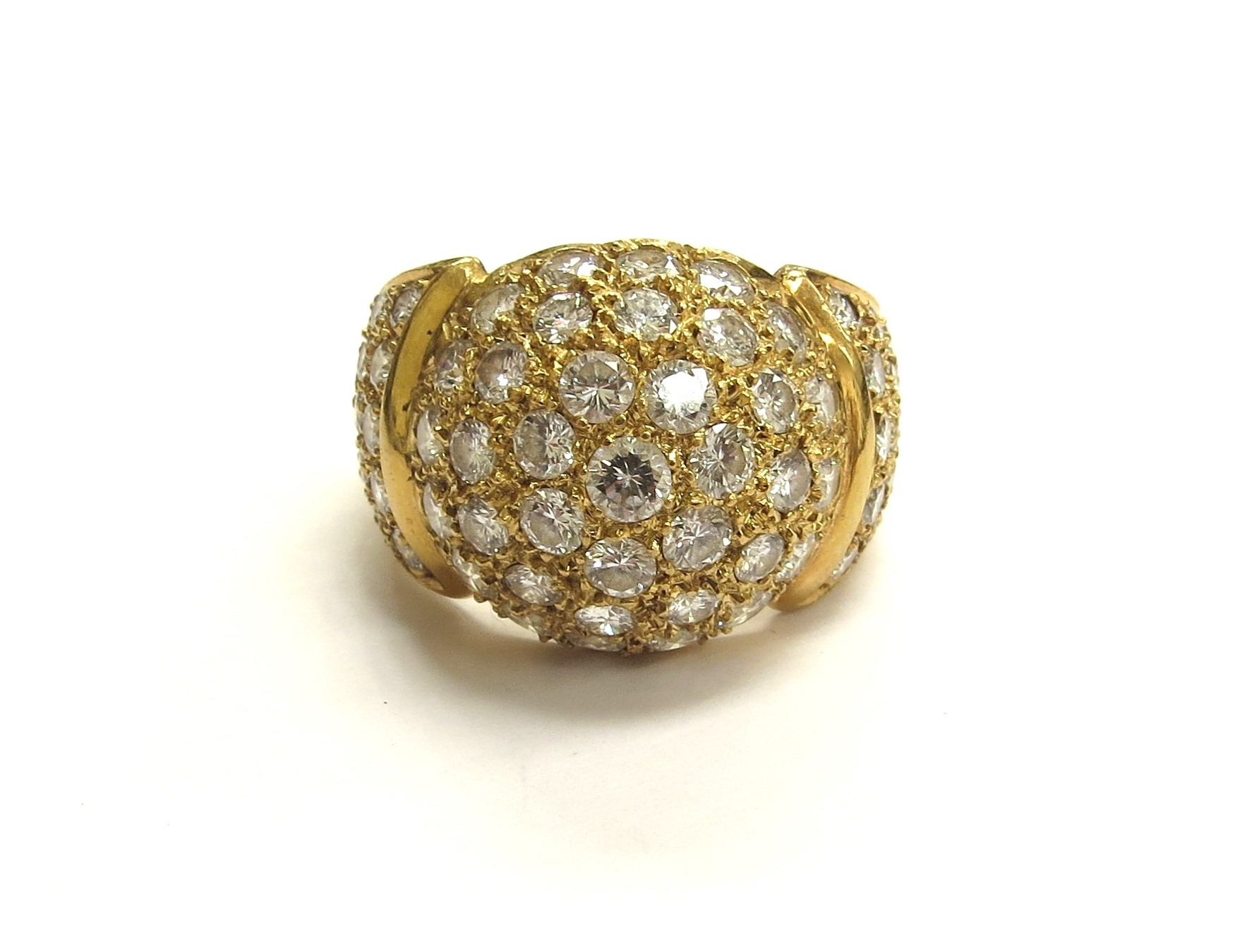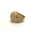 A gold diamond encrusted bombe ring, stamped 18k. Size P, 9.4g
