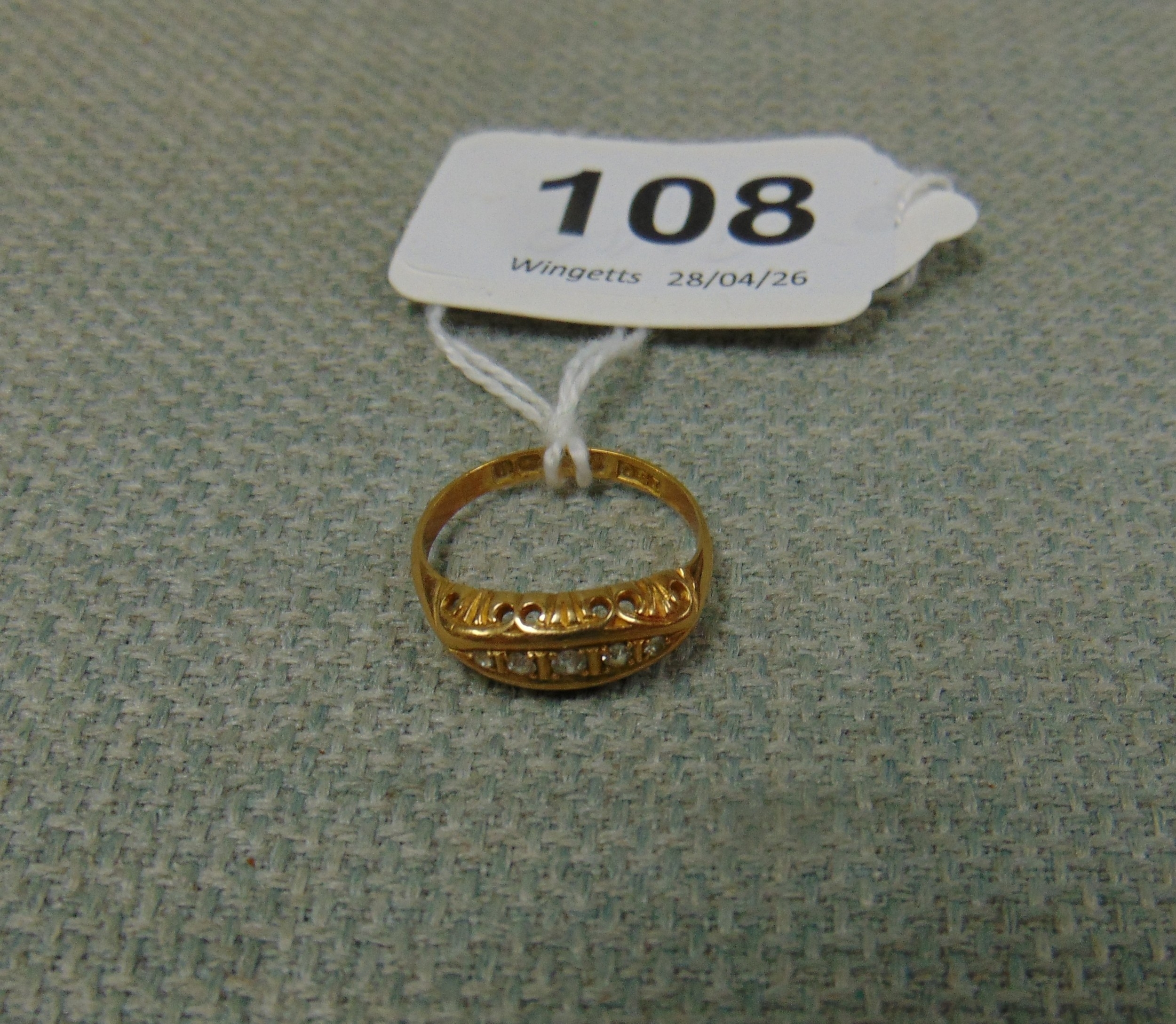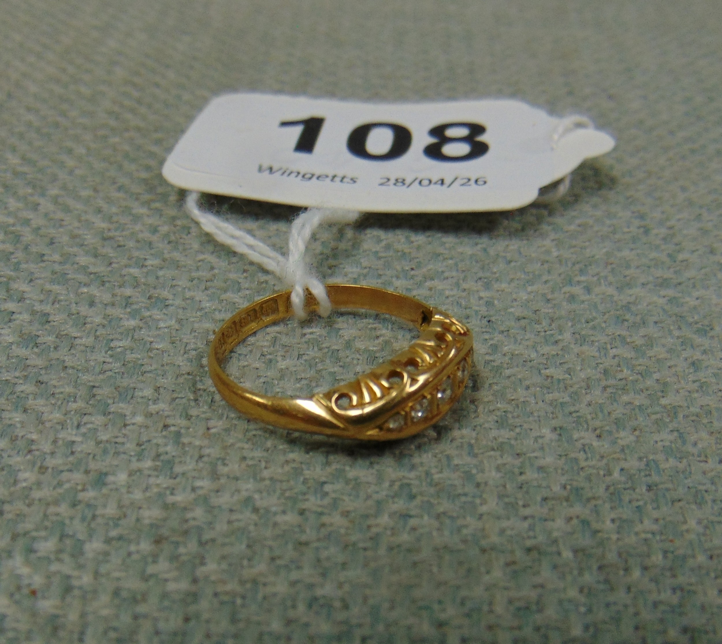 18ct gold ladies ring, set with five diamonds, size L, 2.4 gms.