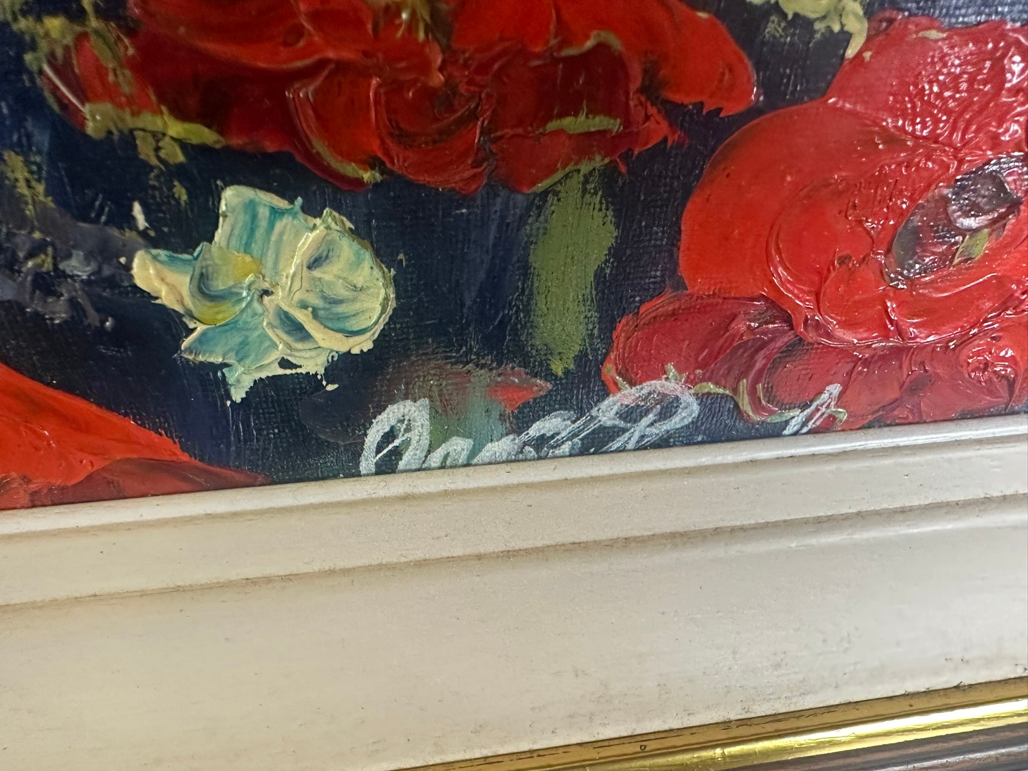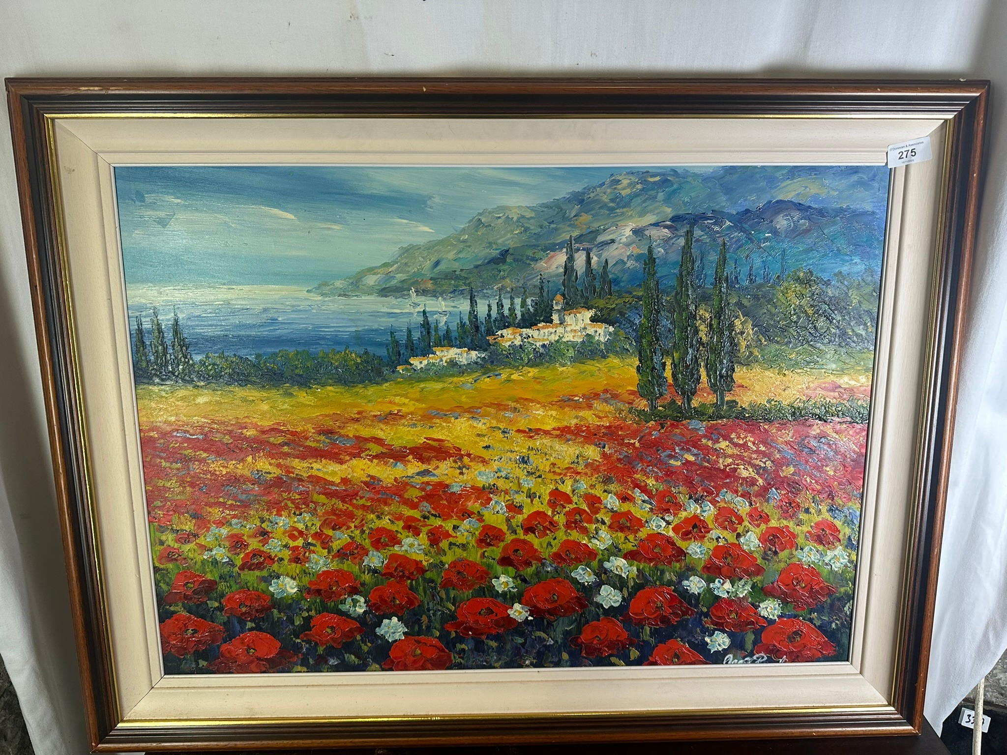 Oil on canvas, 'Poppy fields' signed lower right, 34'' x 24''