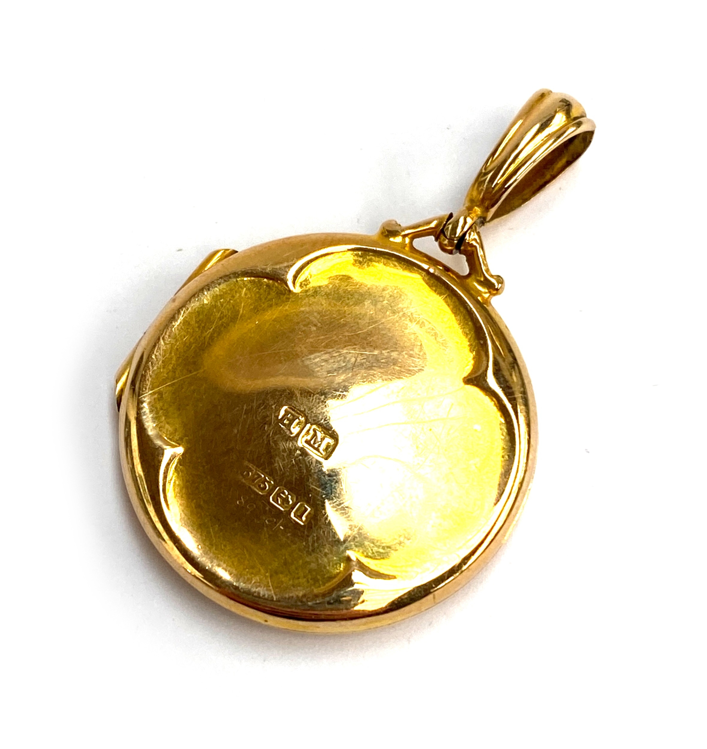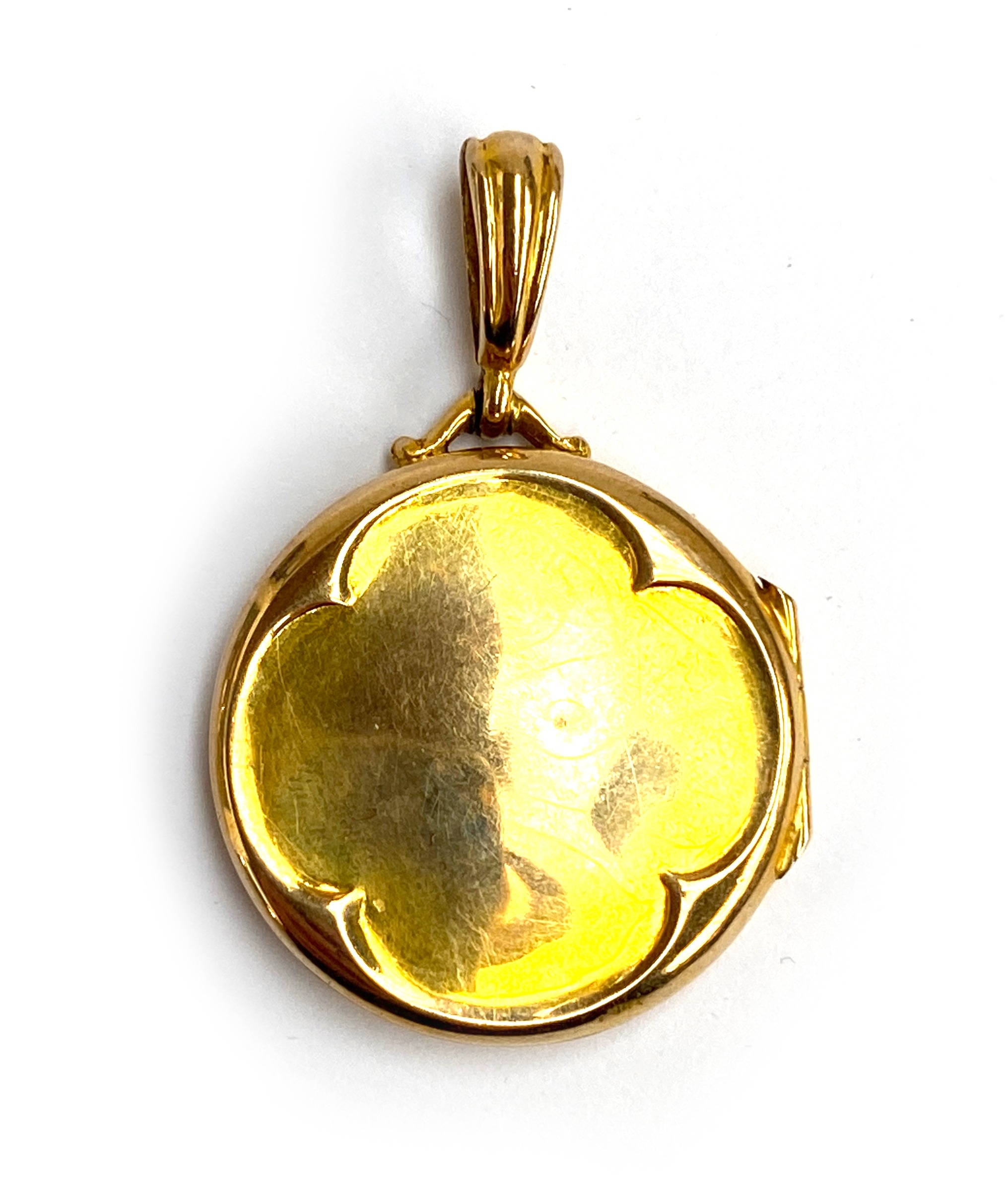 An Edwardian 9ct gold circular locket with quatrefoil design in relief, hallmarked for Birmingham 1910, 2.5cmD, 5.4g