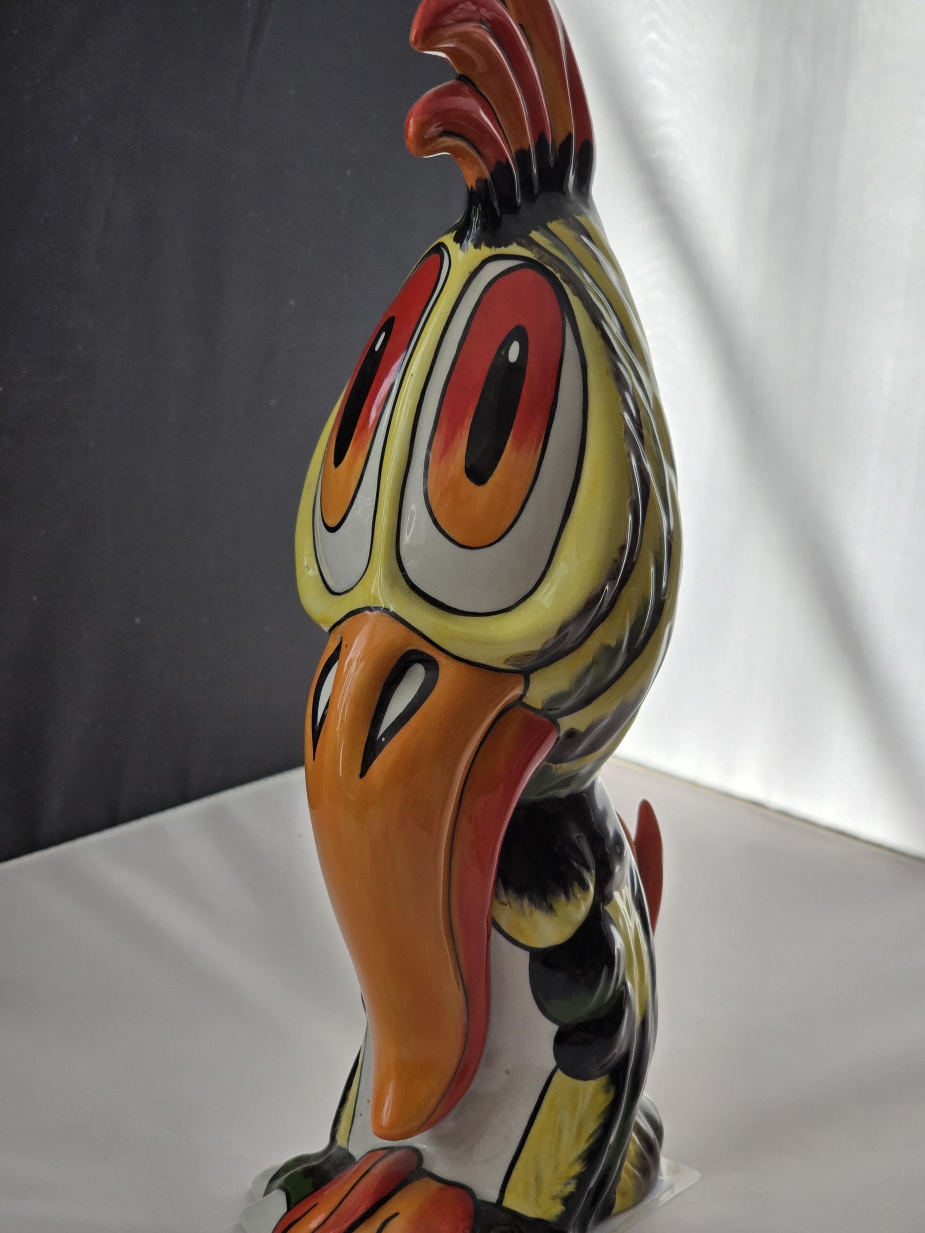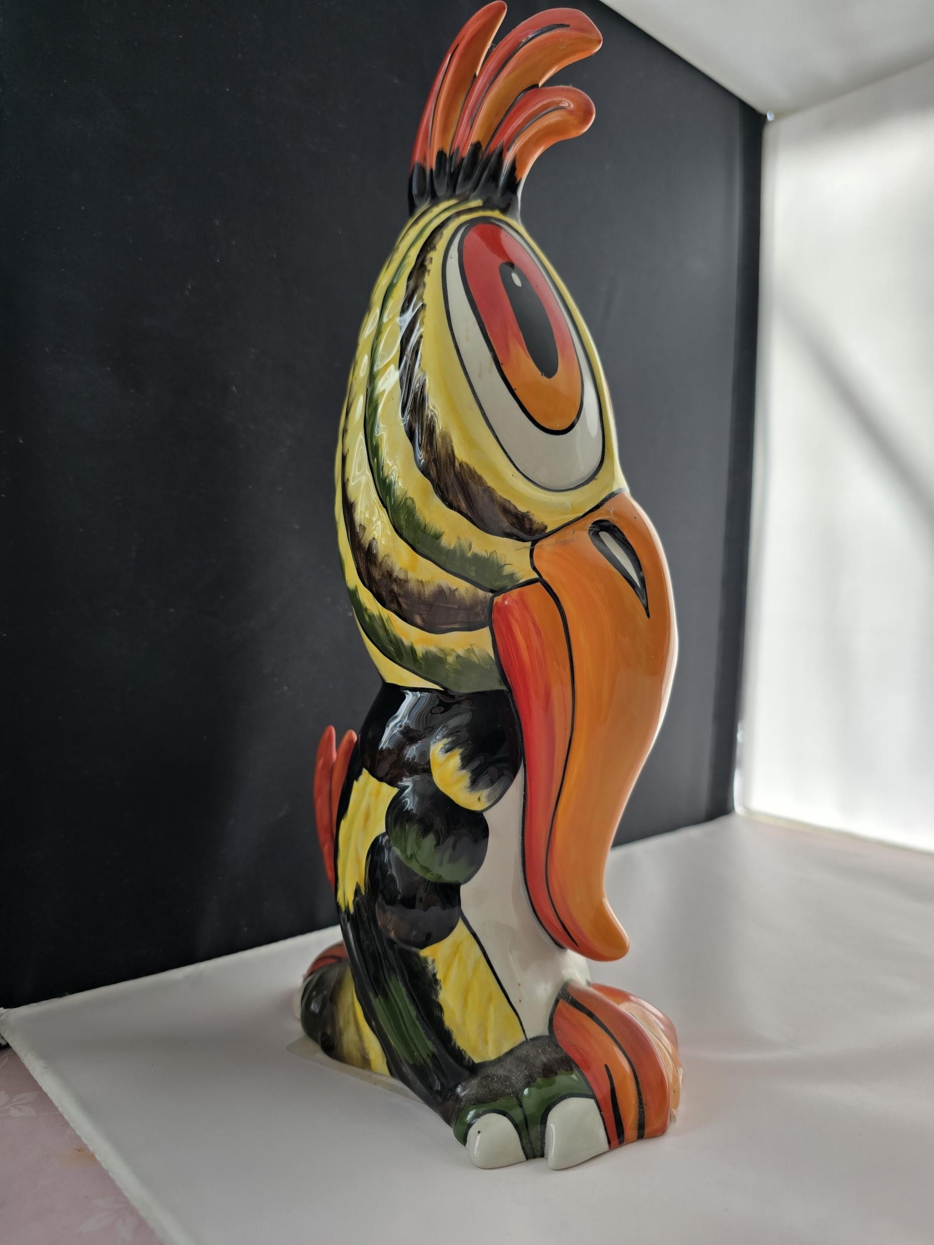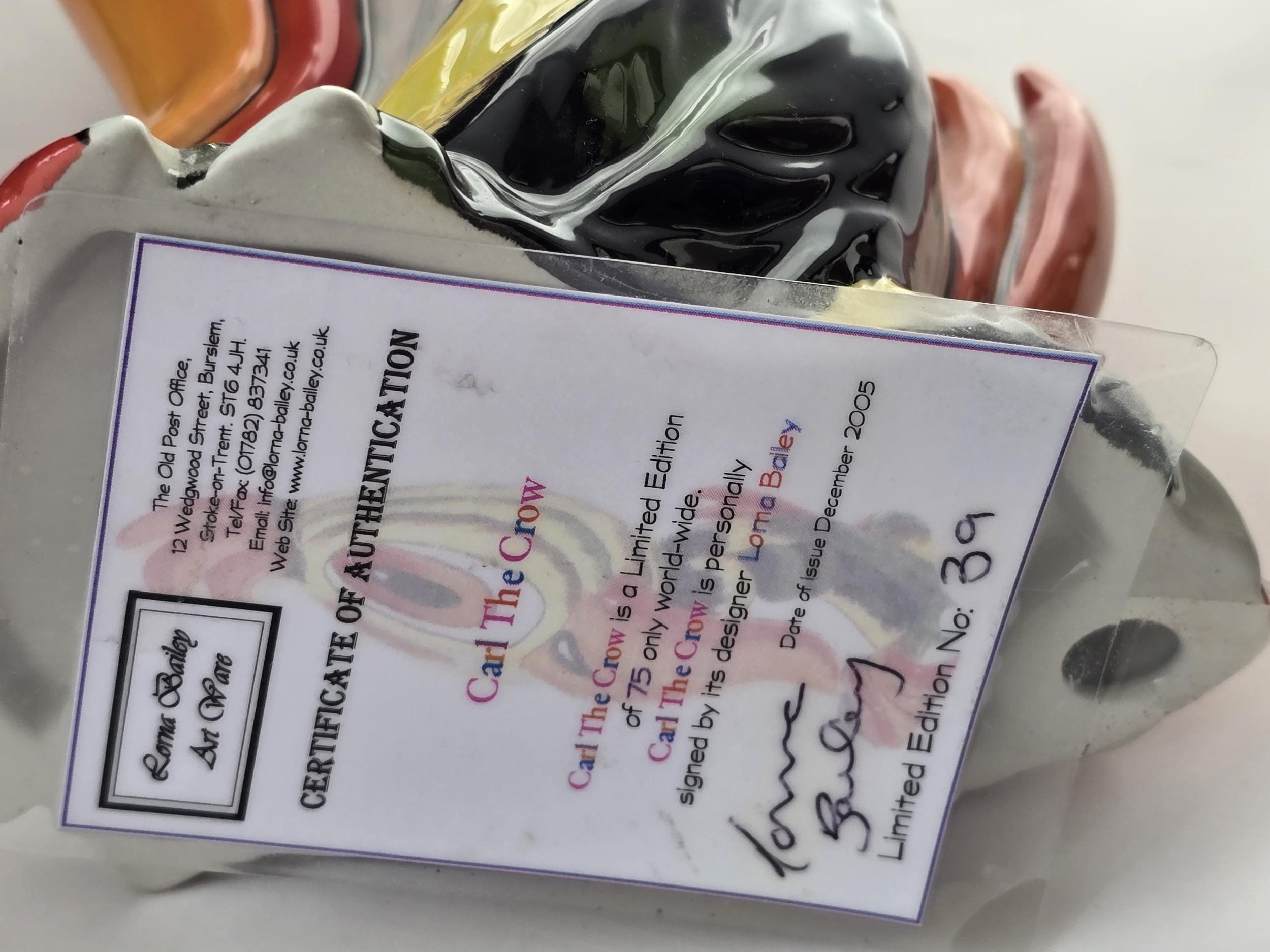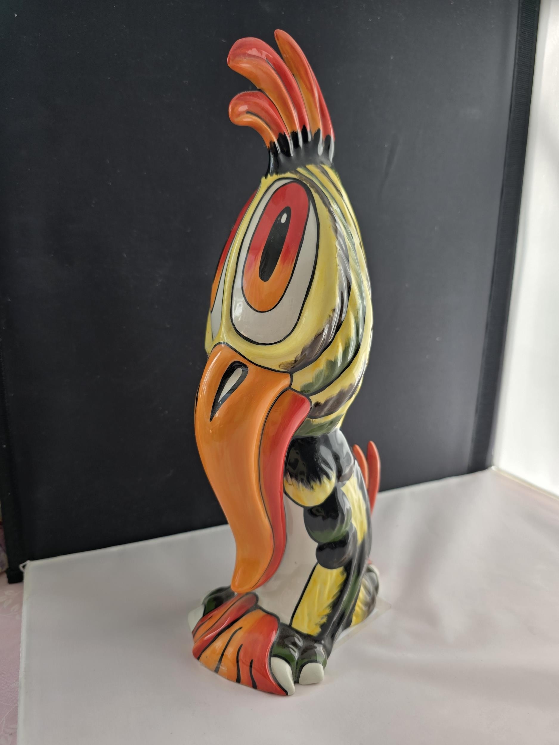 Lorna Bailey Pottery- Very Rare Extra-Large Carl the Crow. Grotesque Birds series. Attractive colourway, one of limited edition of 75, signed on base, complete with laminated certificate. Handmade and painted in Stoke-on-trent. Excellent condition. 32cms or over 12 inches high. Imposing.