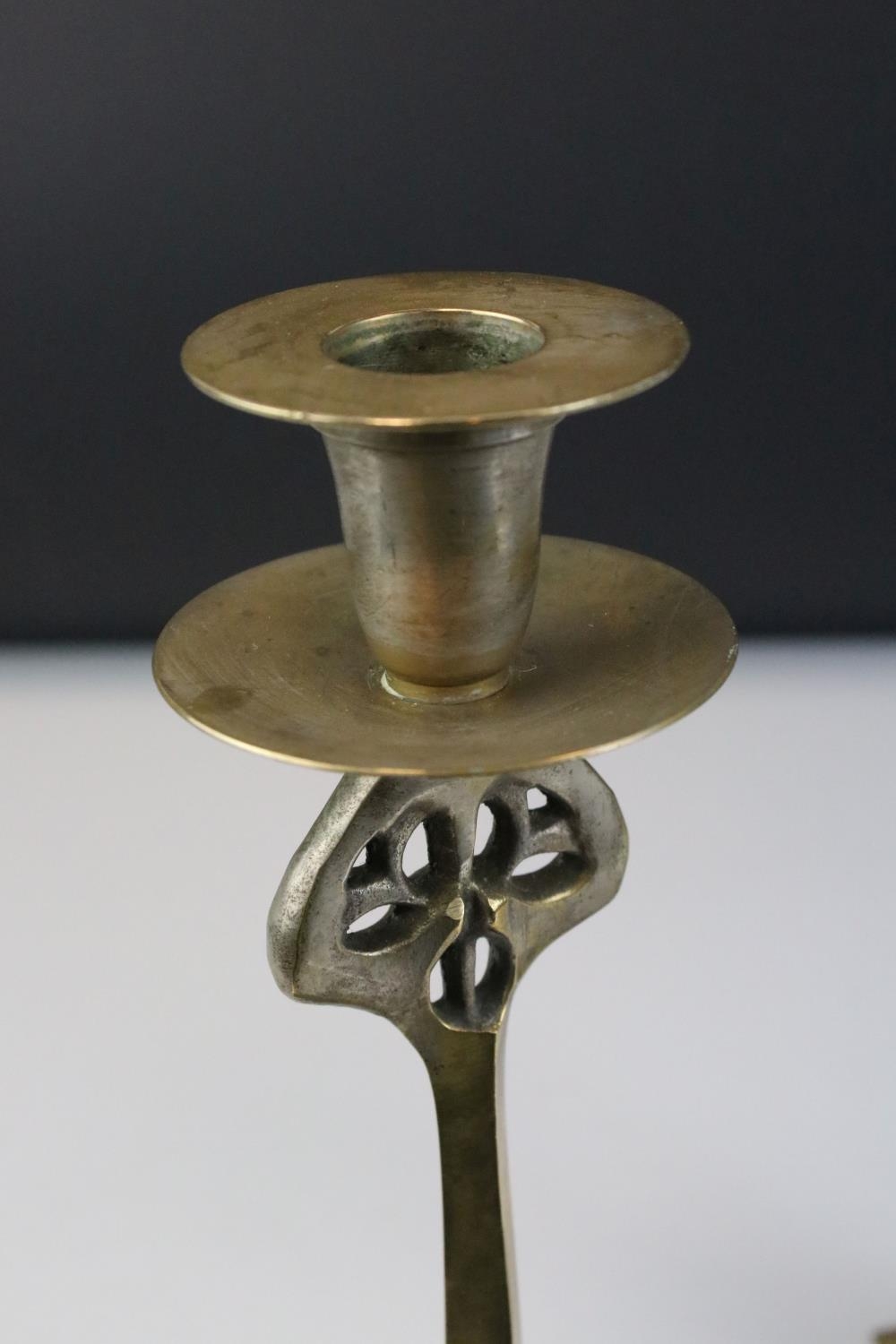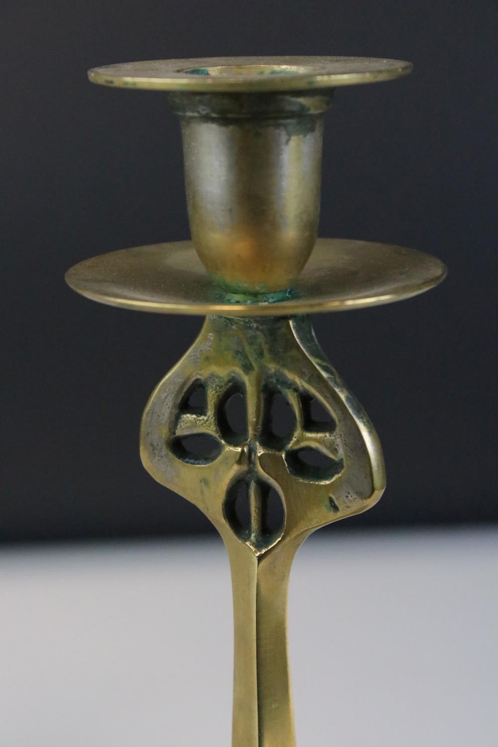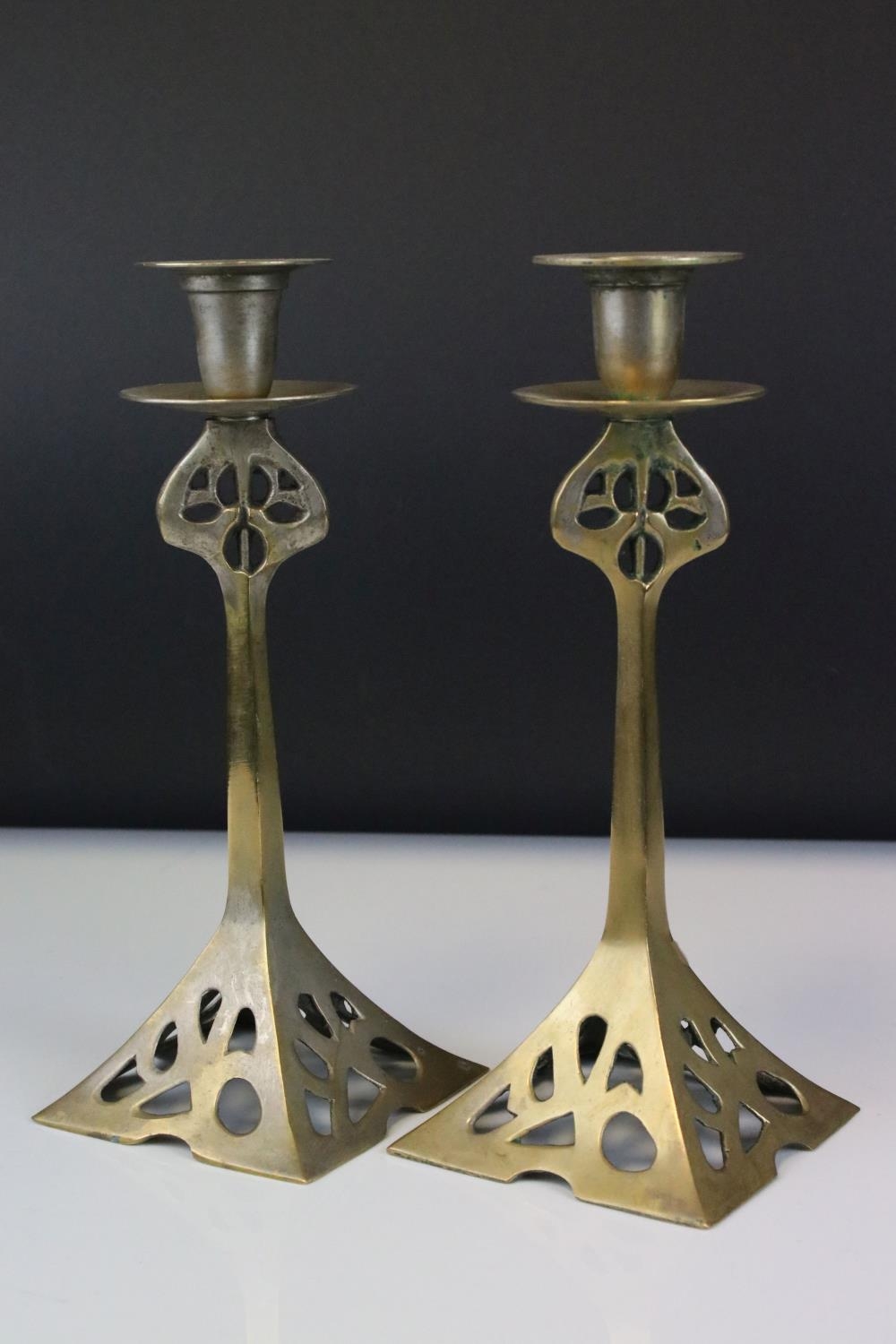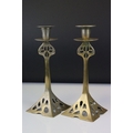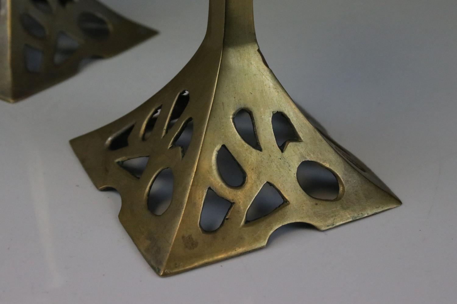 Pair of Art Nouveau Style Brass Candlesticks, 24cms high