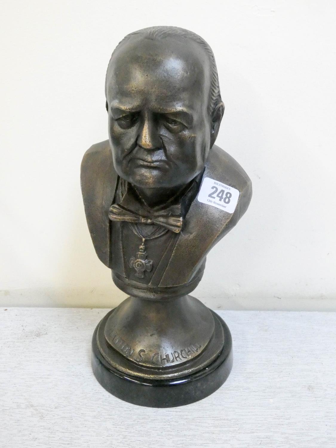 A bust of Winston Churchill