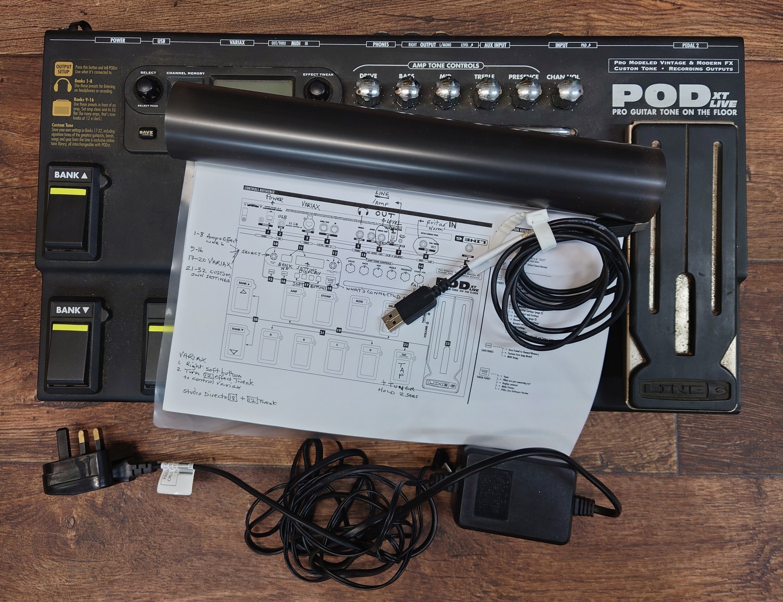 Line 6 POD XT Live guitar pedal, with PSU and manual