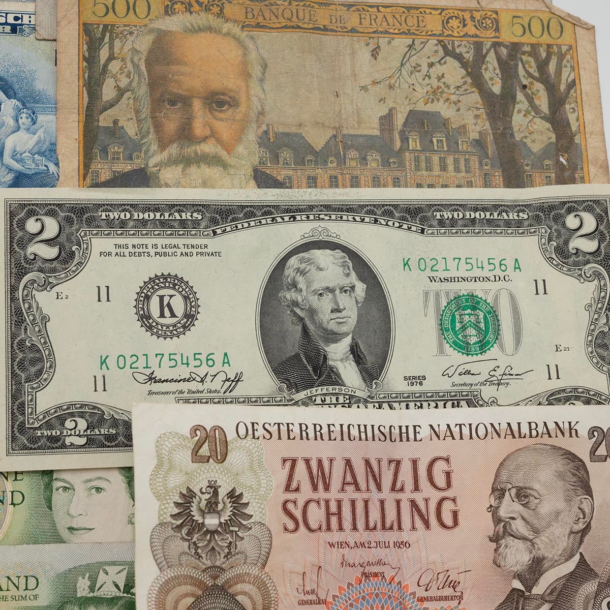 A collection of U.K. and world coins and banknotes, approximately 4kg.