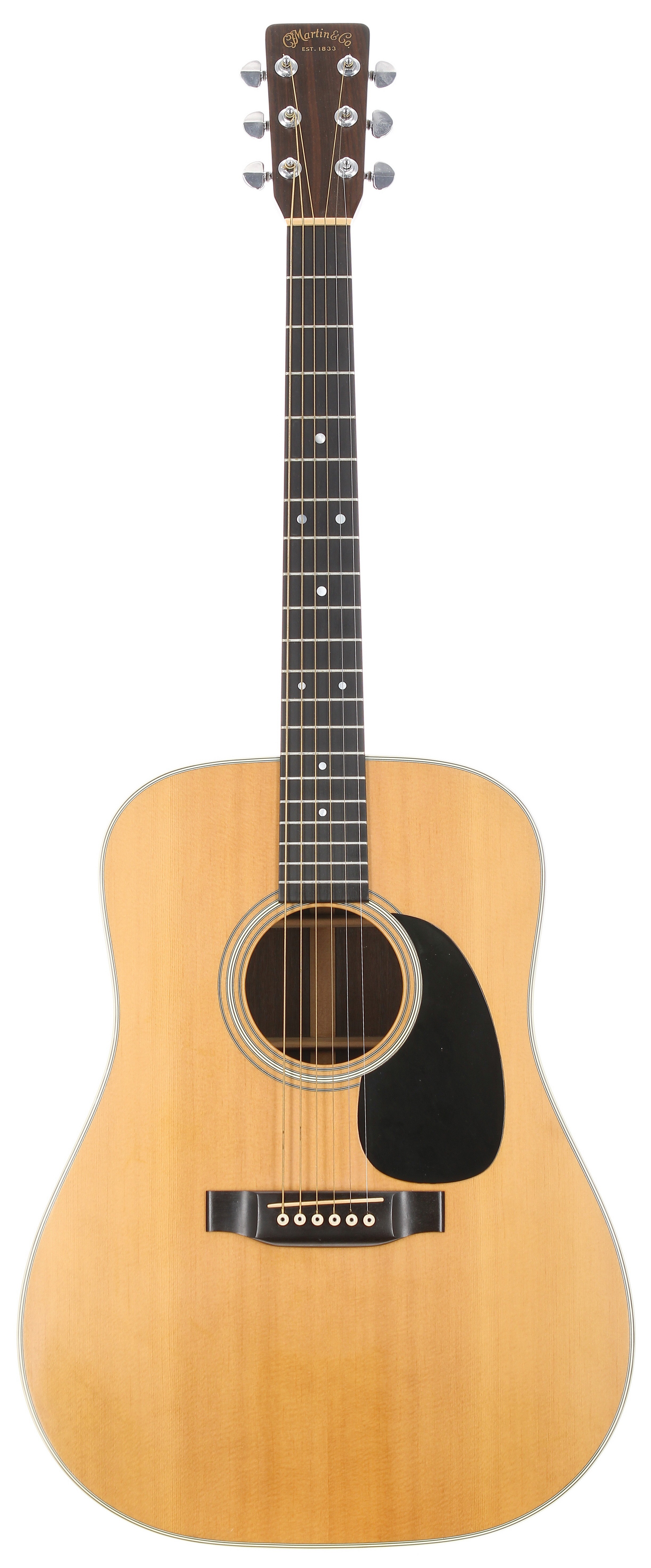 1979 C.F Martin D-28 acoustic guitar, made in USA; Back and sides: Indian rosewood, a few light marks; Top: natural spruce, a few light dings otherwise very good; Neck: mahogany; Fretboard: ebony; Frets: good; Hardware: good; Case: original hard case; Overall condition: very good