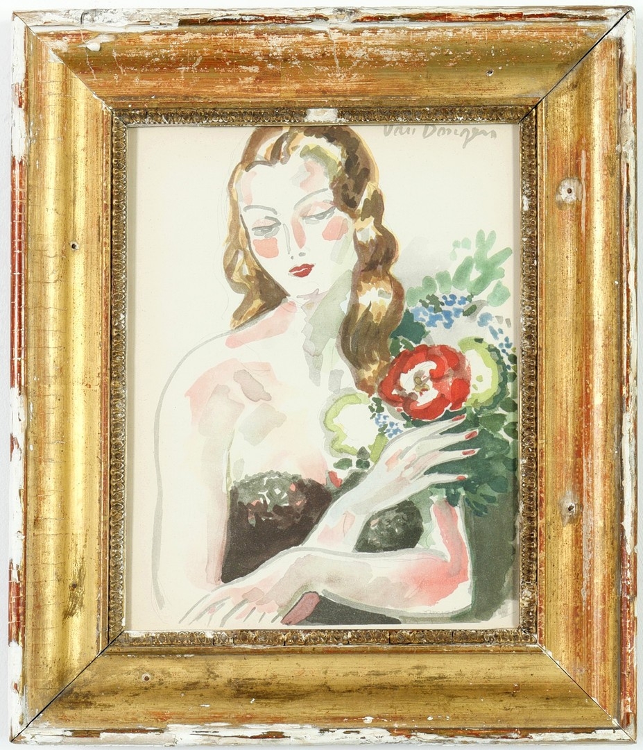 KEES VAN DONGEN. FILLE AVEC FLEURS. (d) off set lithograph, signed in the plate, edition:1992, published in Paris 1948, 30cm x 23cm. (Subject to ARR see Buyers Conditions).