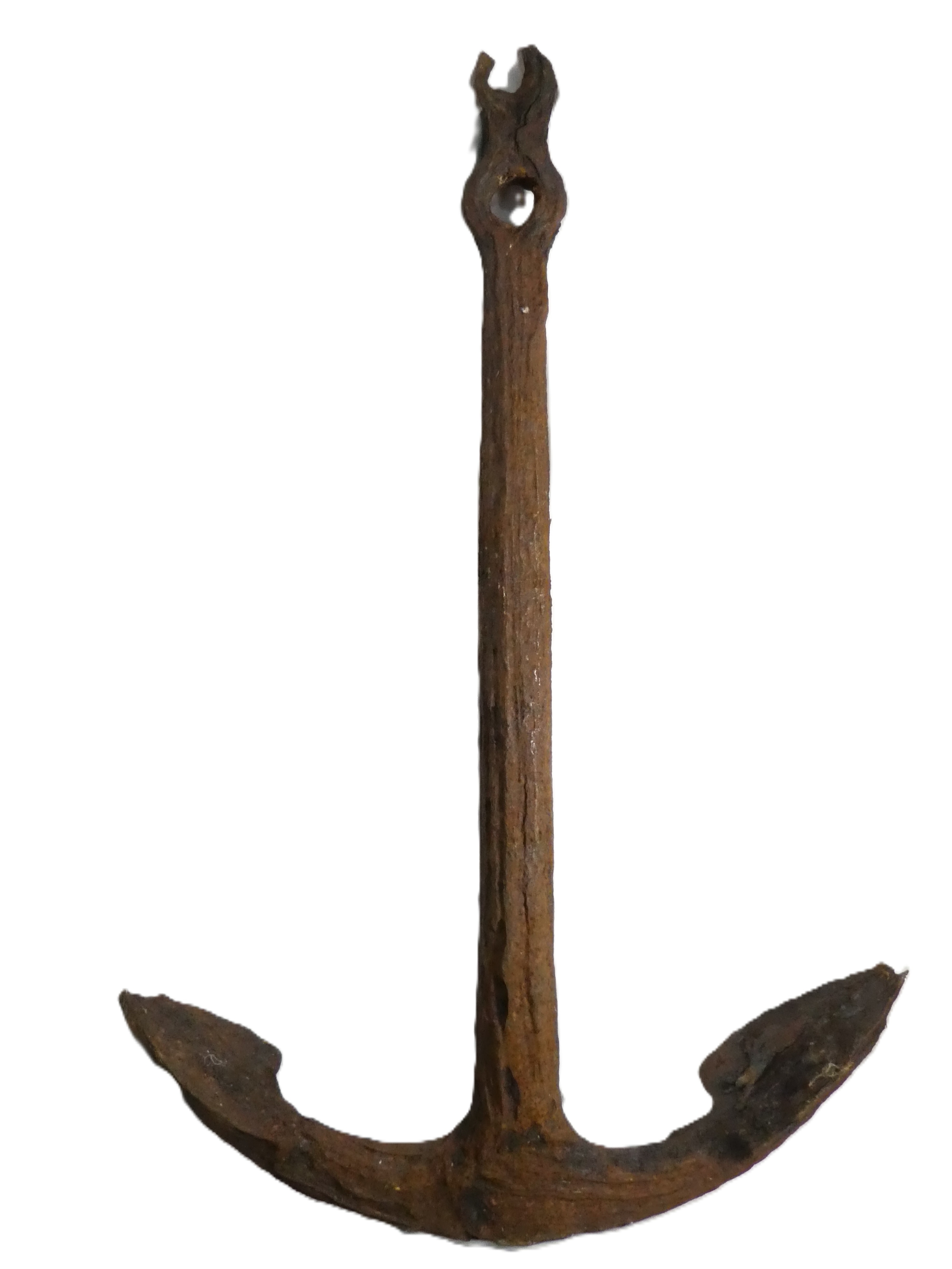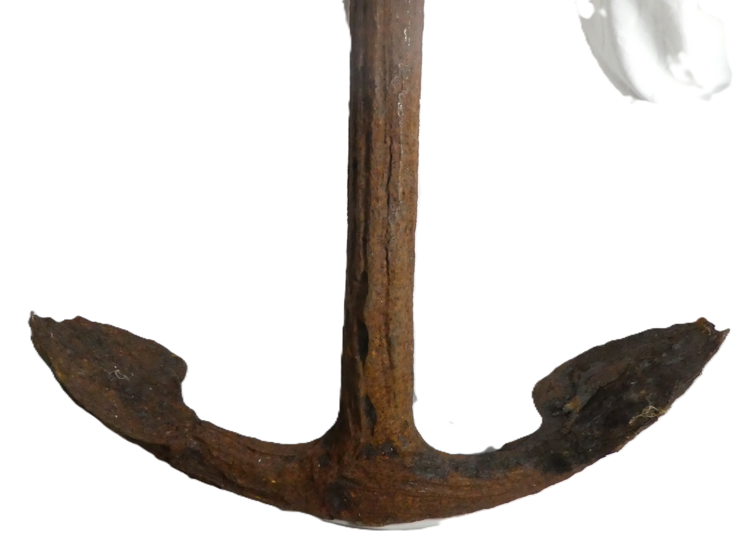 A large 19th/20th century steel anchor - admiralty type with spade shaped flukes, recovered from the seabed whilst trawling, 157cm high.