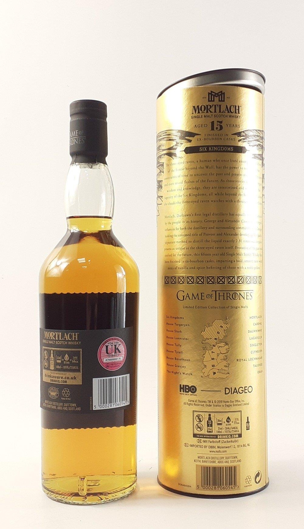 MORTLACH - Game of Thrones Limited Edition - Six Kingdoms - single malt Scotch whisky aged 15 years, 700ml bottle in a presentation tin, finished in ex-bourbon casks