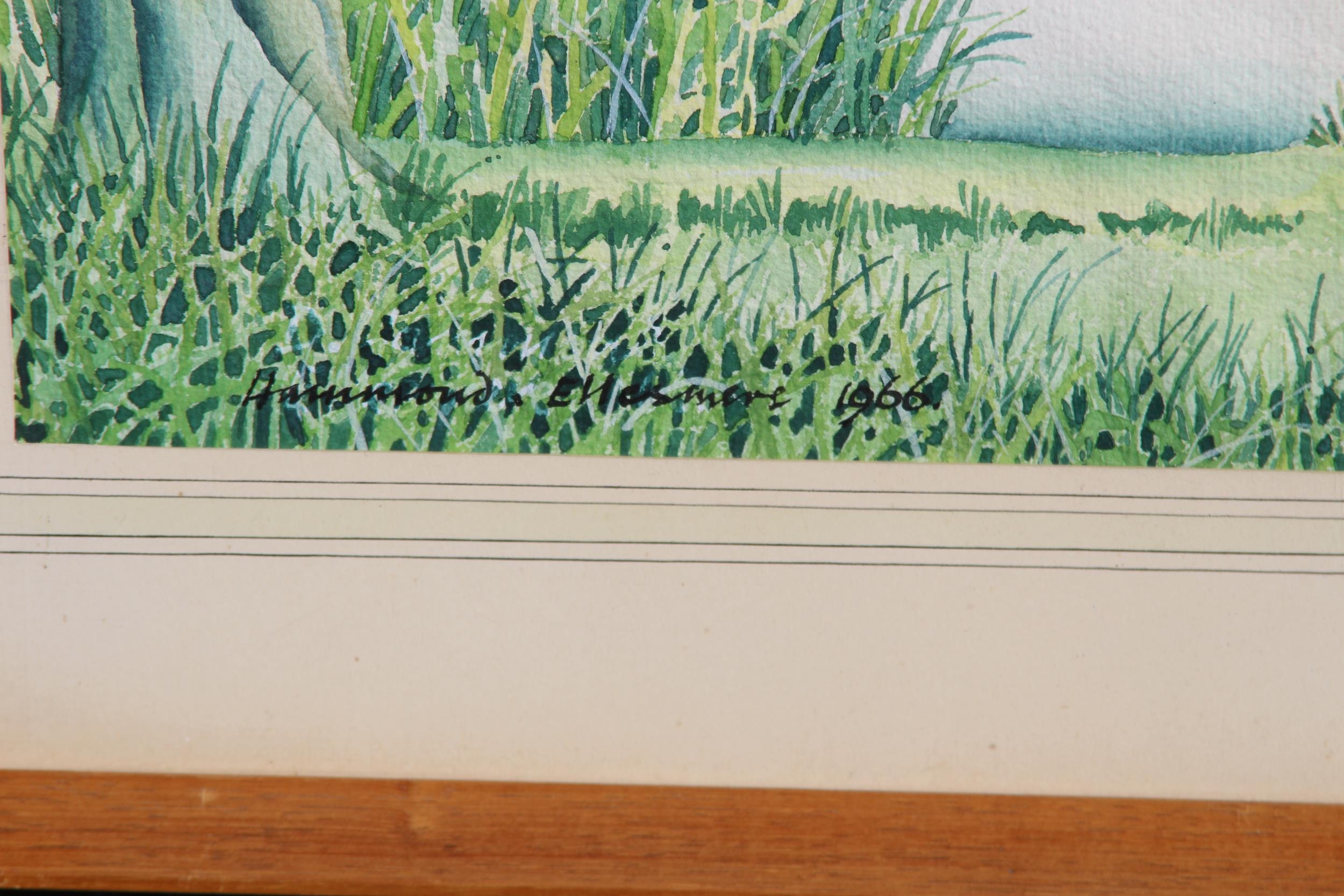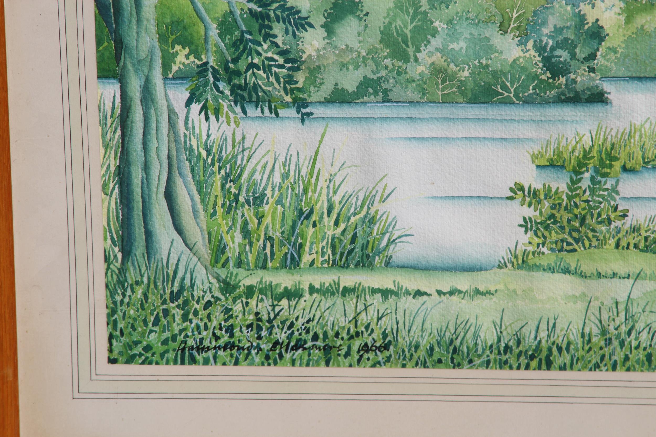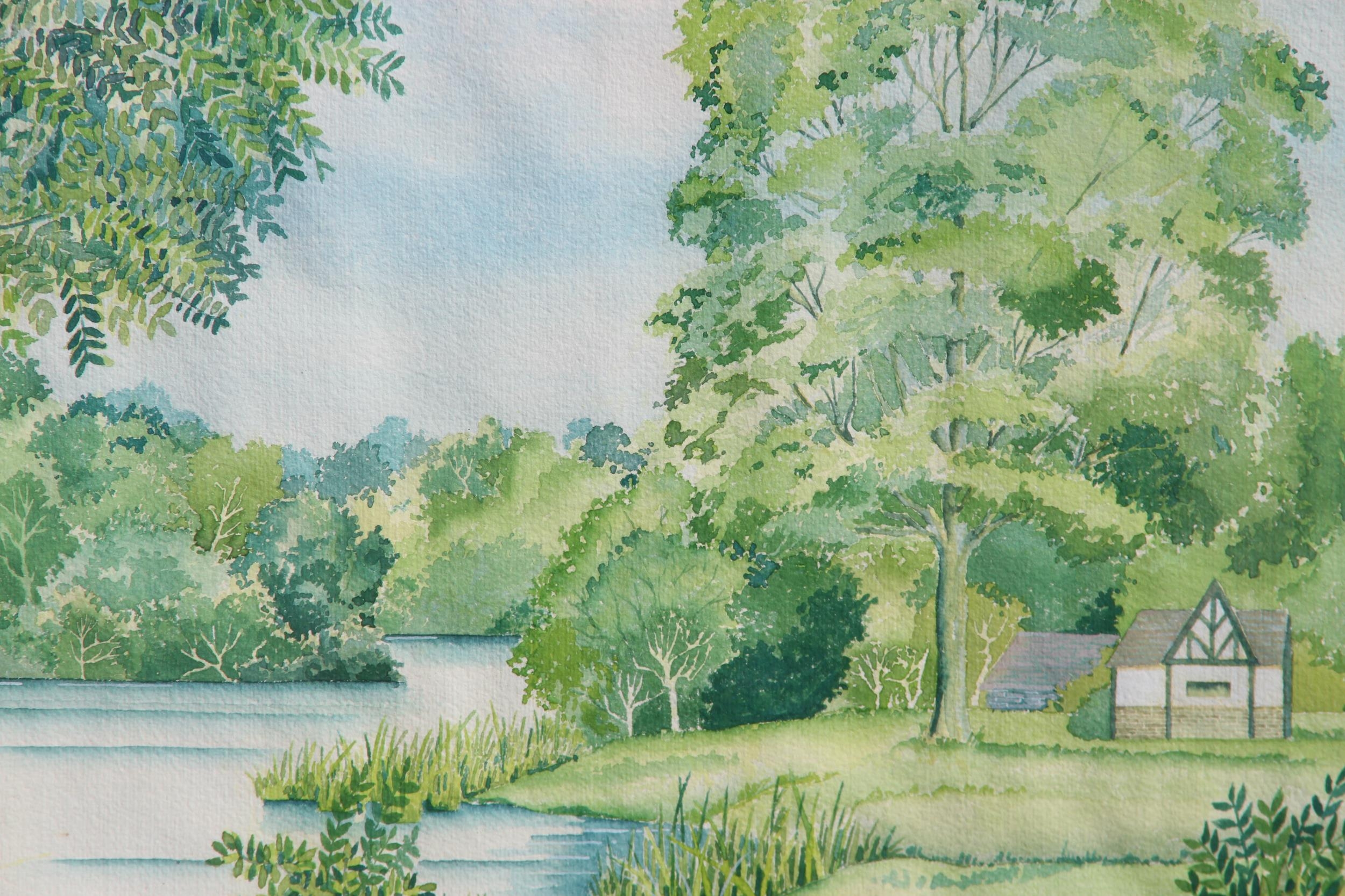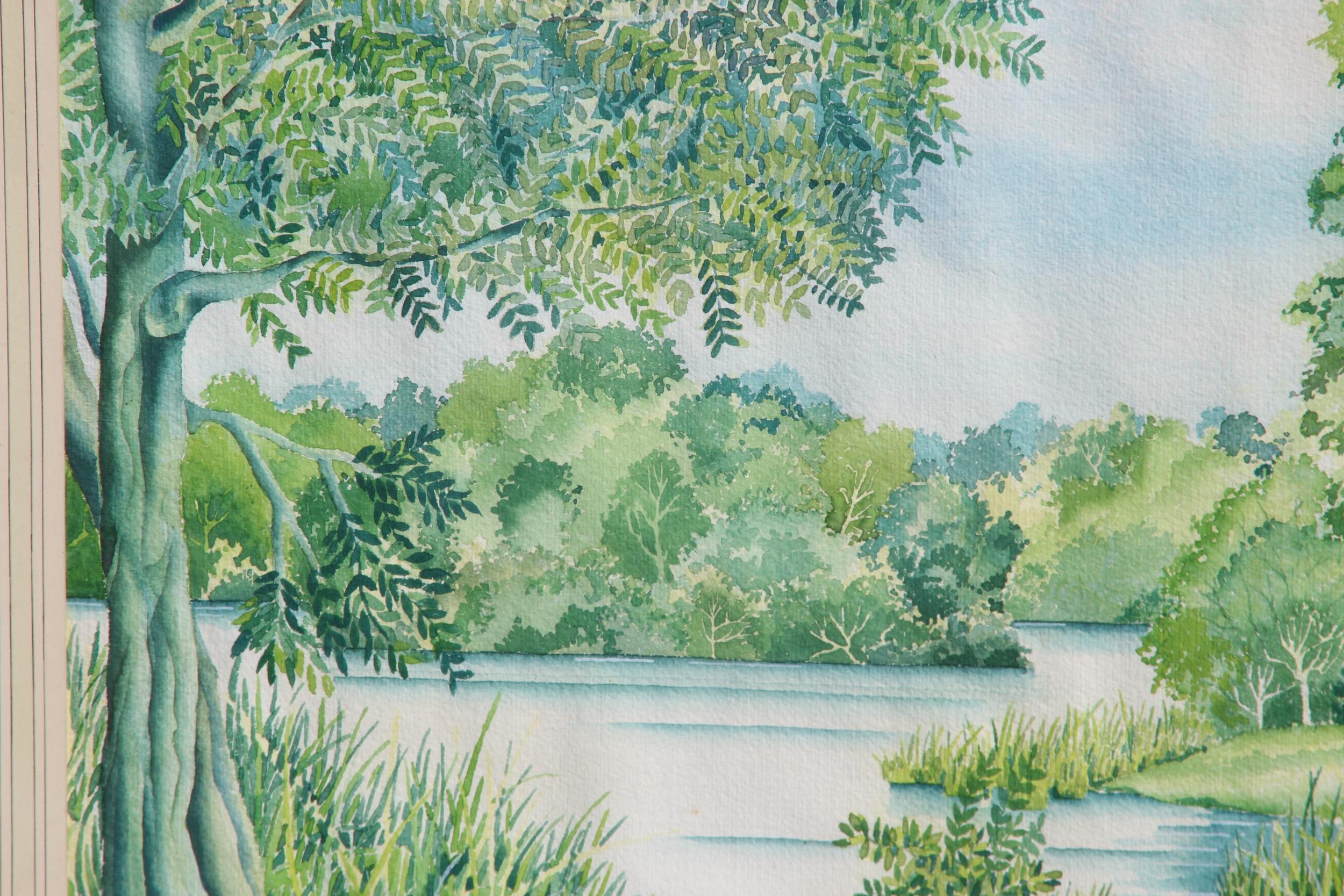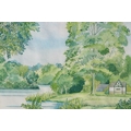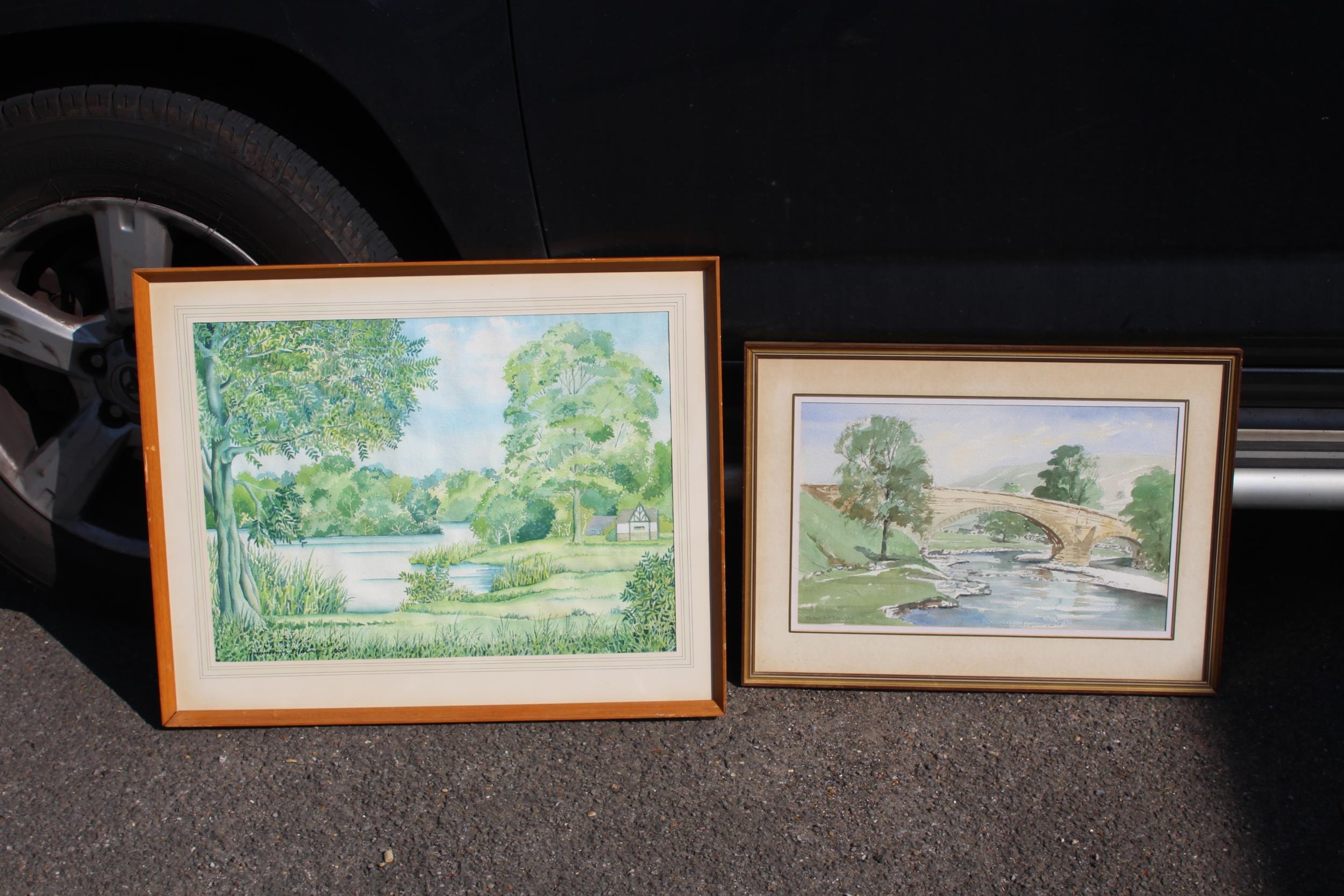 TWO WATERCOLOURS OF RIVERSIDE SCENES 66 X 53CM