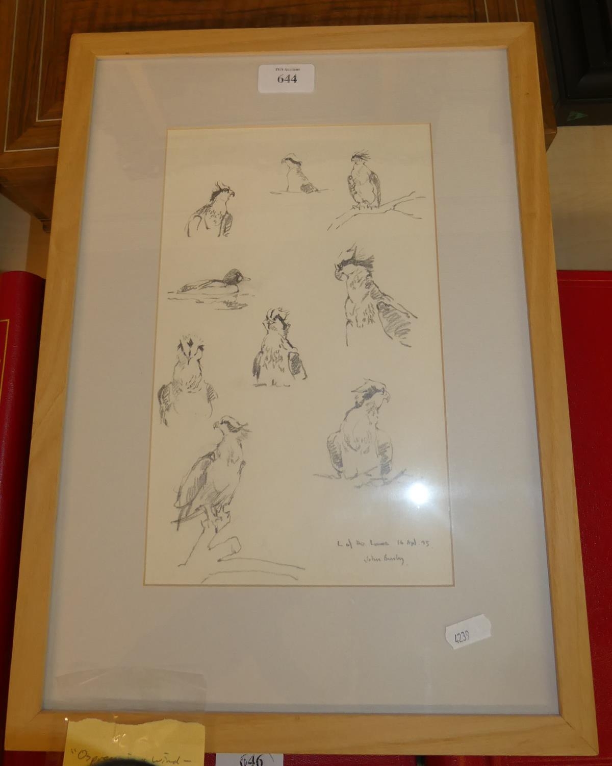 Framed Pencil Drawing Entitled Entitled "Ospreys in a Wind" by John Busby dated 1993, measuring 18 x 28cm.