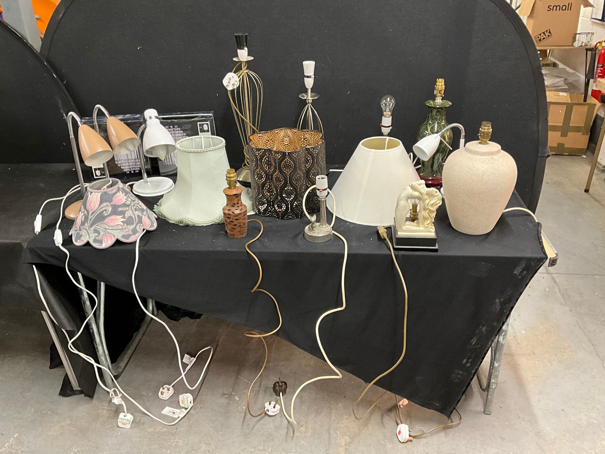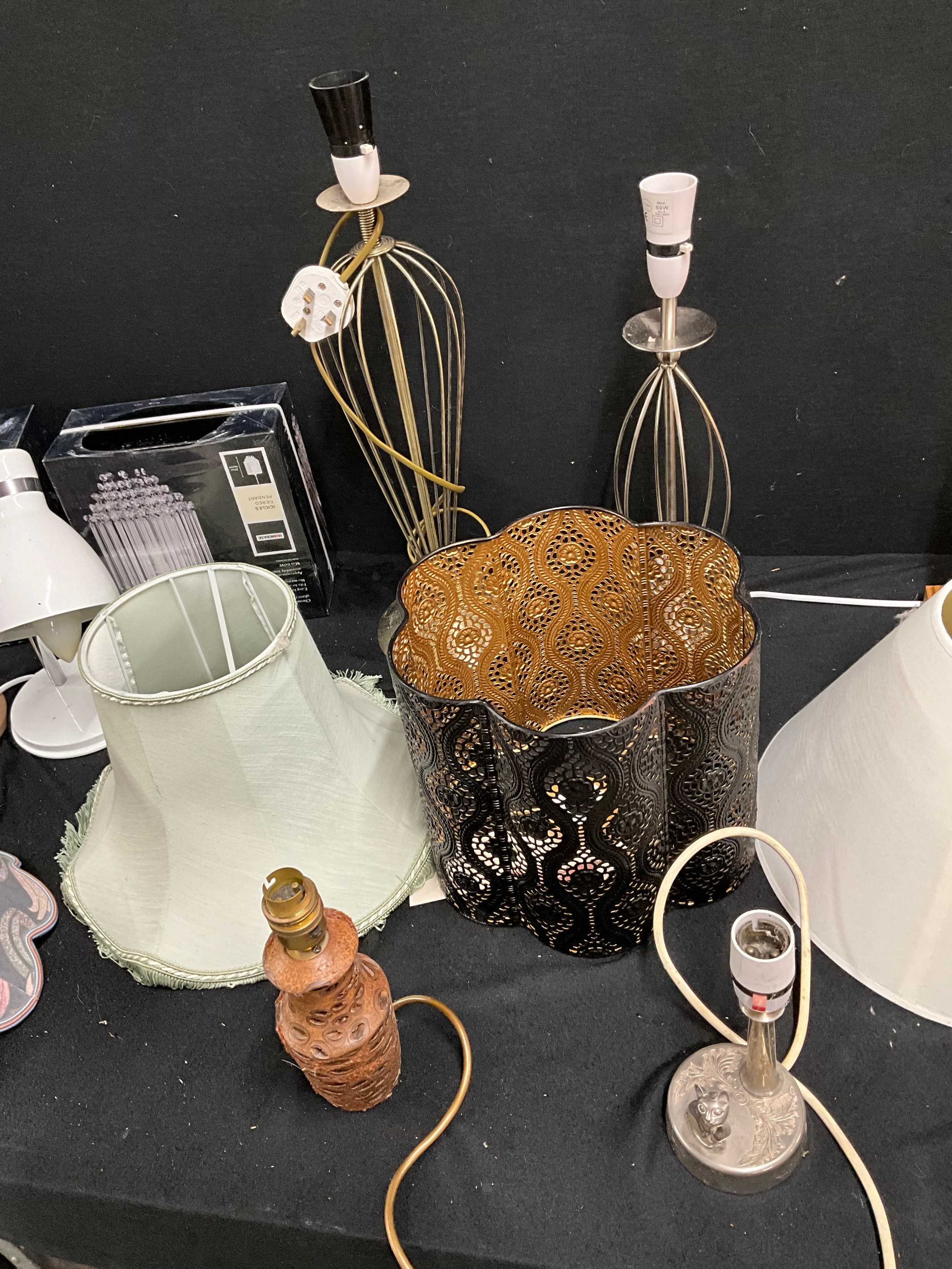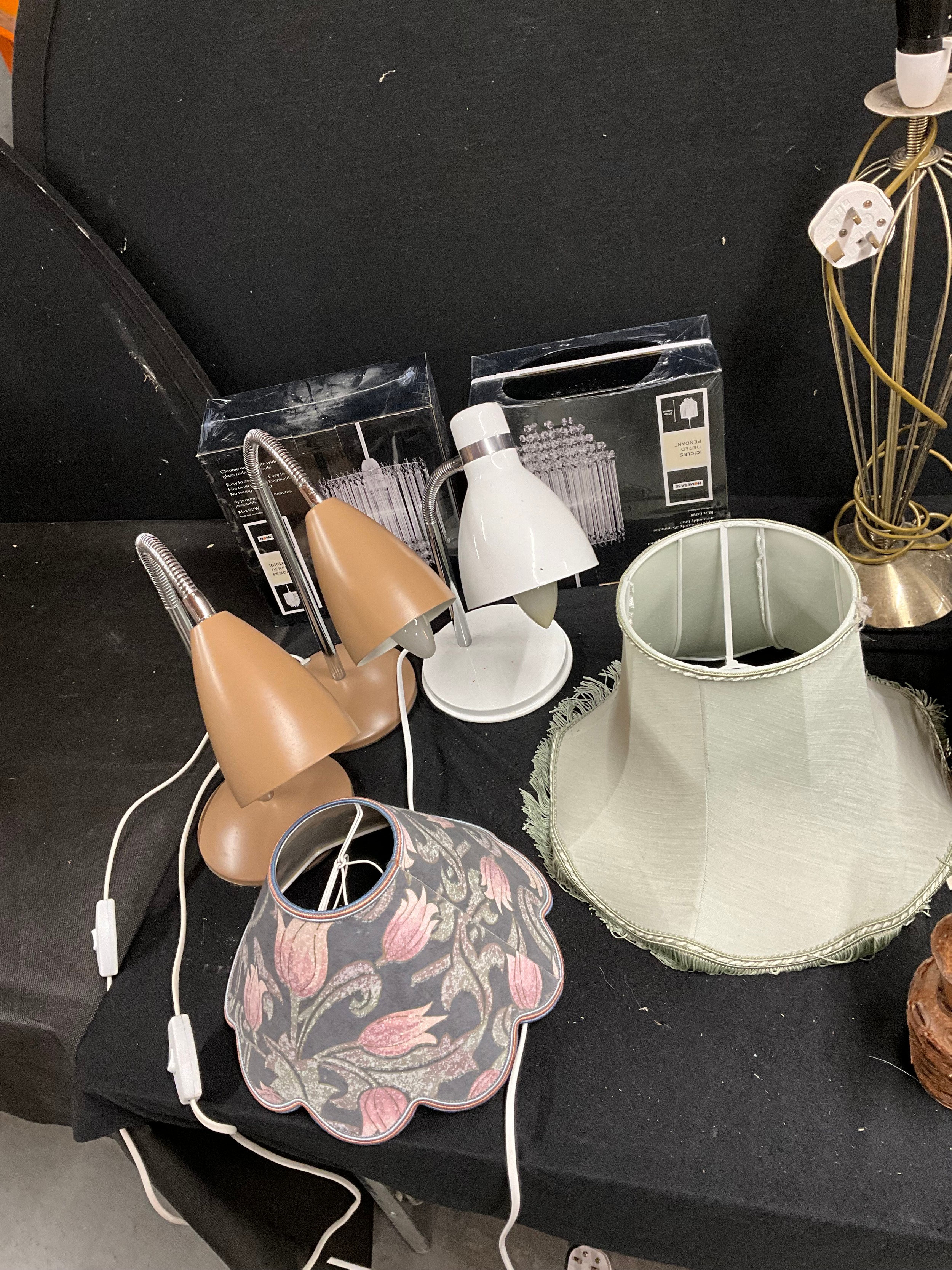 TWO BOXES OF TABLE LAMPS, SHADES AND CEILING LIGHTS