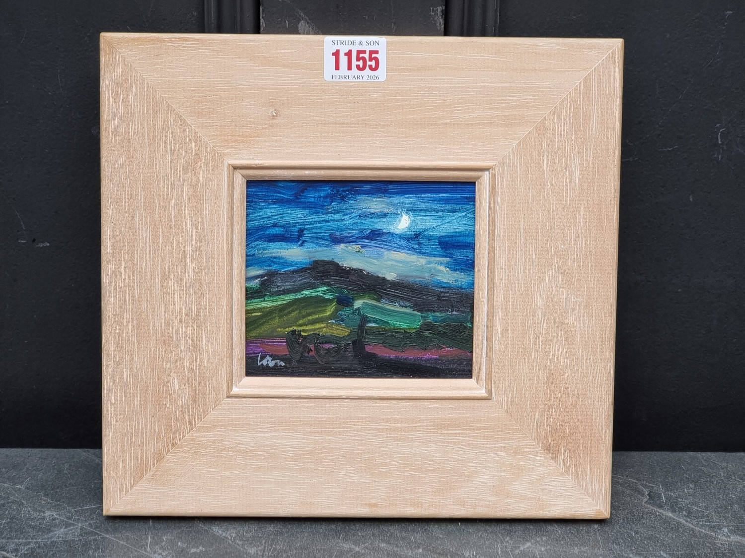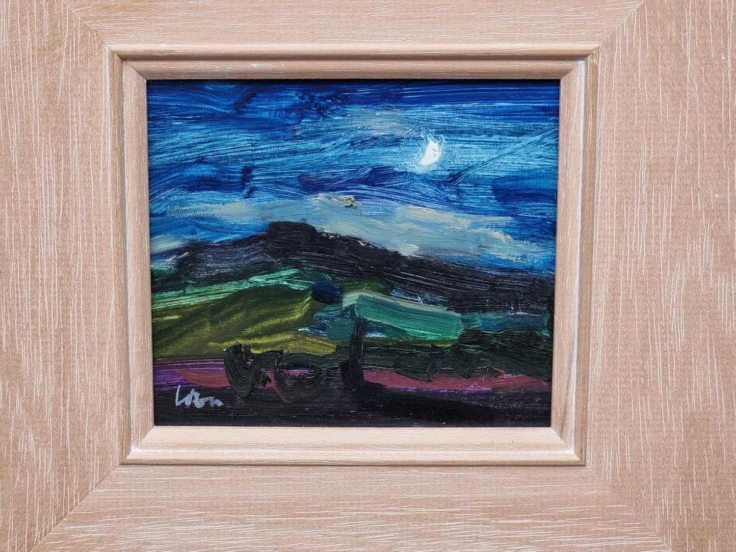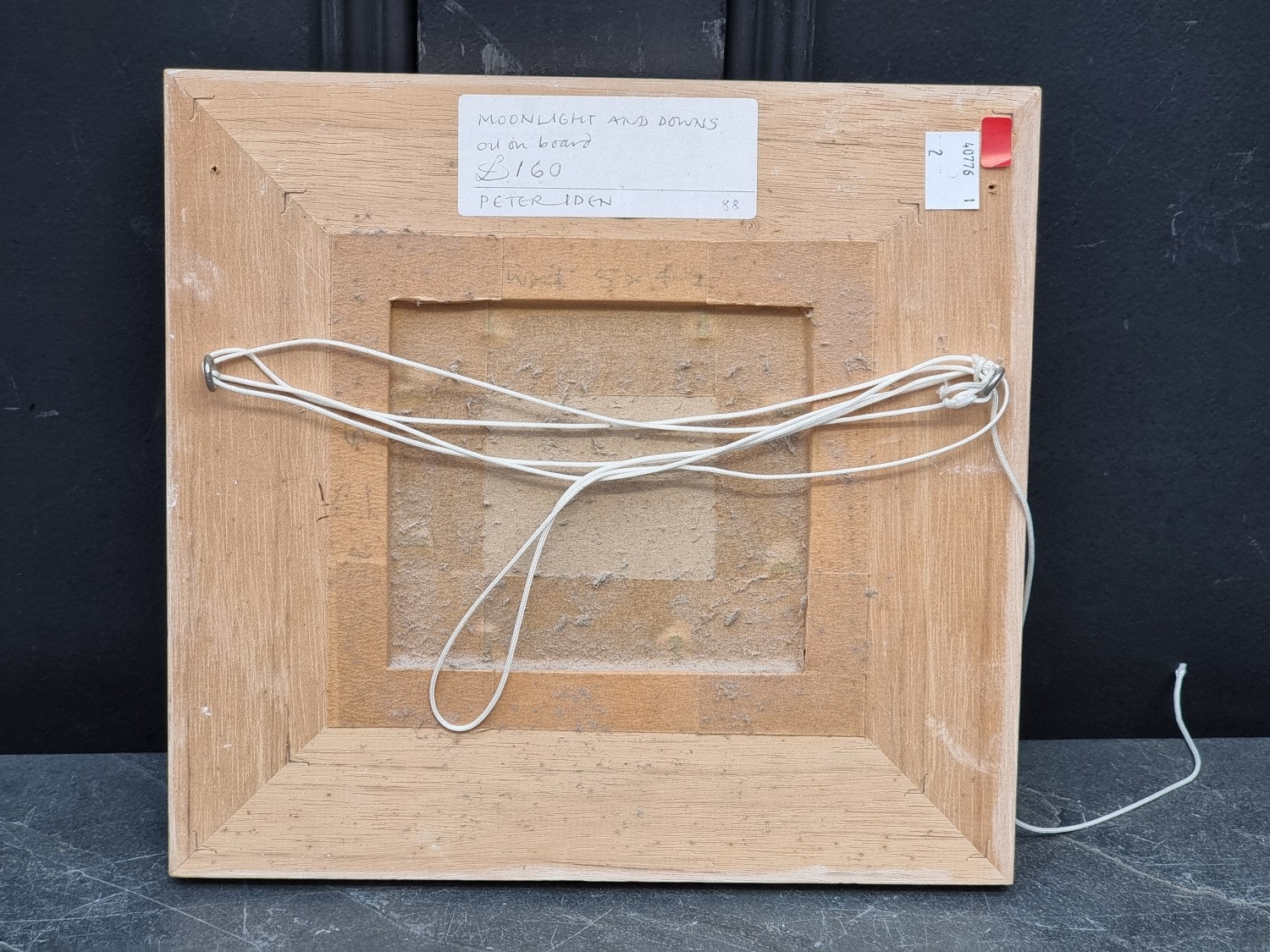 Peter Iden, 'Moonlight and Downs', signed, labelled verso, oil on board, 10 x 11.5cm.