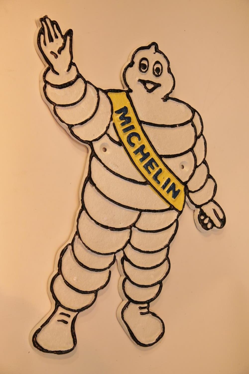 Cast iron Michelin Man wall figurine, H: 33 cm. P&P Group 2 (£18+VAT for the first lot and £2+VAT for subsequent lots)