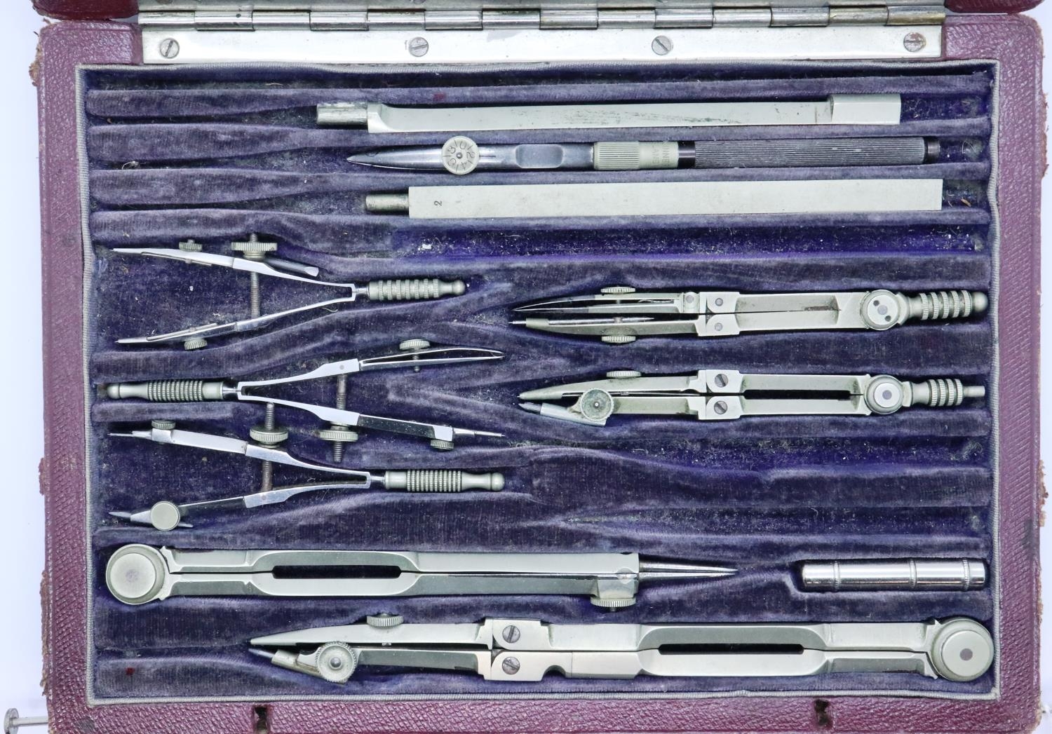 Cased white metal drawing set, mostly complete. P&P Group 2 (£18+VAT for the first lot and £3+VAT for subsequent lots)