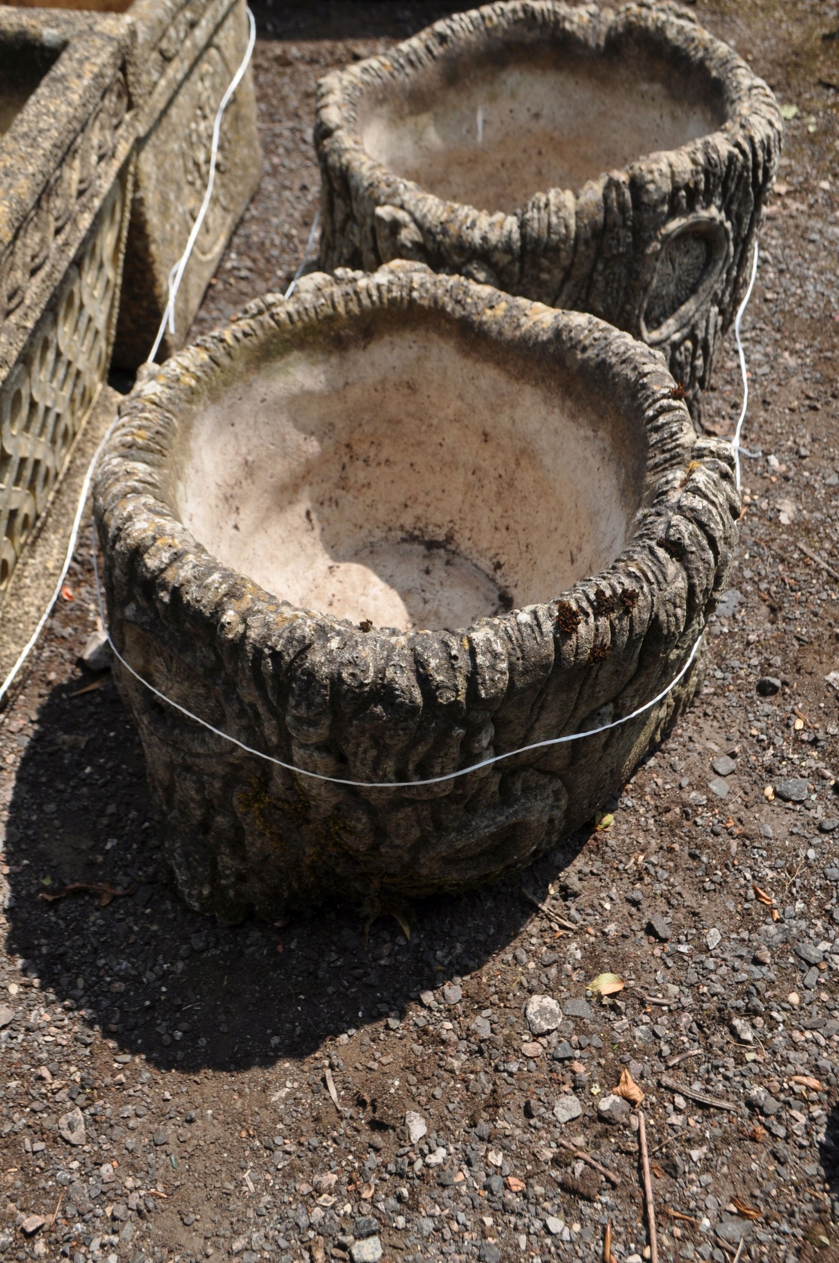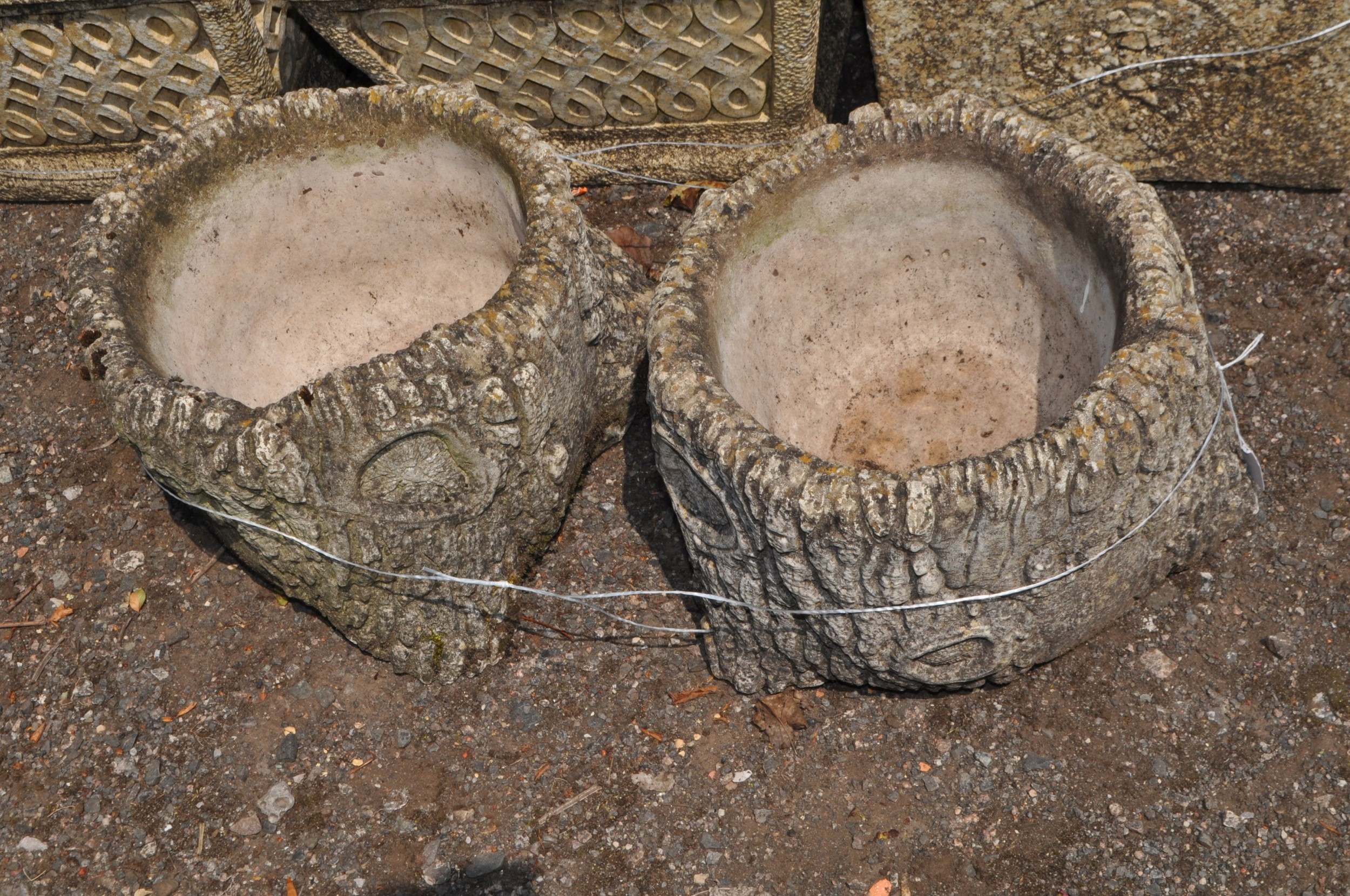 A PAIR OF CONCRETE PLANTERS, in the form of hollowed out tree stumps, heights 25cm. Condition Report: no obvious damage (2)