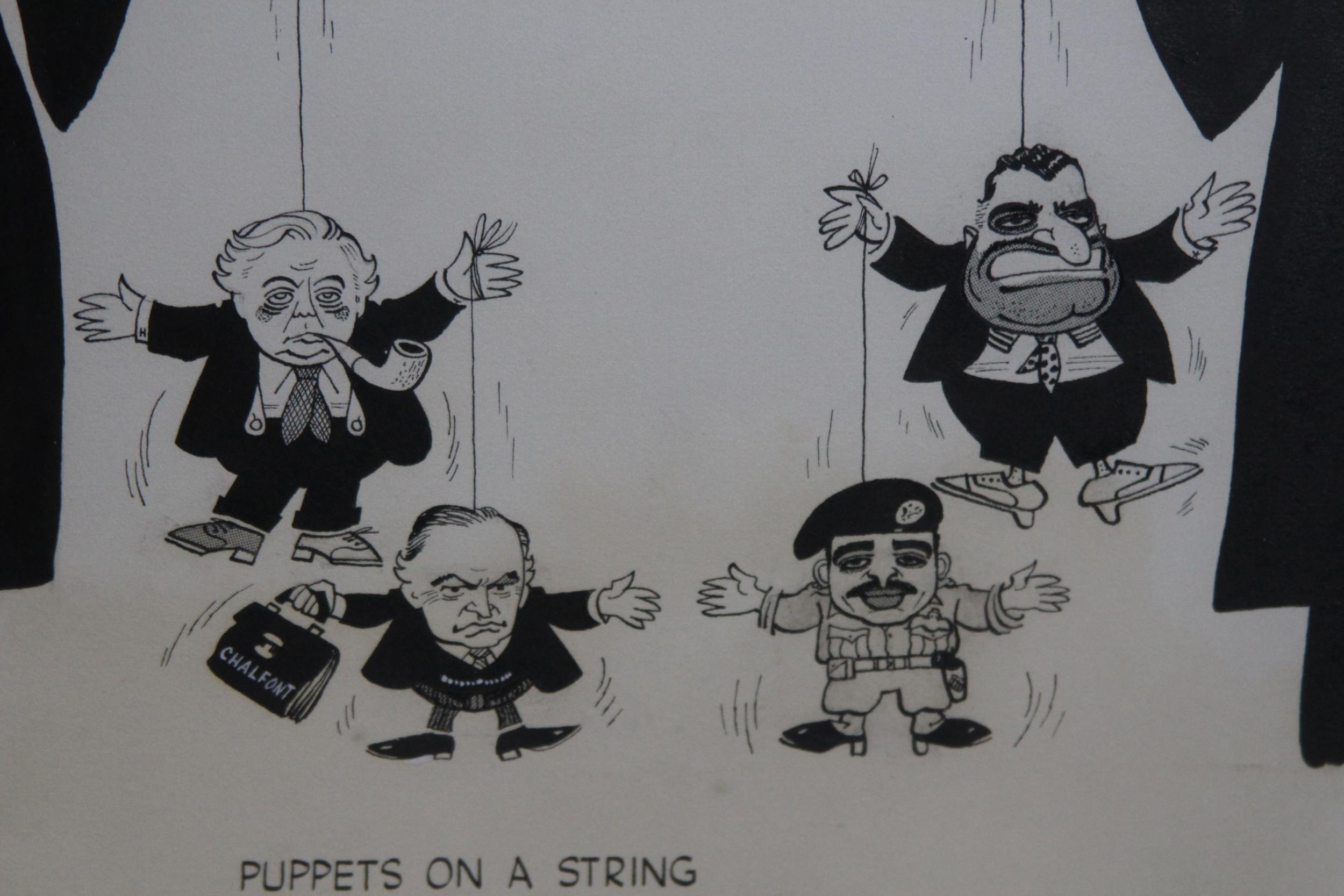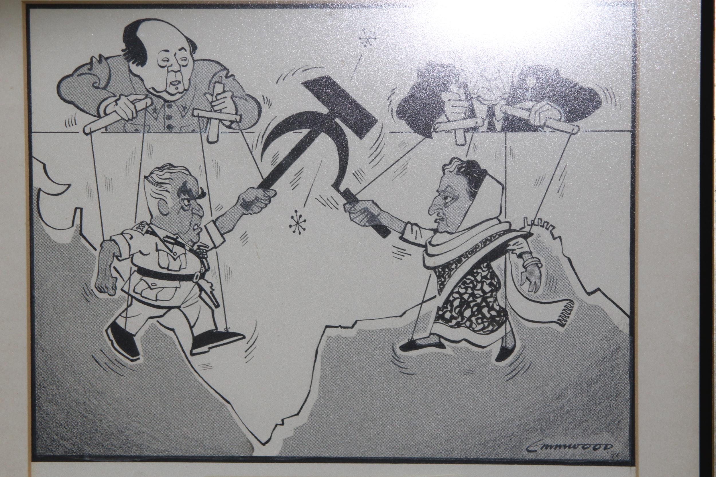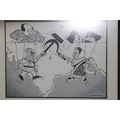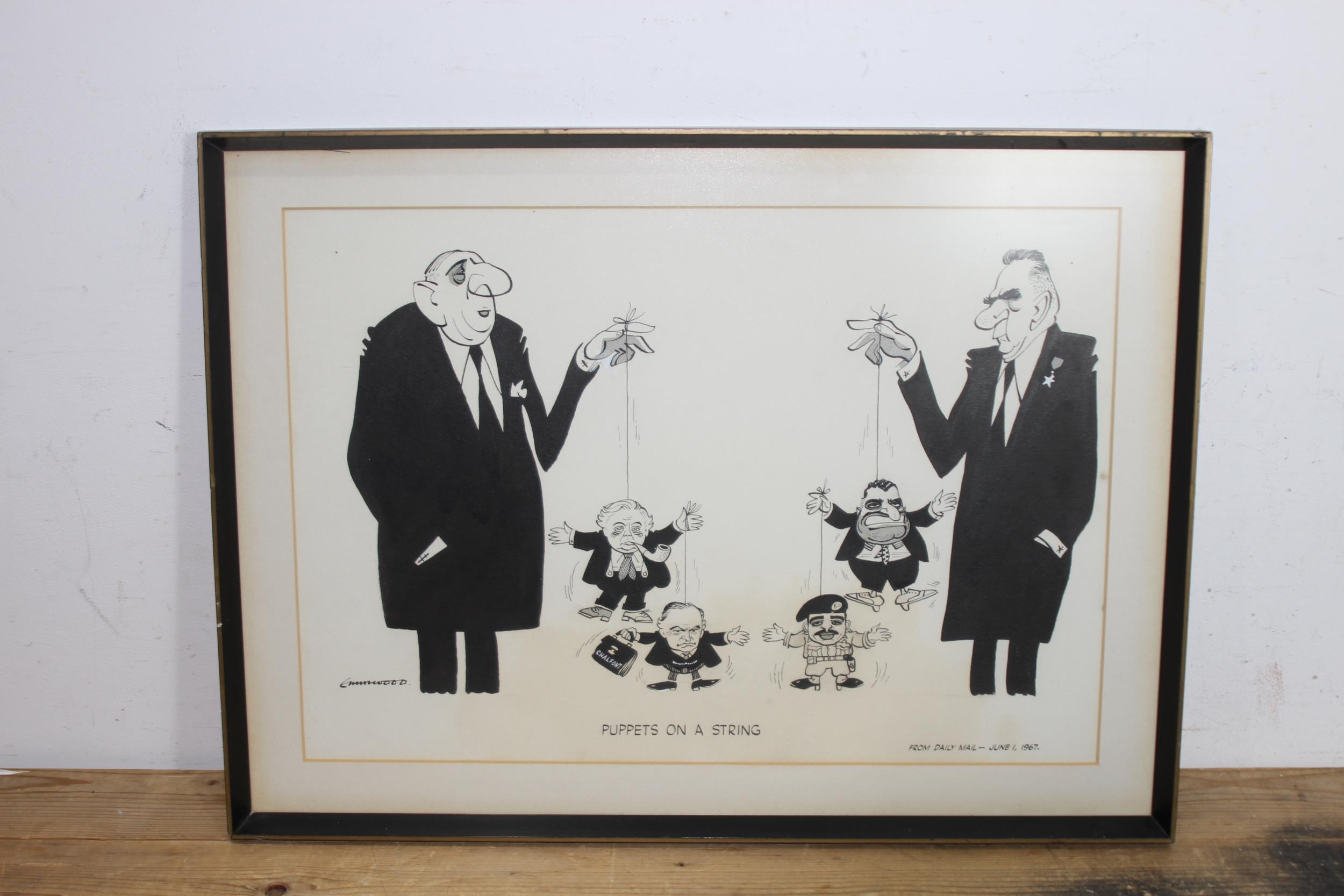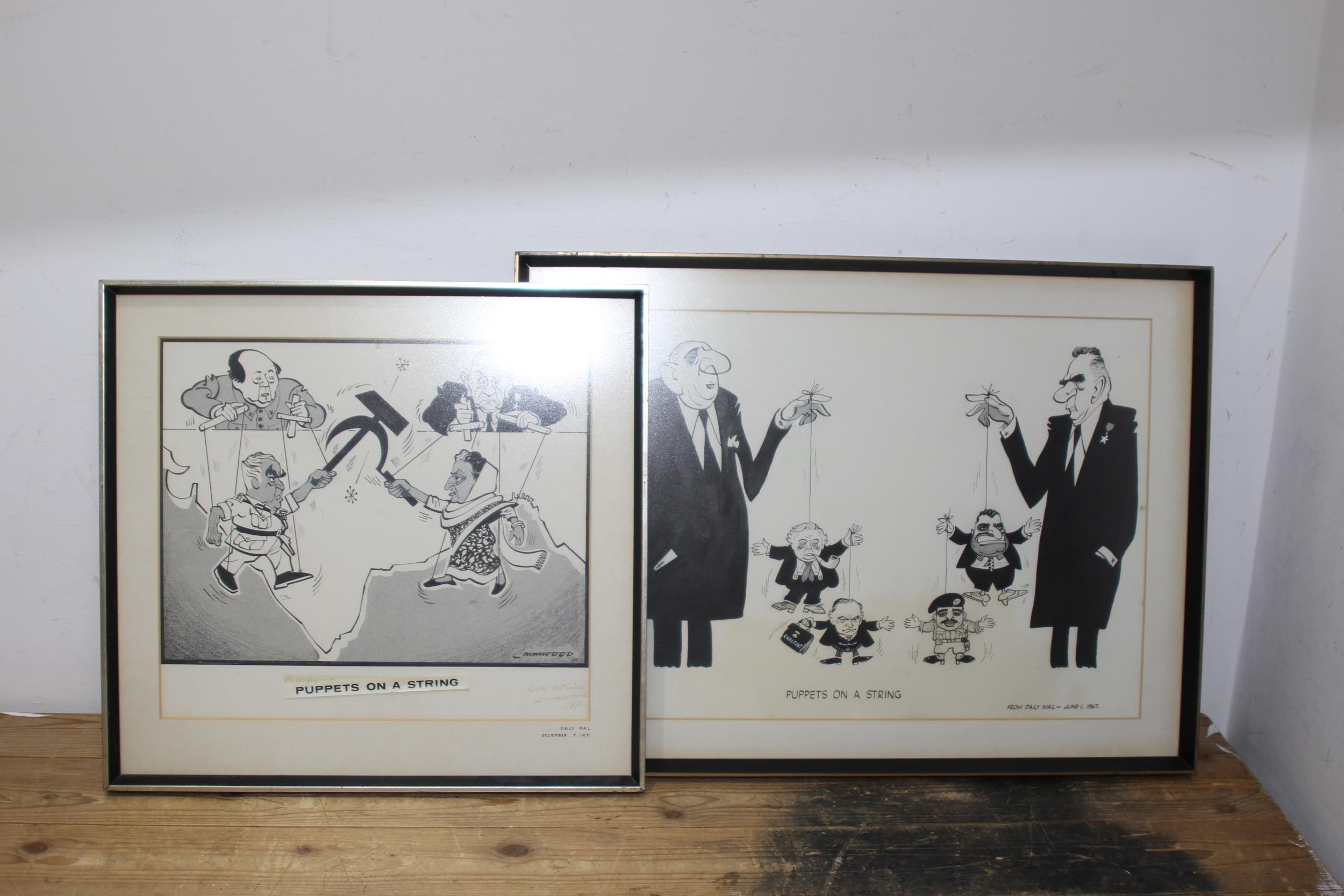 2 X POLITICAL RELATED NEWSPAPER CARTOONS 59 X 49CM