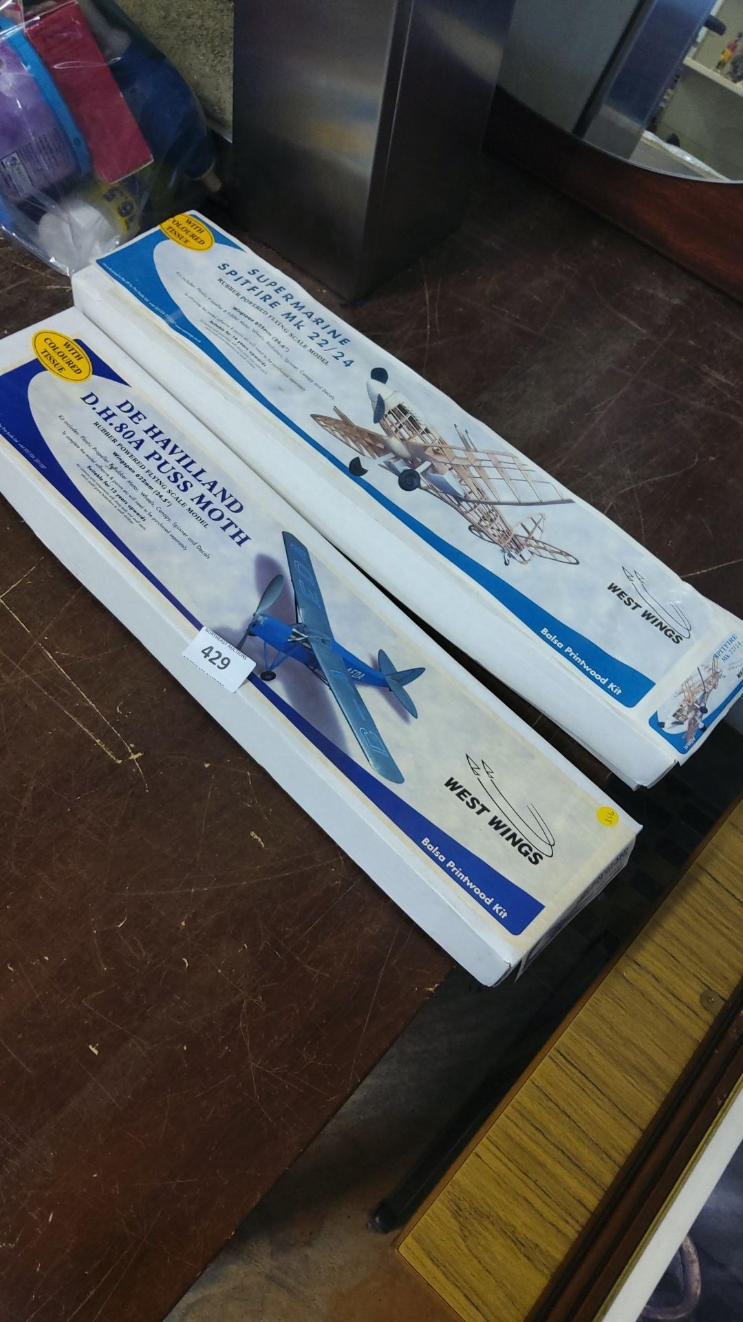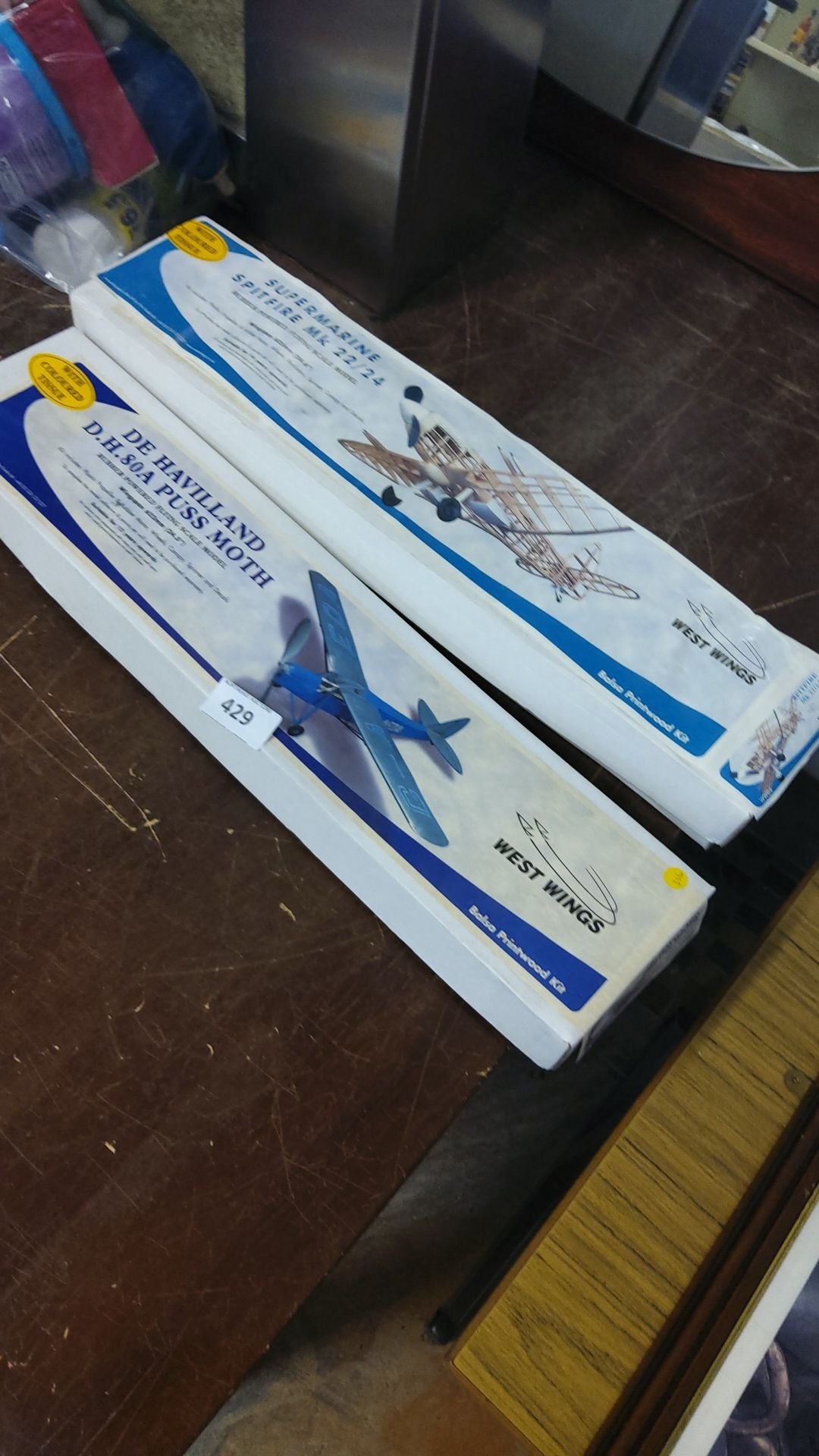 Two West Wings balsa wood kits: Supermarine Spitfire Mk.22/24 and De Havilland D.H.80A Puss Moth.