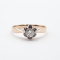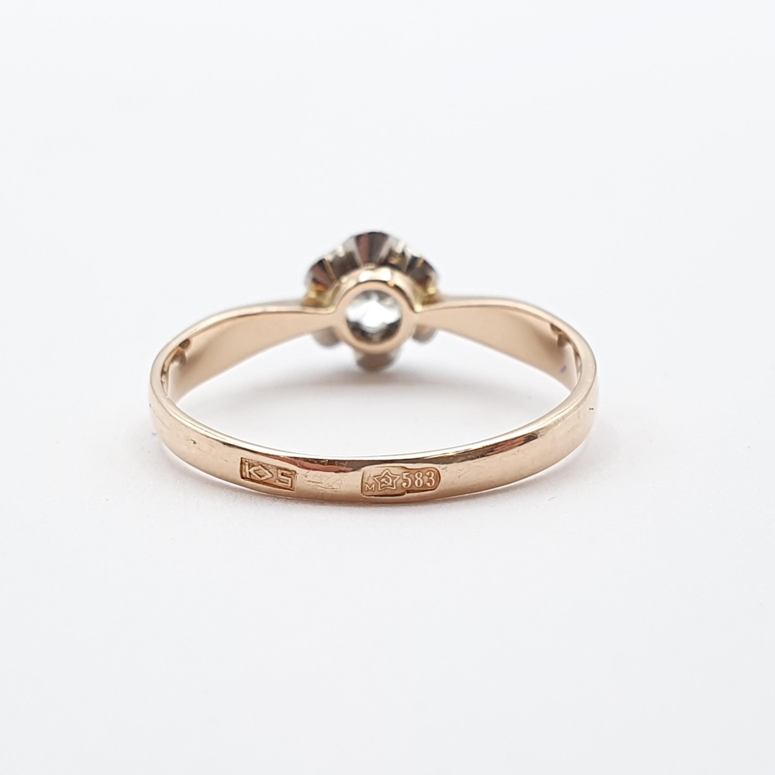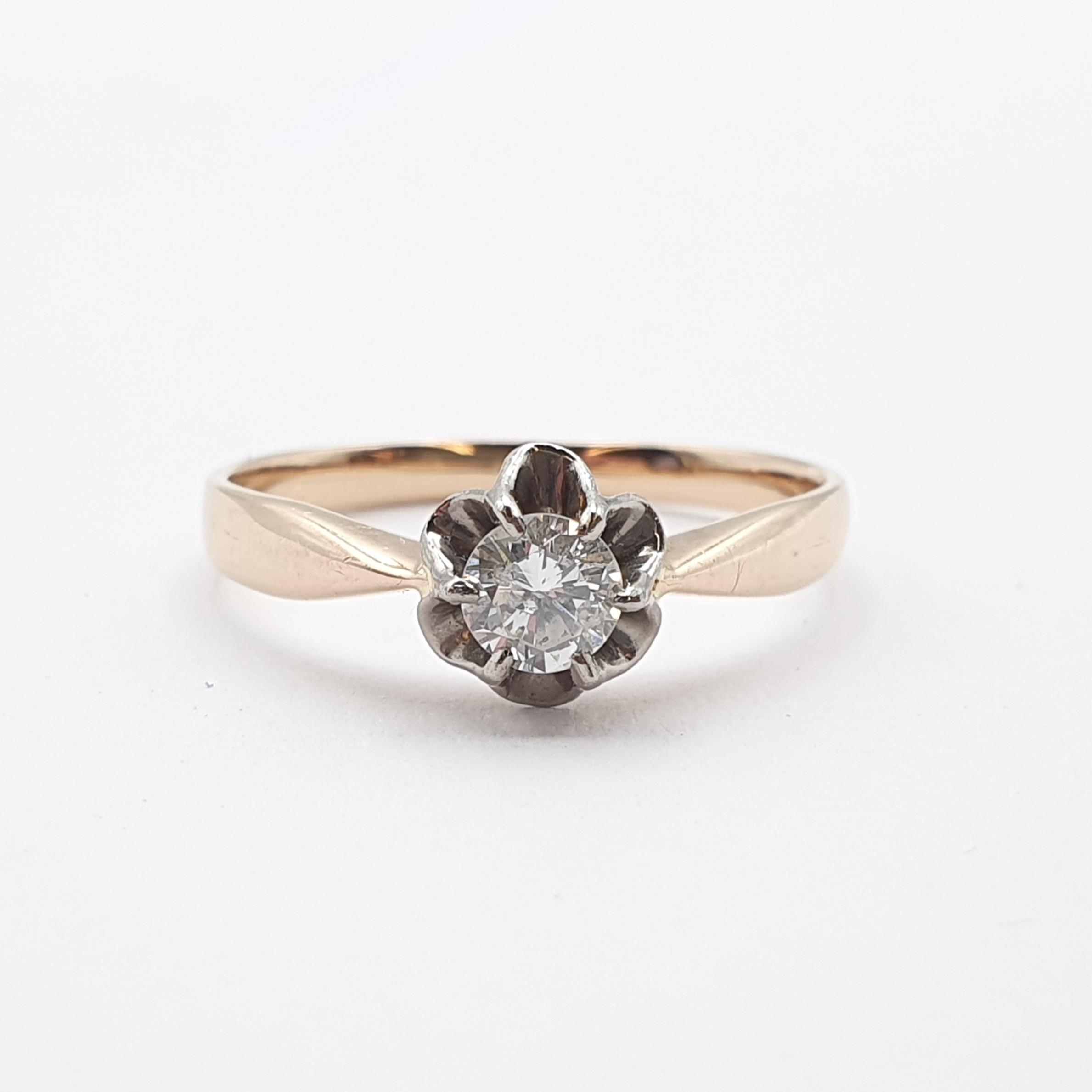 A Diamond single stone Ring claw-set brilliant-cut stone to scalloped mount, Russian marks 583, ring size O, approx 2.10gms