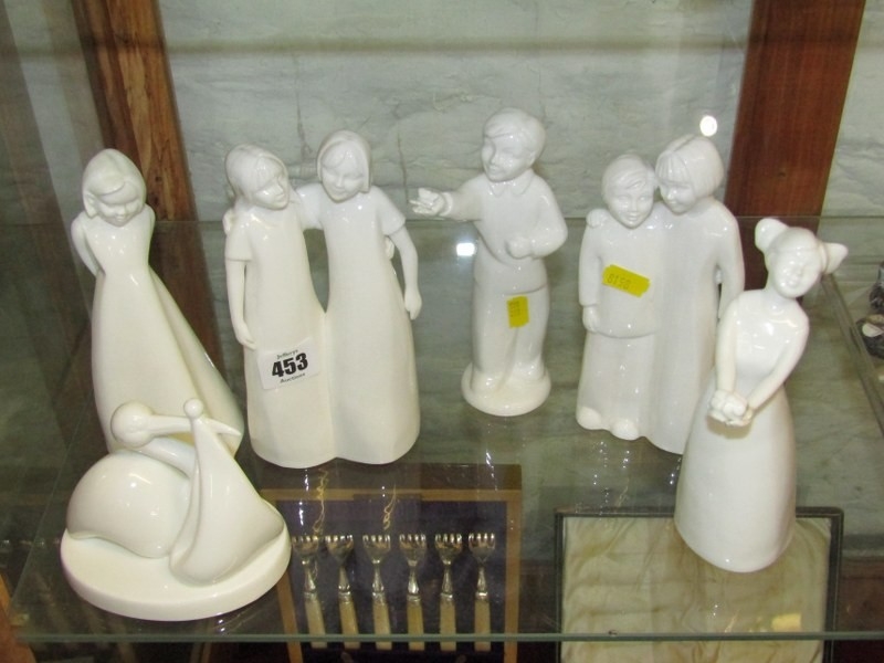 COALPORT PORCELAIN, 6 various Coalport white figurines including "A Gift From Heaven"