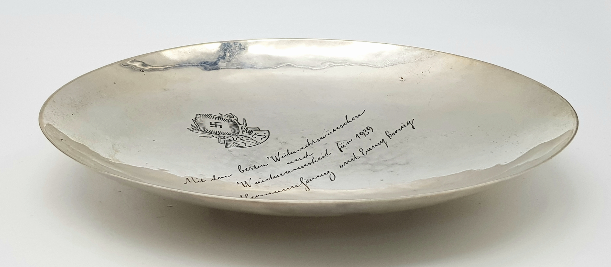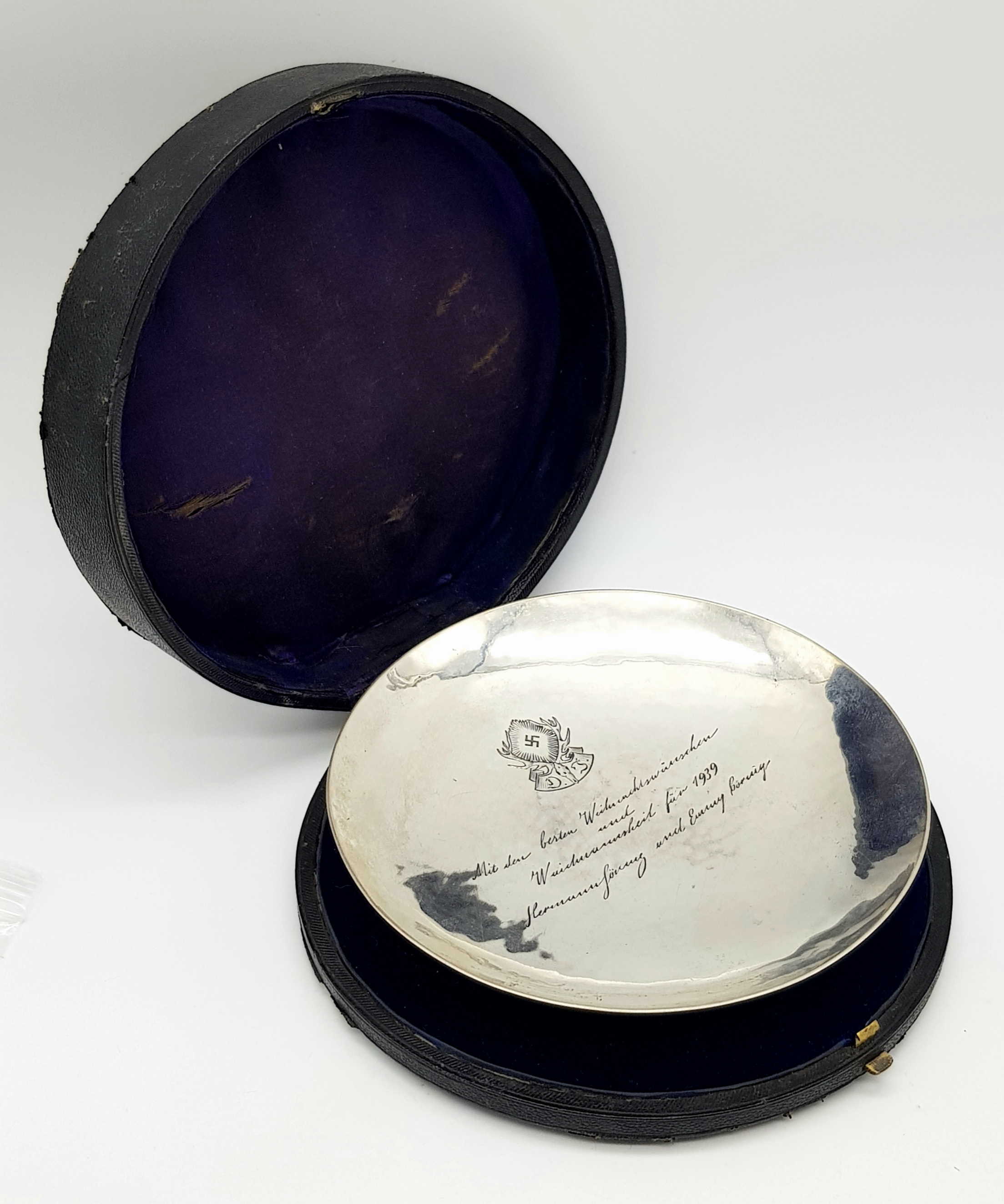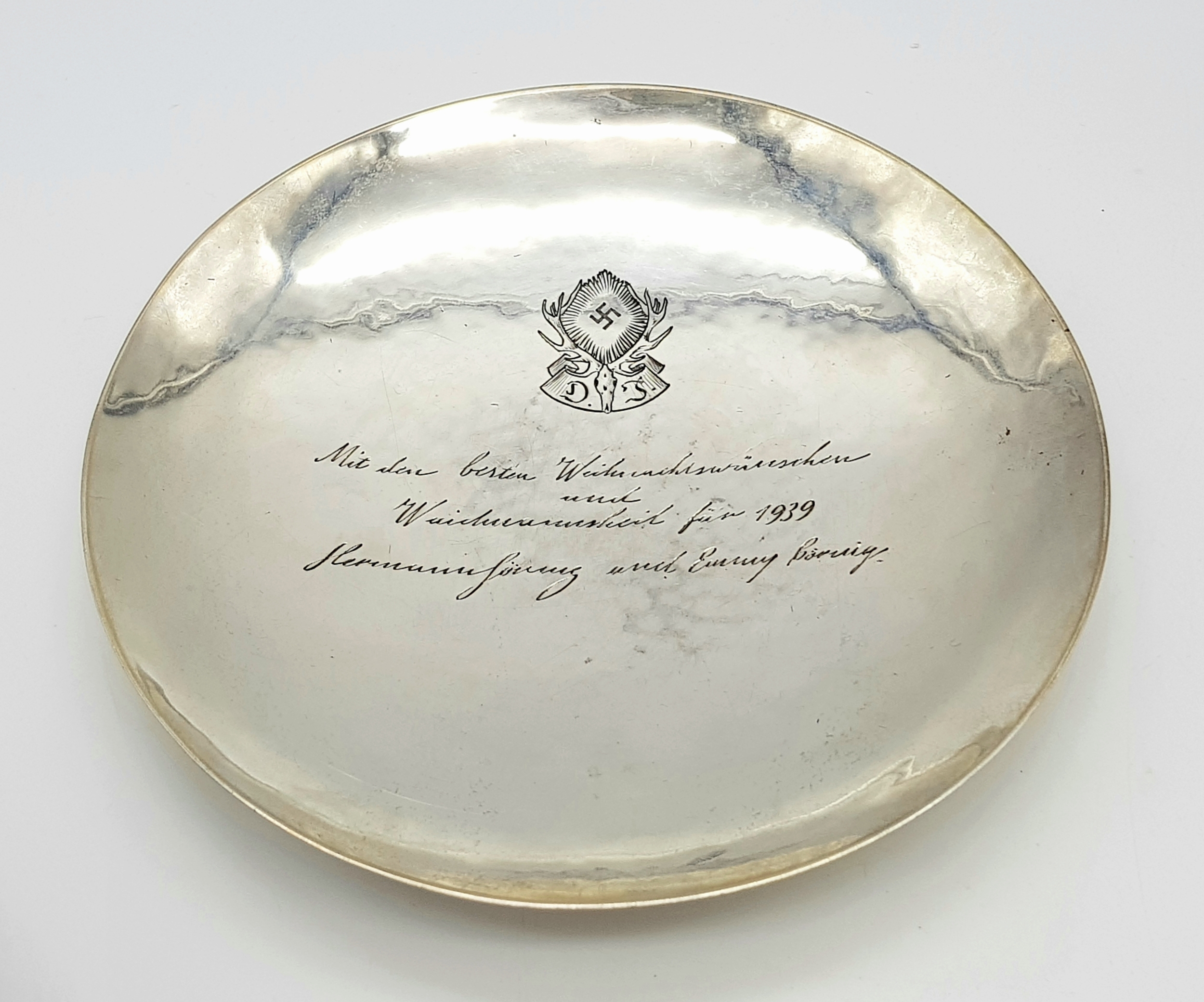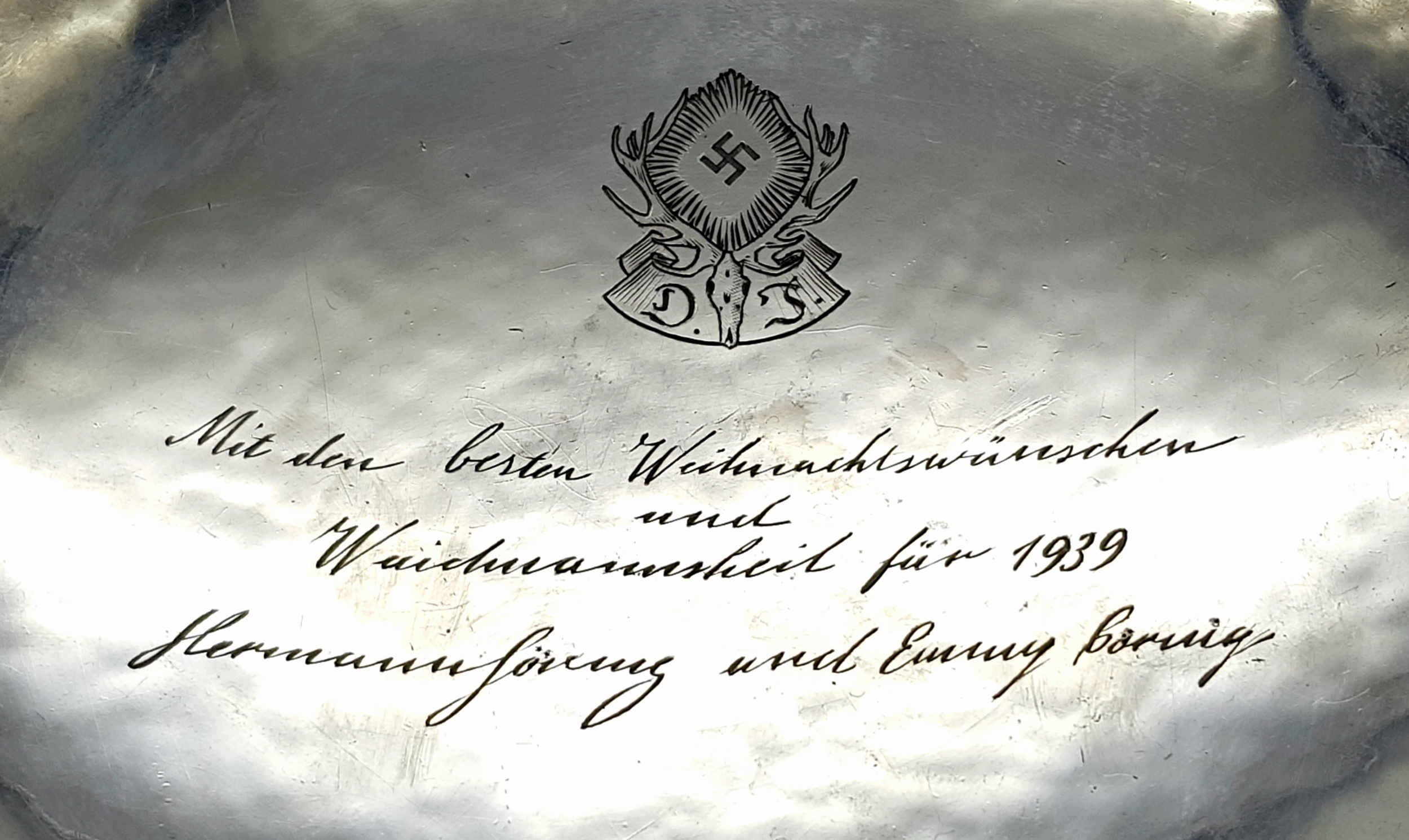 3rd Reich .875 Silver Hand Engraved Salvo. A Christmas Gift from Hermann Göering and his wife Emmy, to high ranking official in the Reich Hunting Club, Christmas 1939.