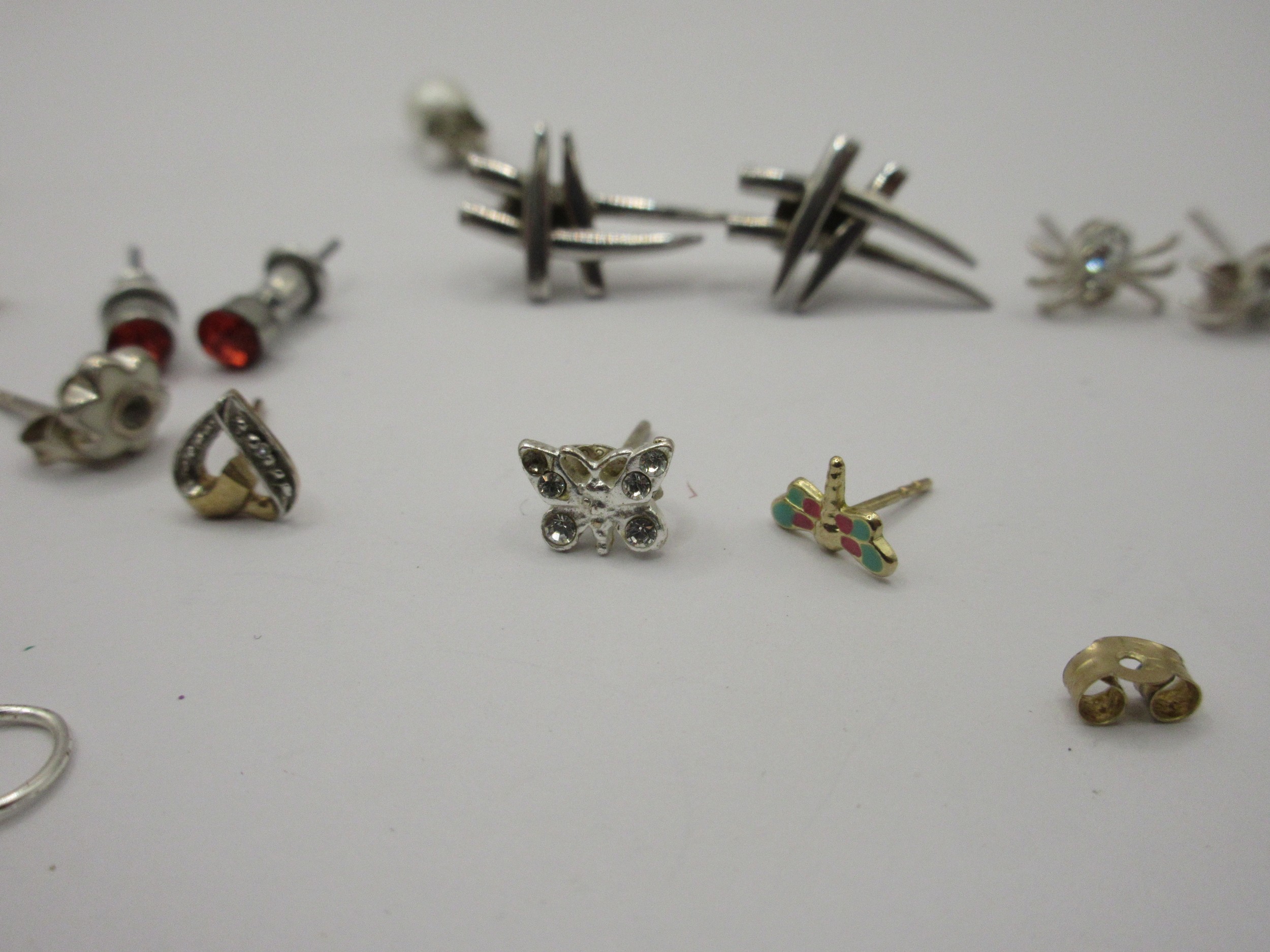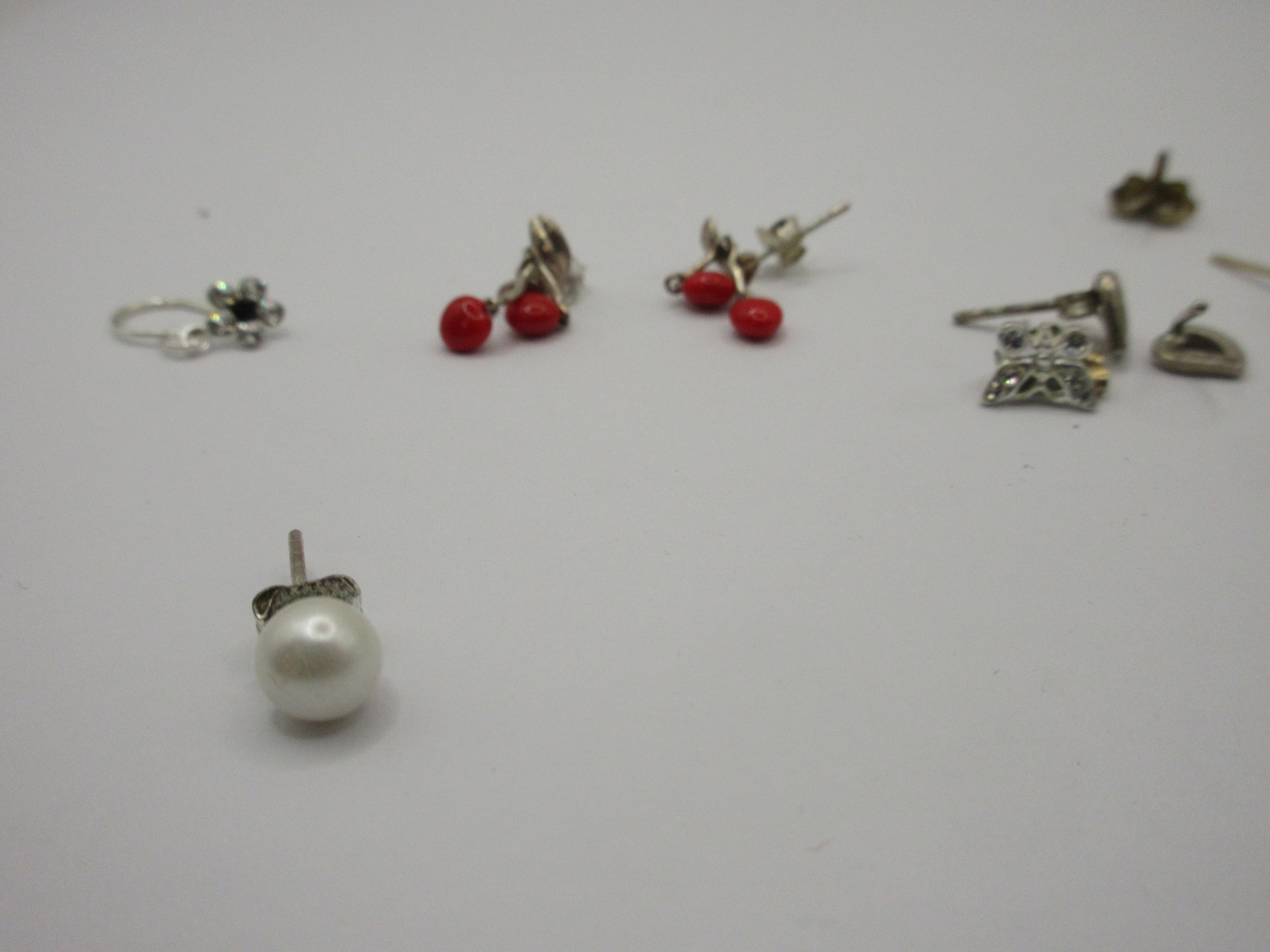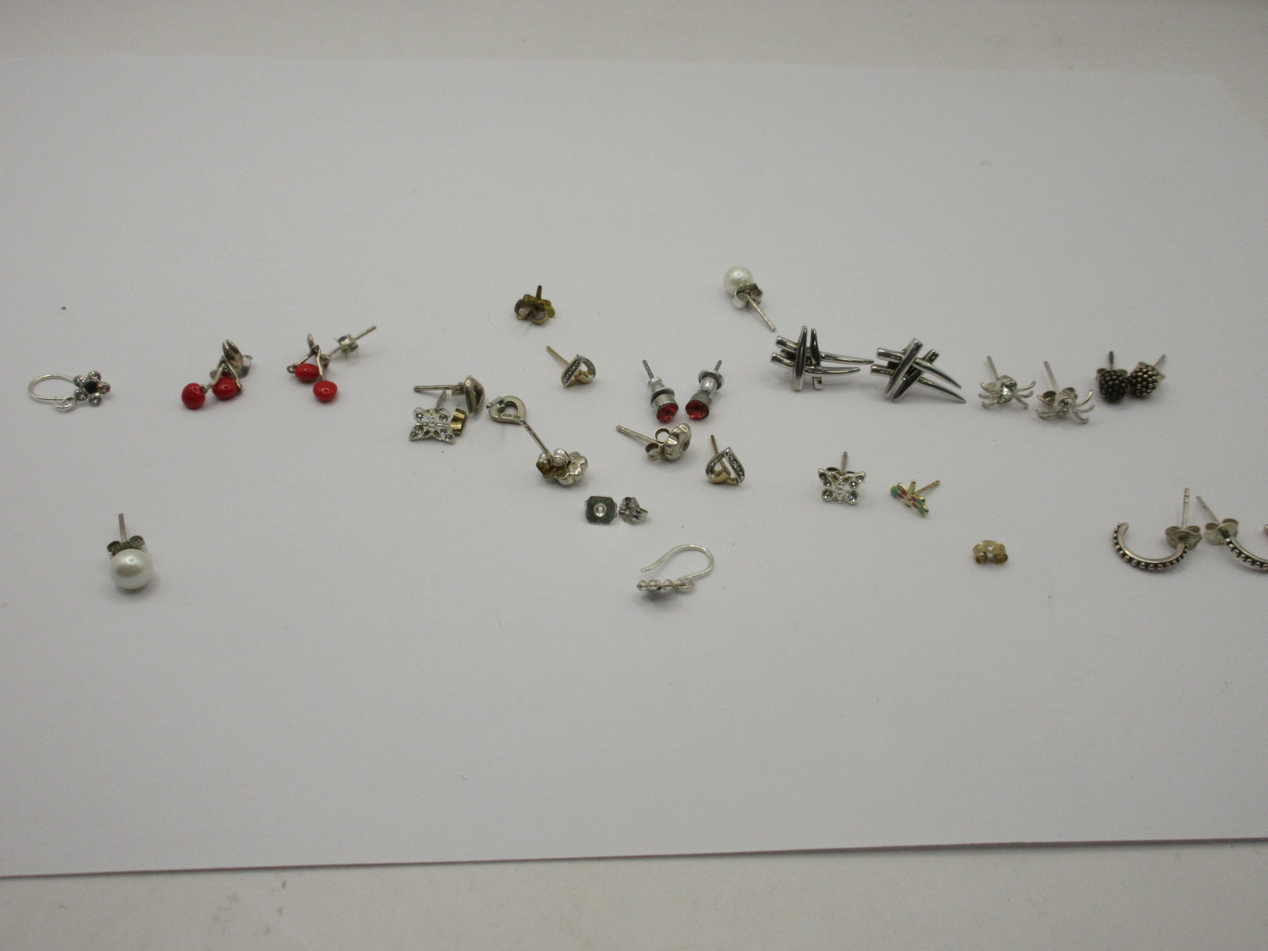 Eight pairs of 925 silver earrings and studs, together with five pairs of costume earrings