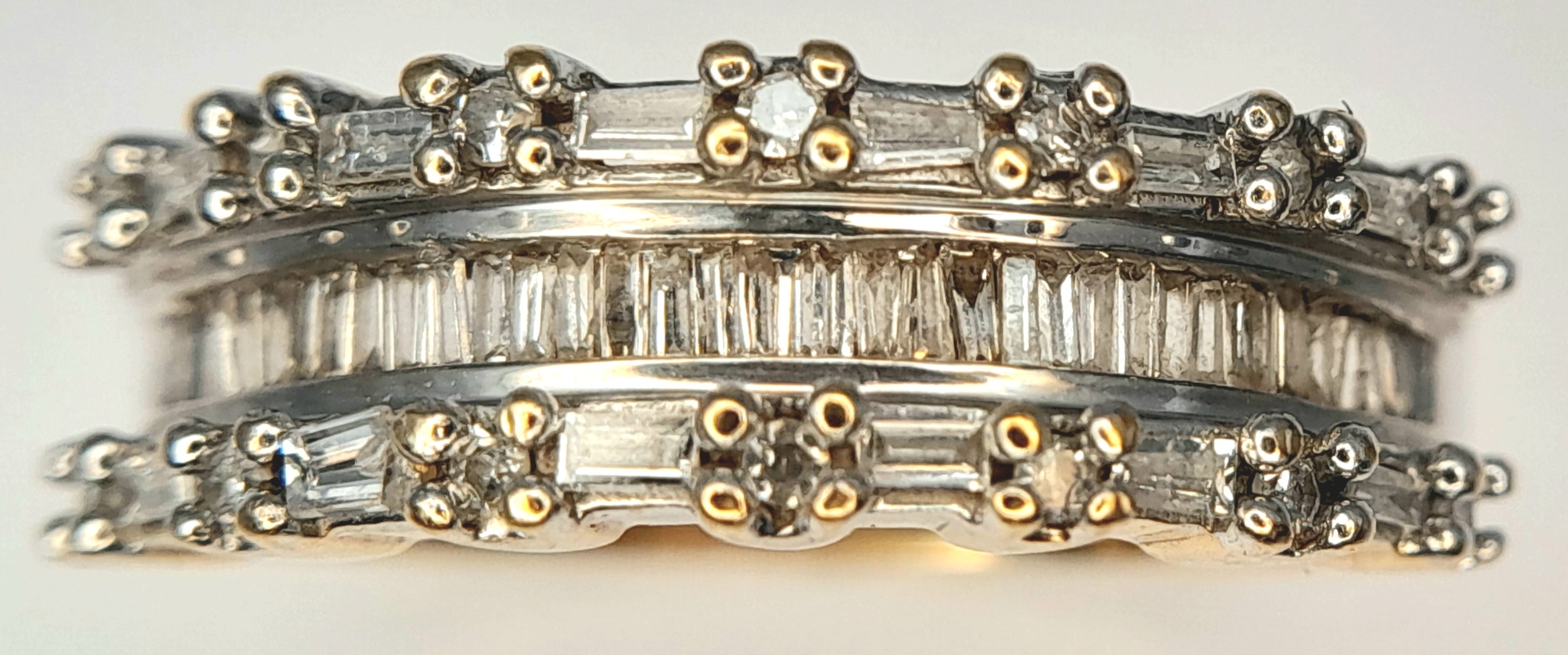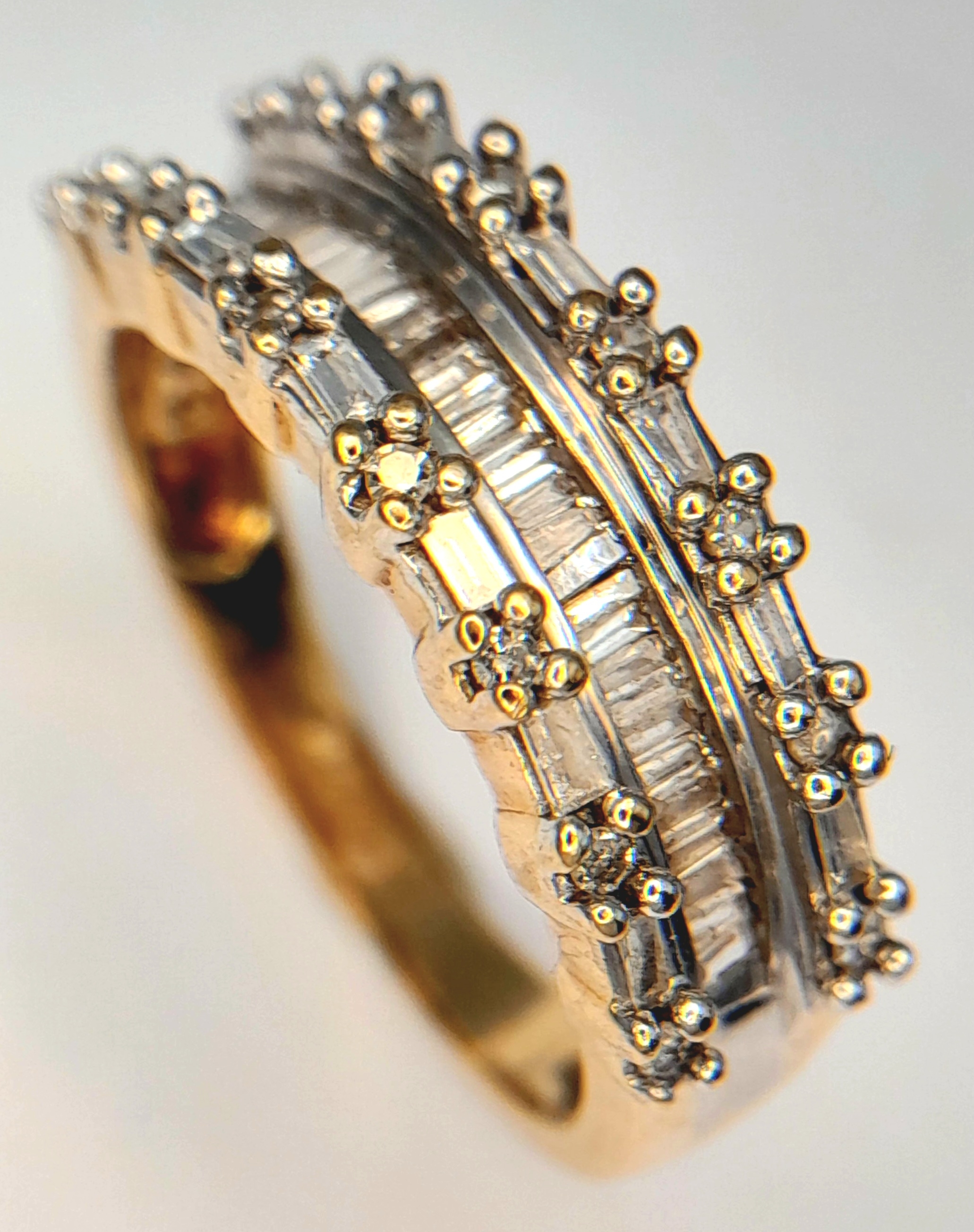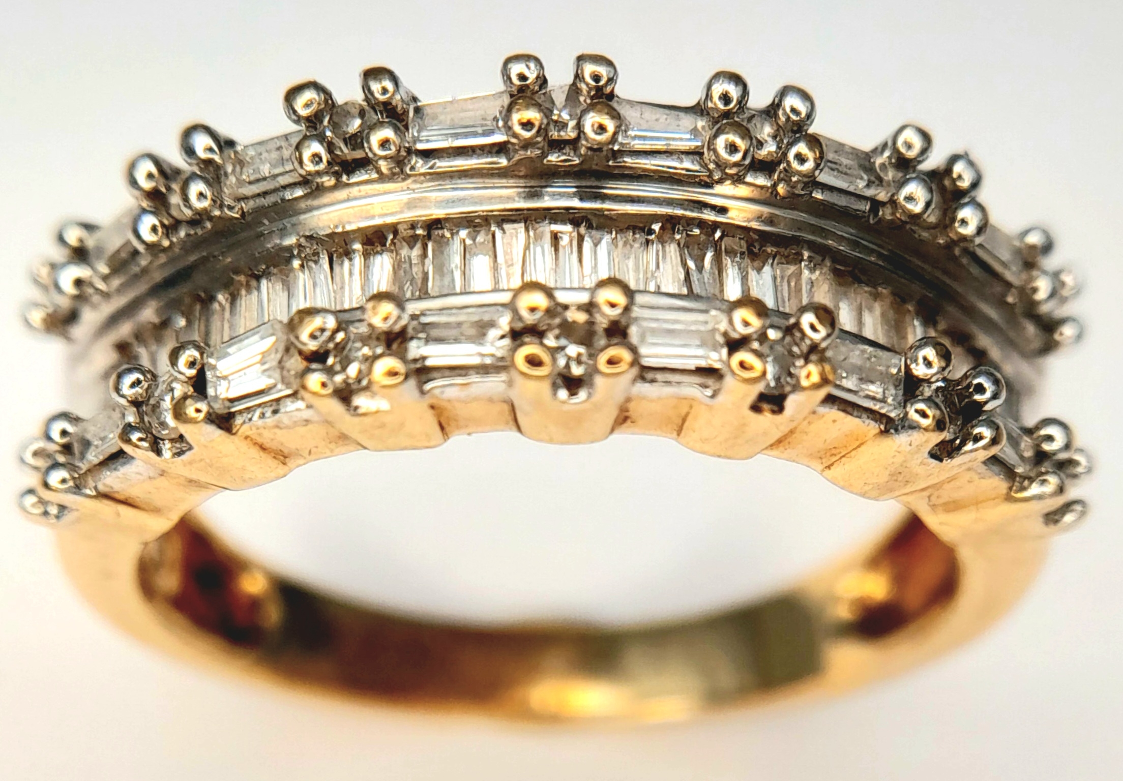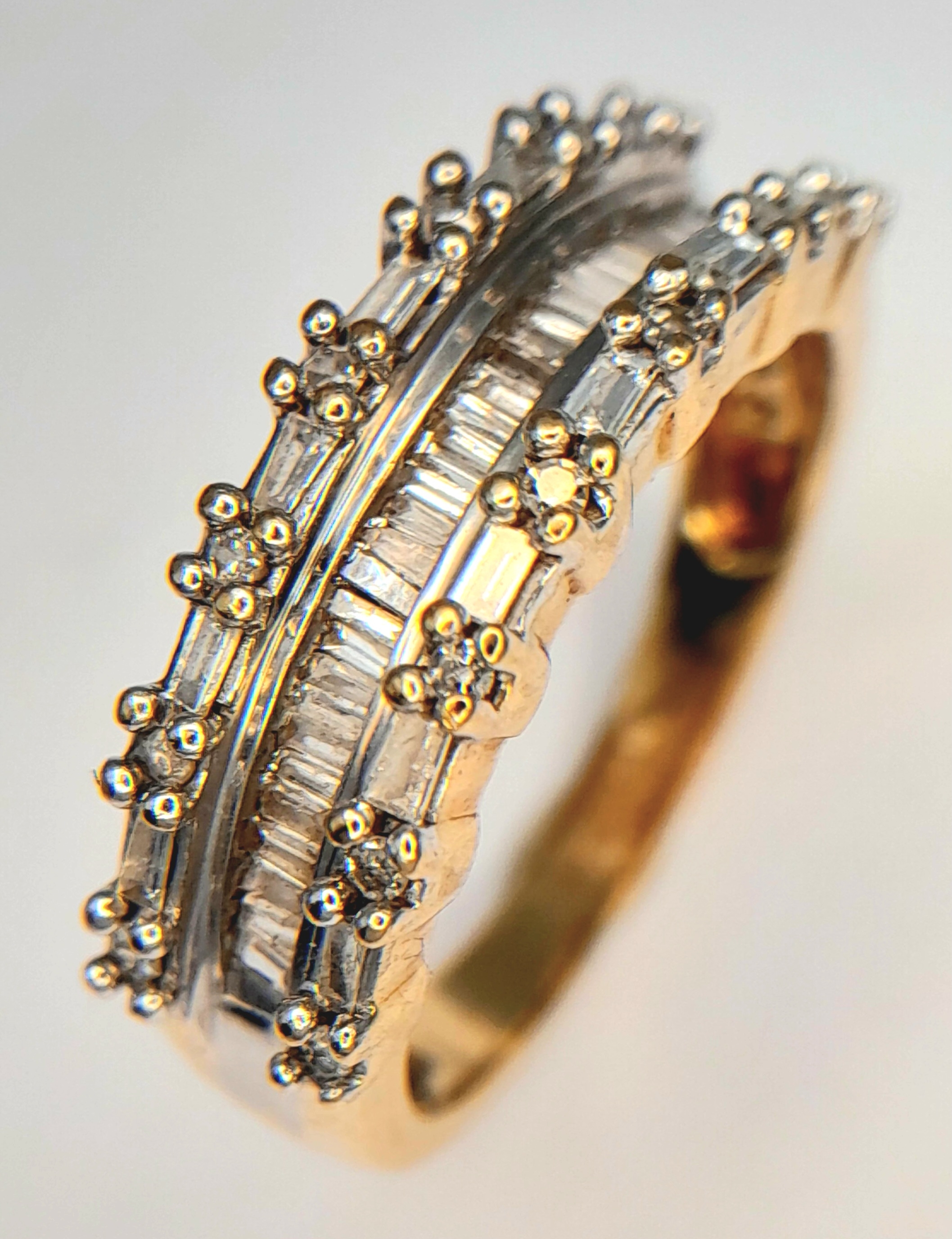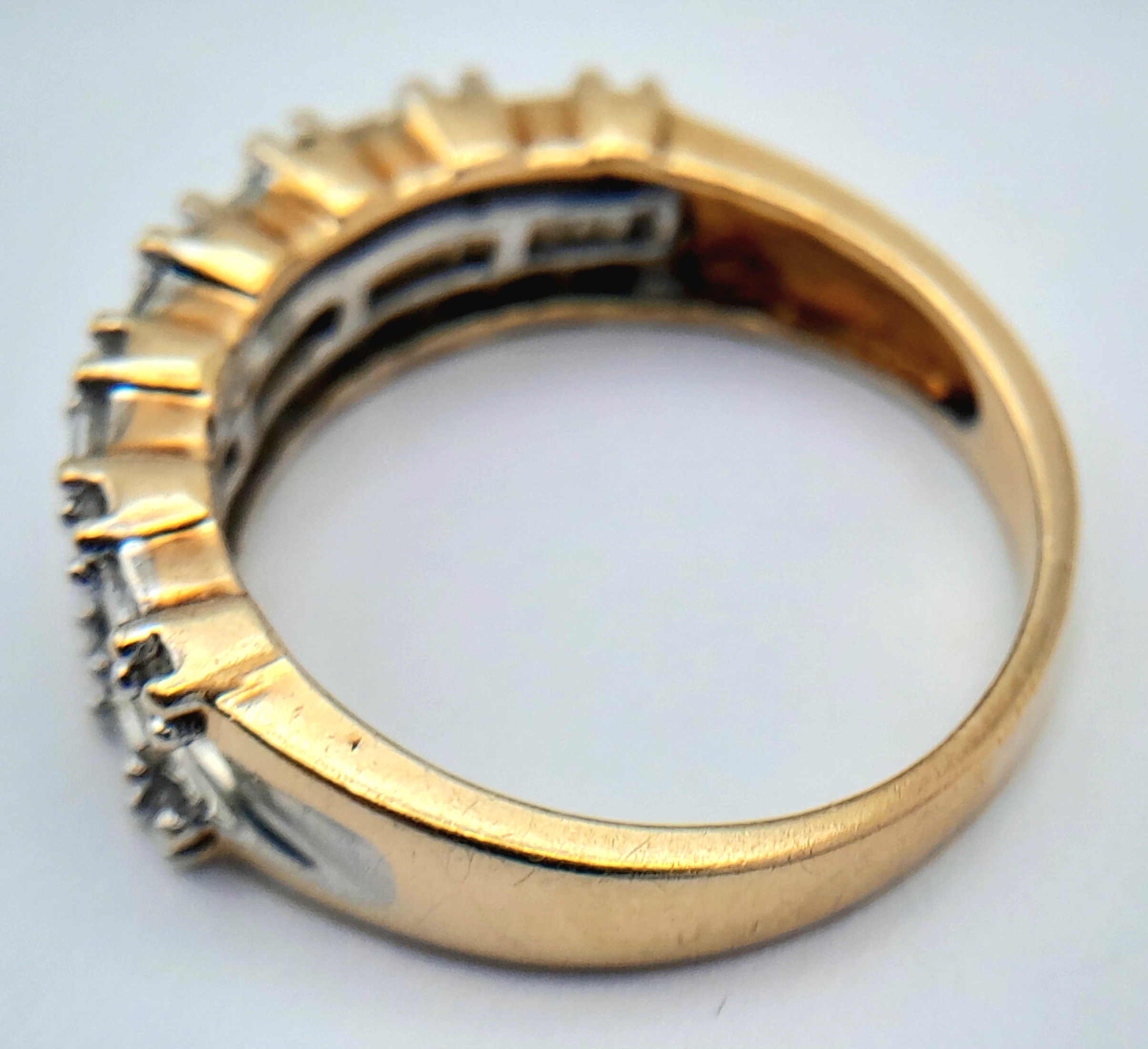 A 10K YELLOW GOLD, 3 ROW, DIAMOND SET RING. 0.30 CTW, 3.6G, SIZE N. SC 7001