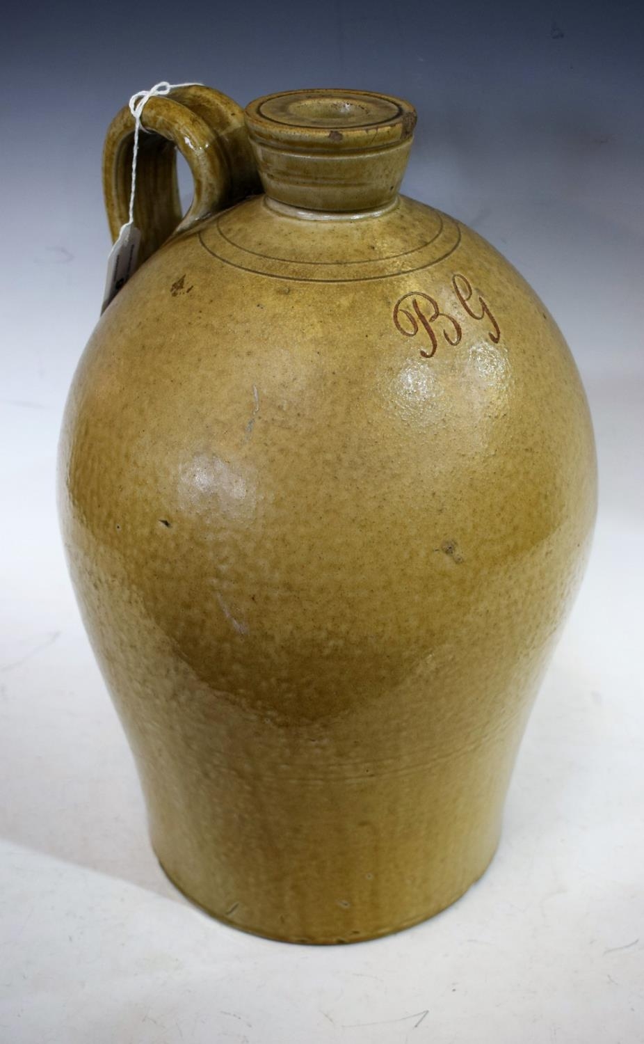 A large stoneware flagon incised initials BG, approx 40cm high