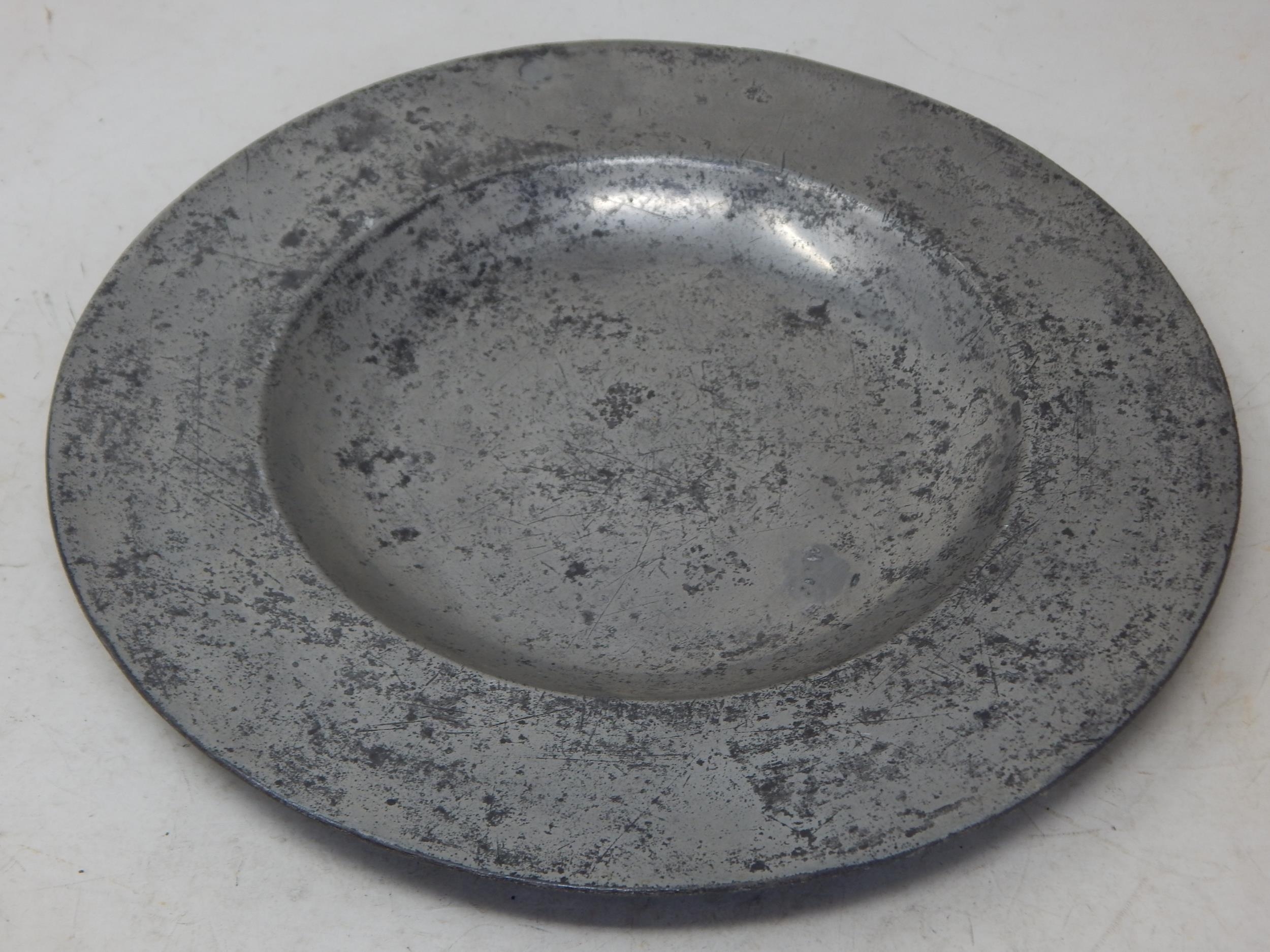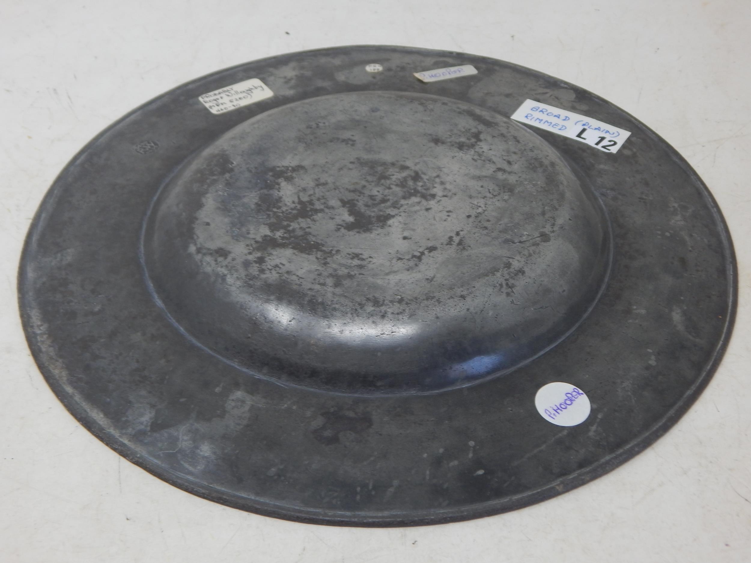 Charles II Pewter Broad Rimmed Plate c.1660 by Roger Willoughby: Diameter 28.6cm