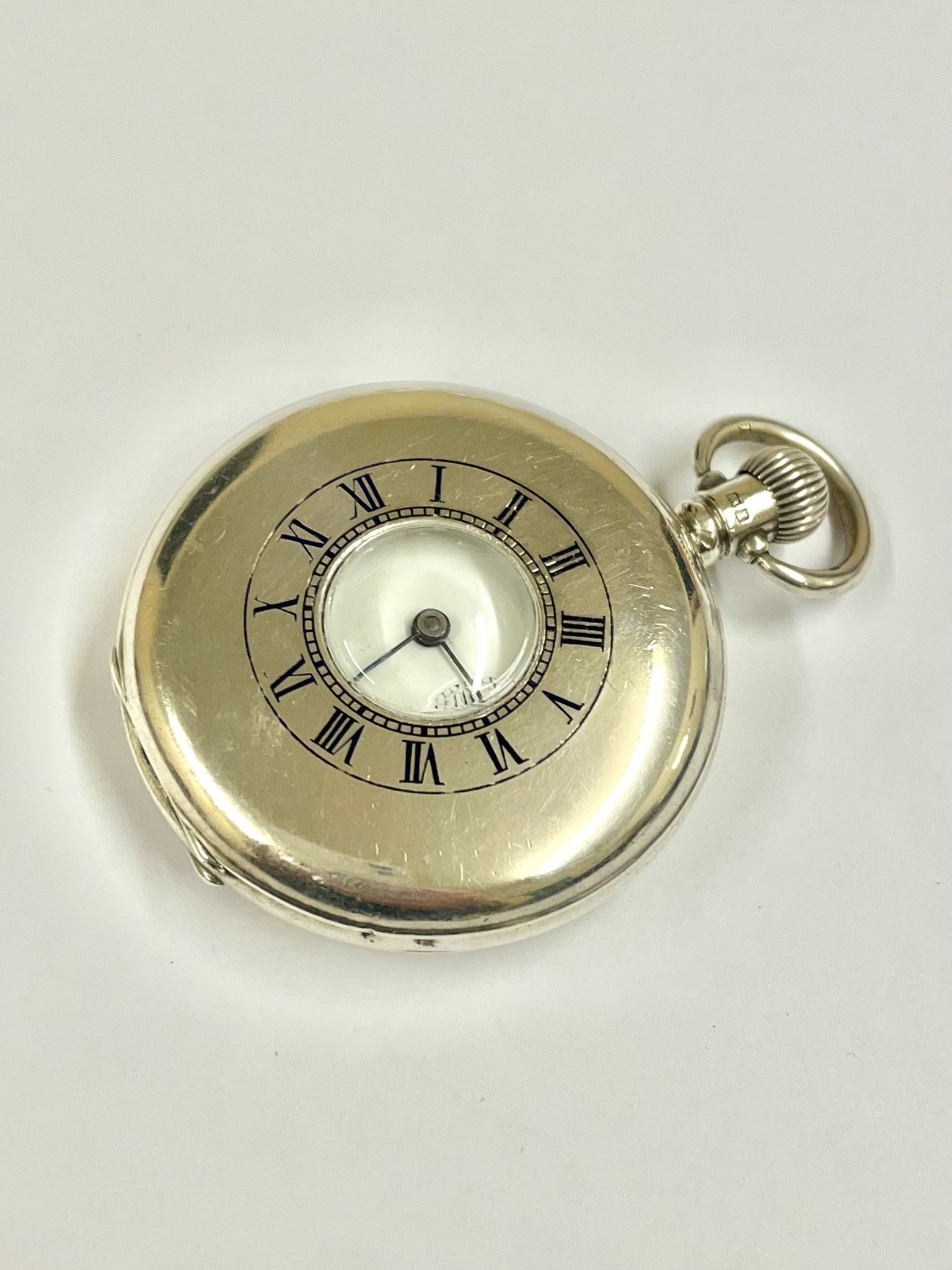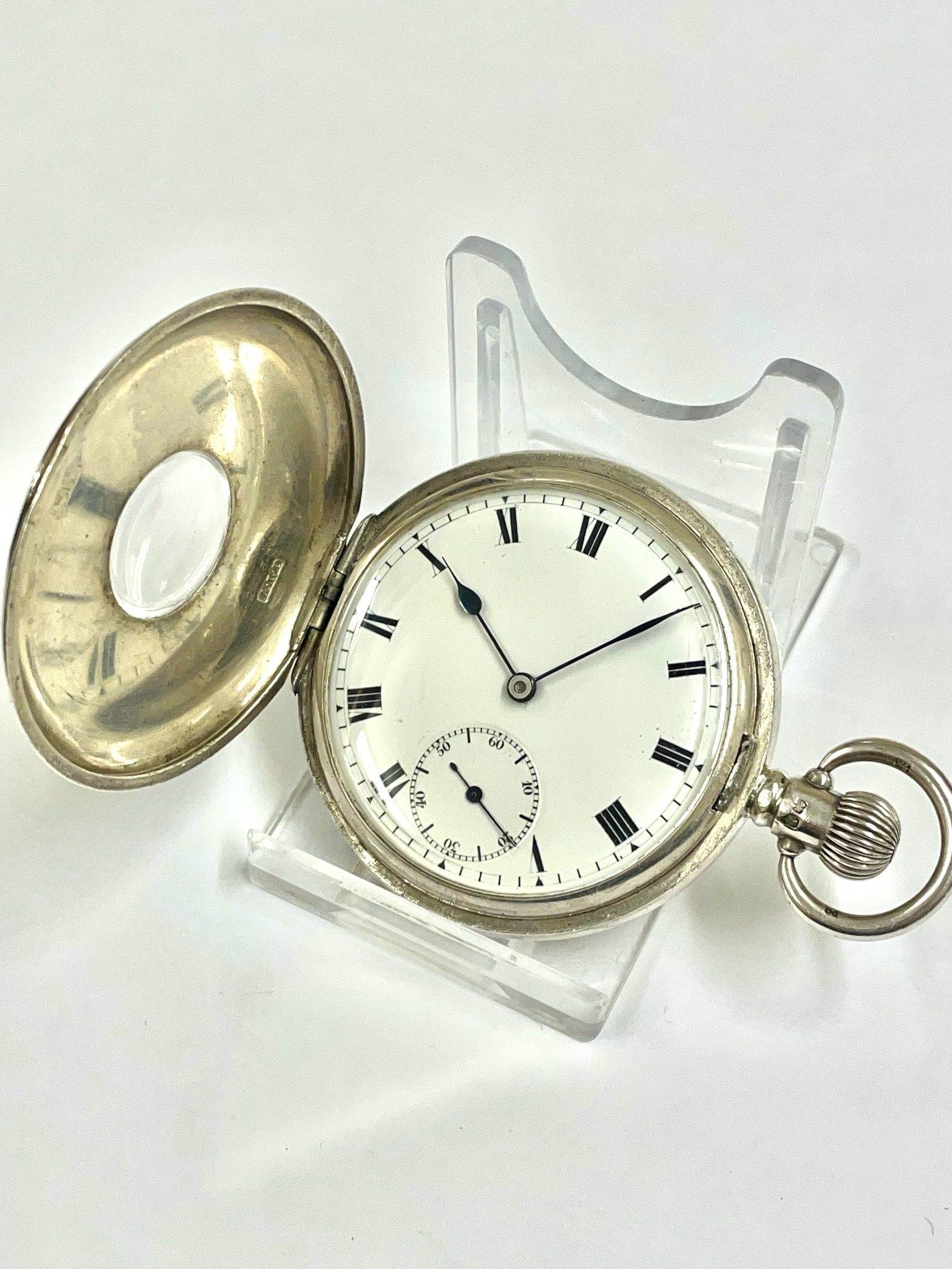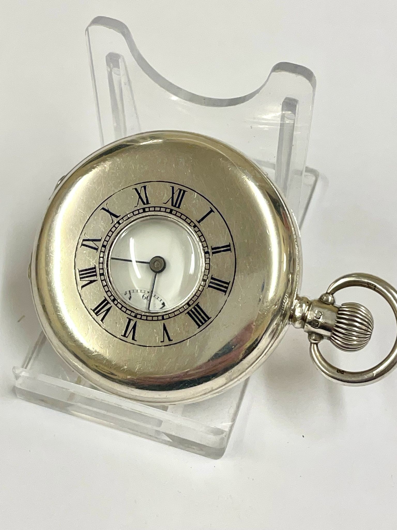 A GENTS SILVER HALF HUNTER POCKET WATCH. IN WORKING ORDER . REF: LU15/16.