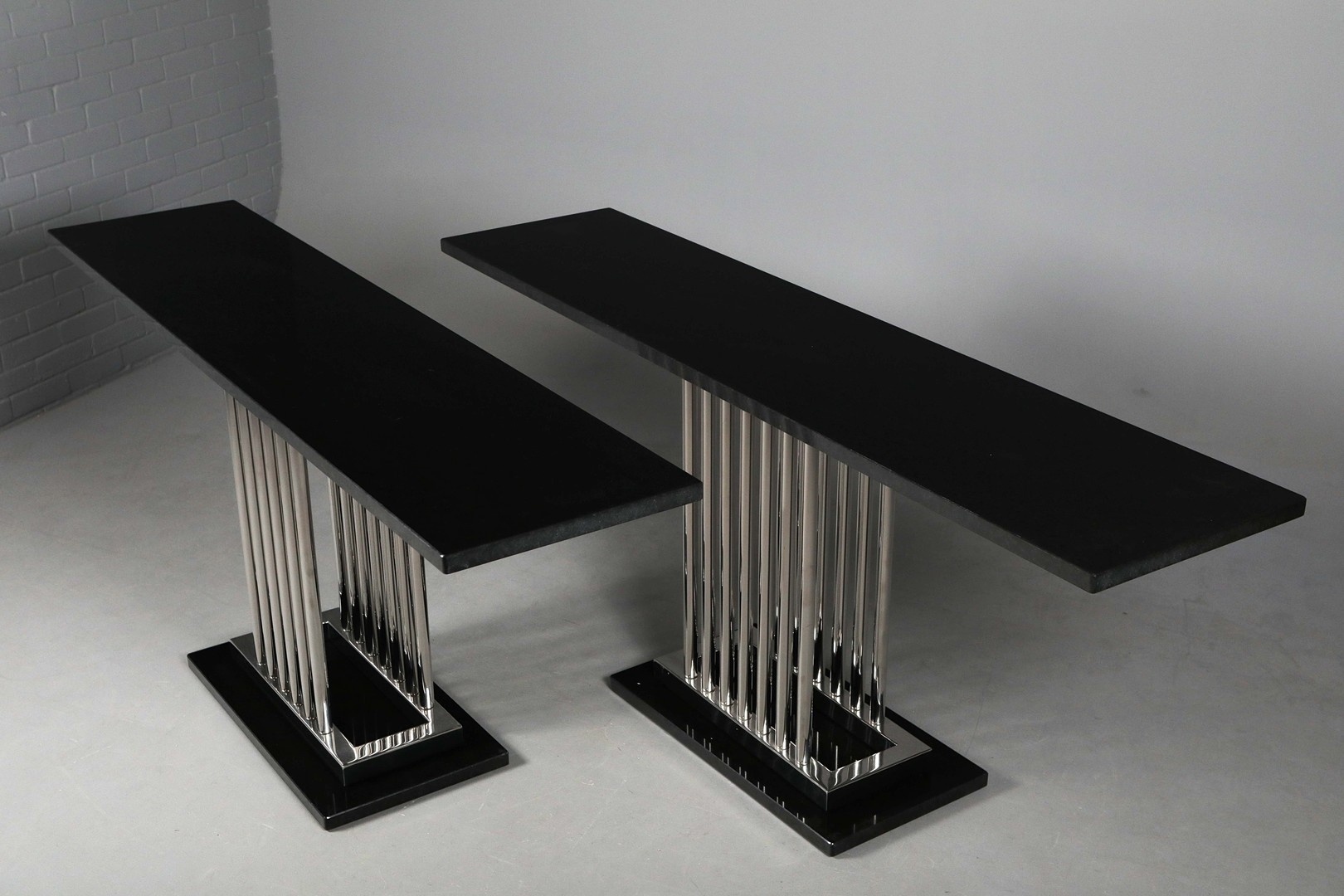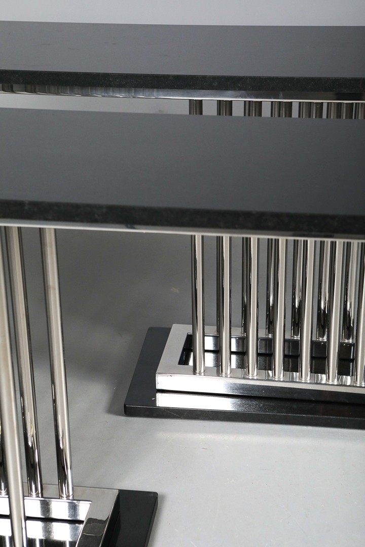 ATTRIBUTED TO DECORUS MILAN CONSOLE TABLES, A PAIR. each 200cm x 45cm x 86cm approx. (2).