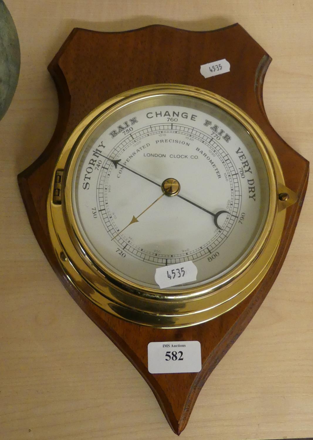 Mounted Circular Brass Compensated Barometer by London Clock co.