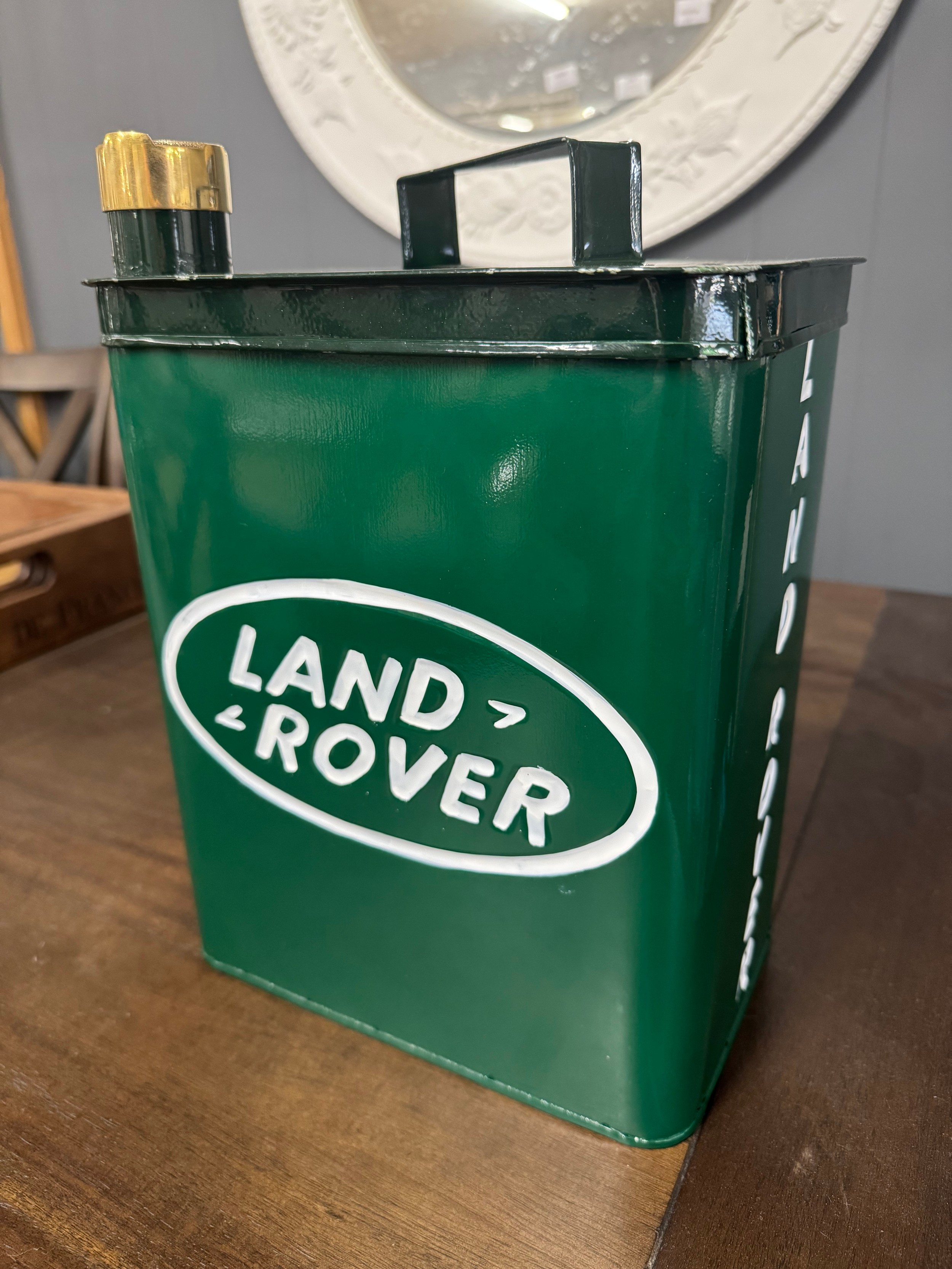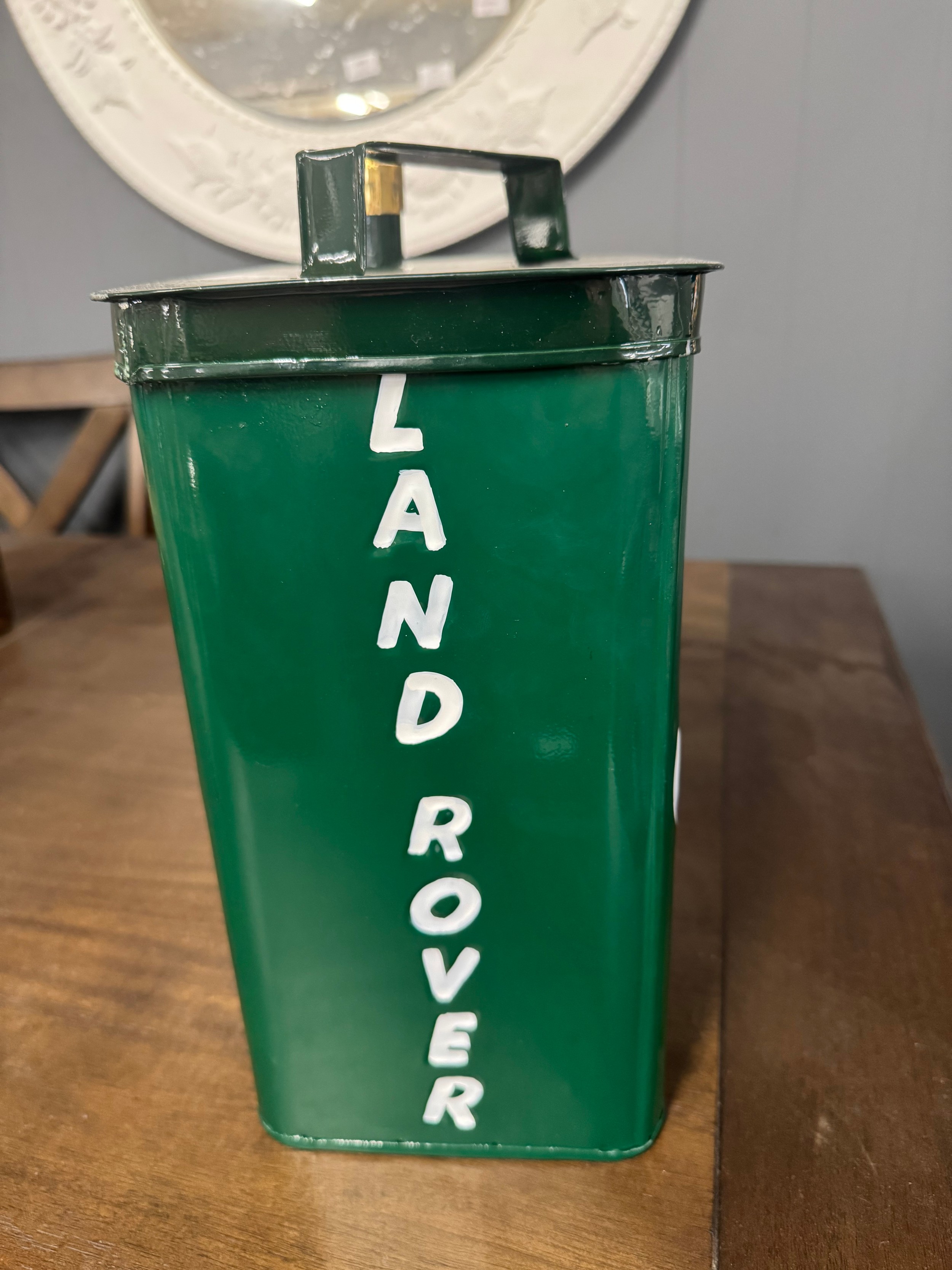 An oil can bearing the Land Rover inscription