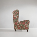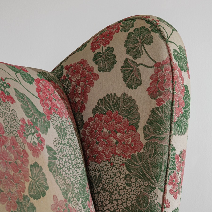 Coppia di grandi poltrone bergère. Legno tornito, tessuto imbottito. Italia, anni '40. Perizia Gio Ponti Archives.