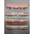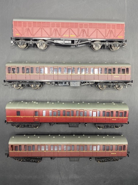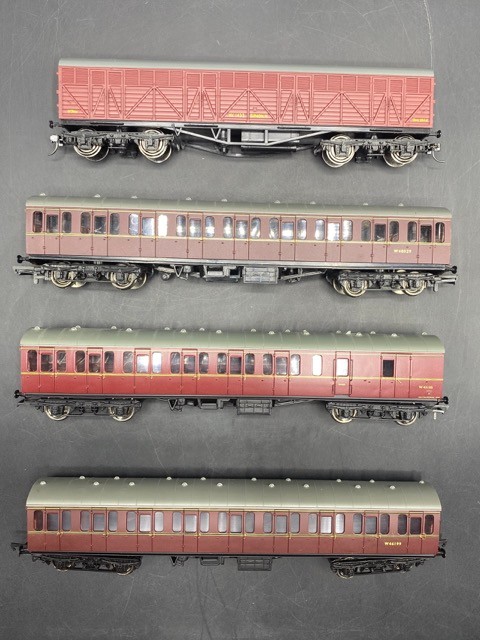OO gauge Rake of four BR Suburban Maroon coaches