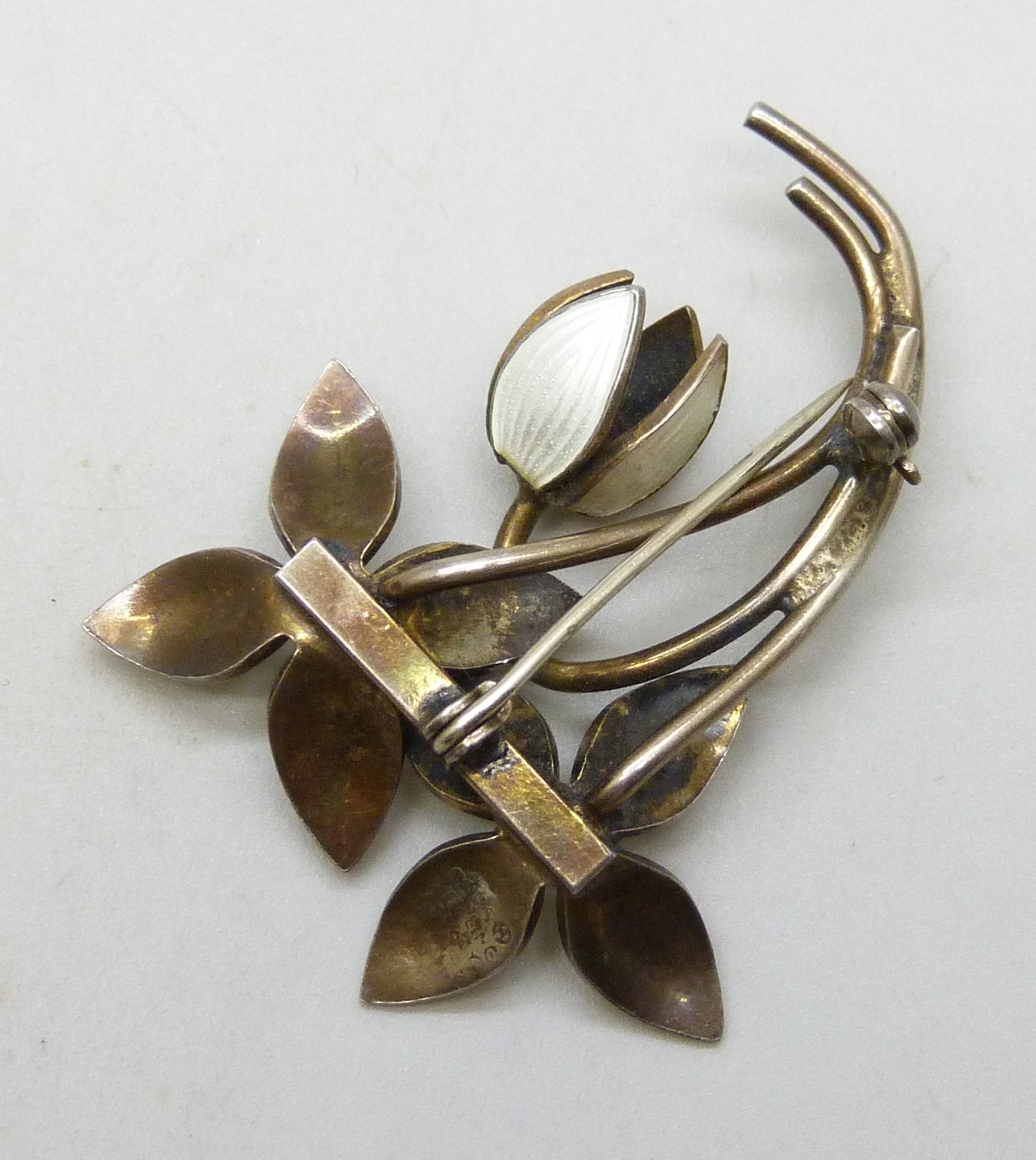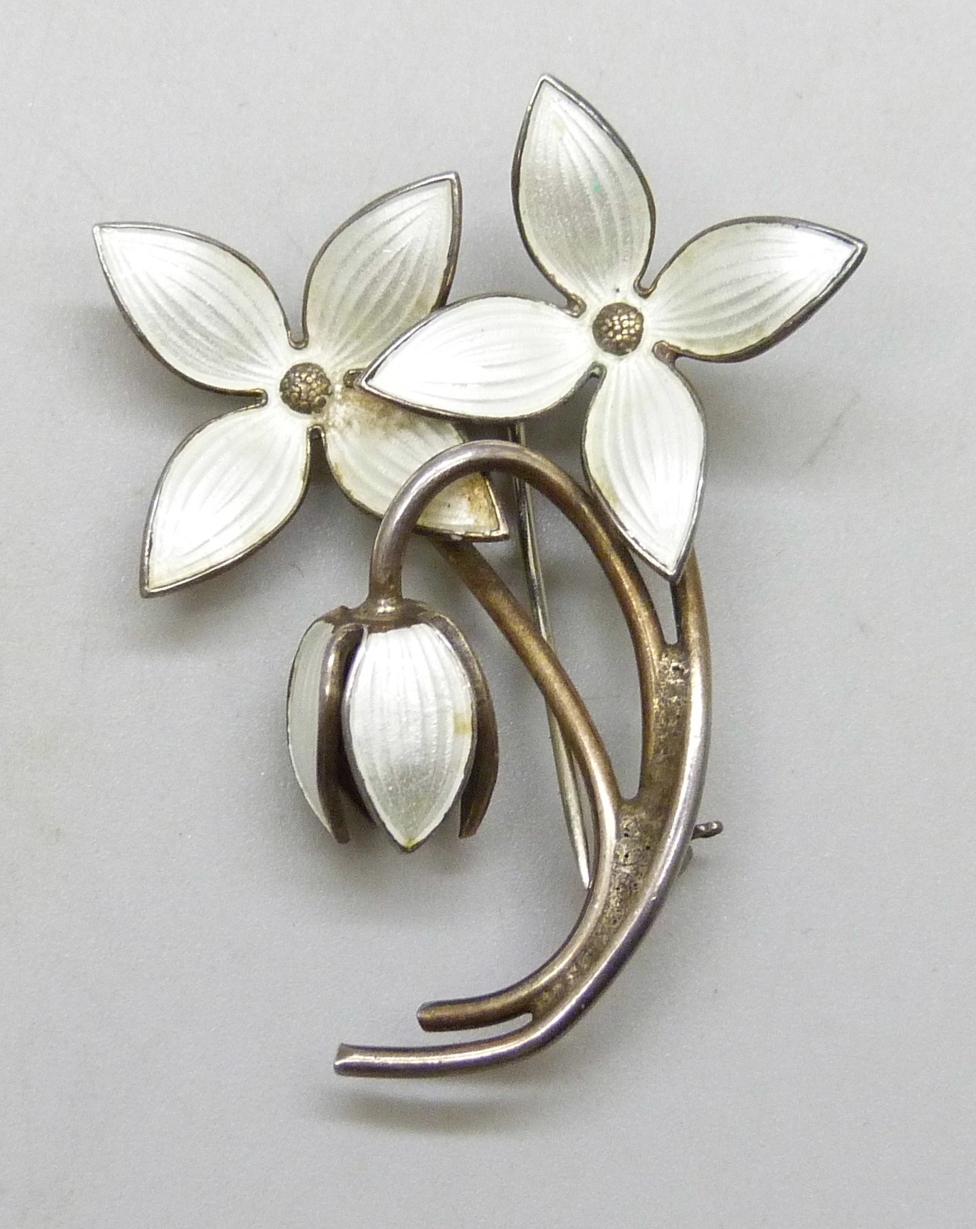 Ivar Holth, a Norwegian silver and enamel flower brooch, 3.9cm