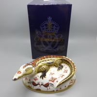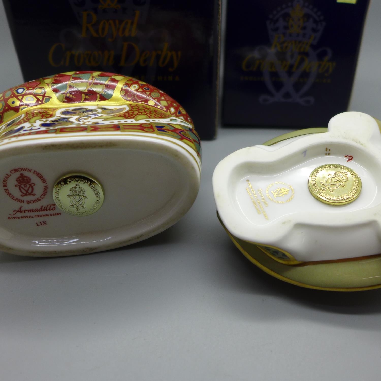 Two Royal Crown Derby paperweights - Terrapin, a gold signature edition commissioned by The Guild of China & Glass Retailers, gold stopper, certificate and box, Armadillo with gold stopper and box