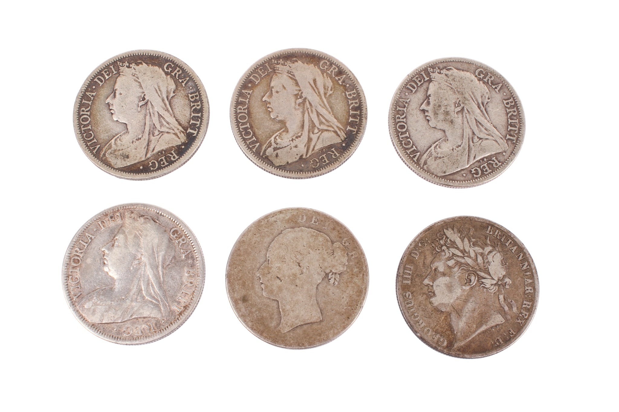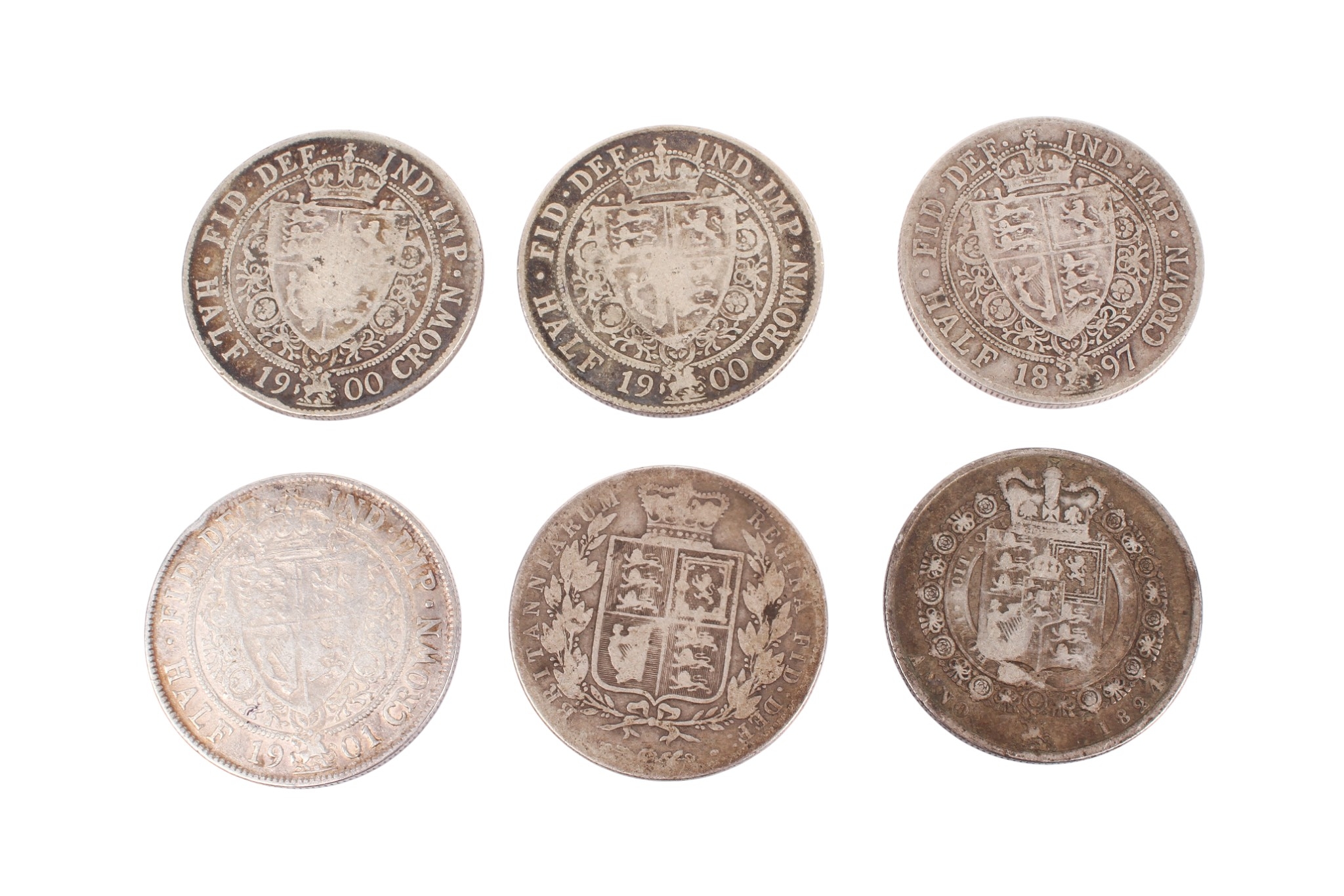 A group of six half crowns. Including 1824, 1897 aand 2x 1900, 1901 and one wiht unclear date