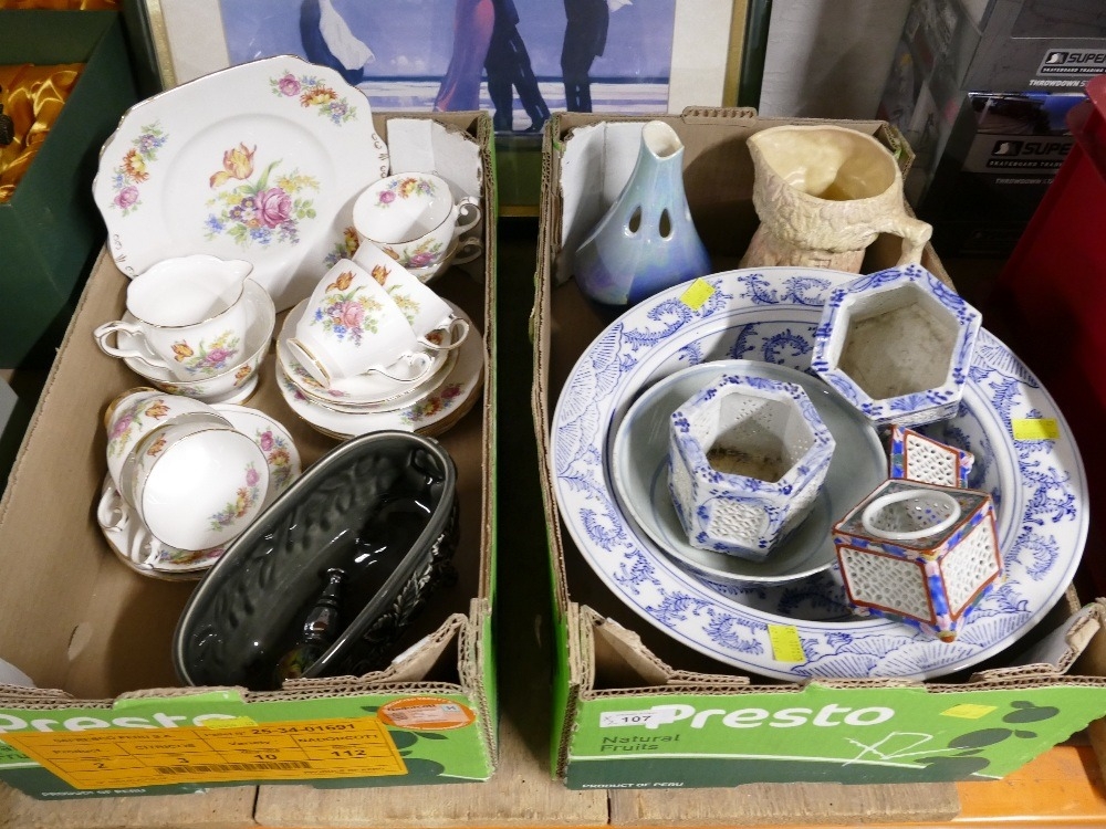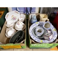 Boxes of teaware, ceramic ornaments, bowls etc