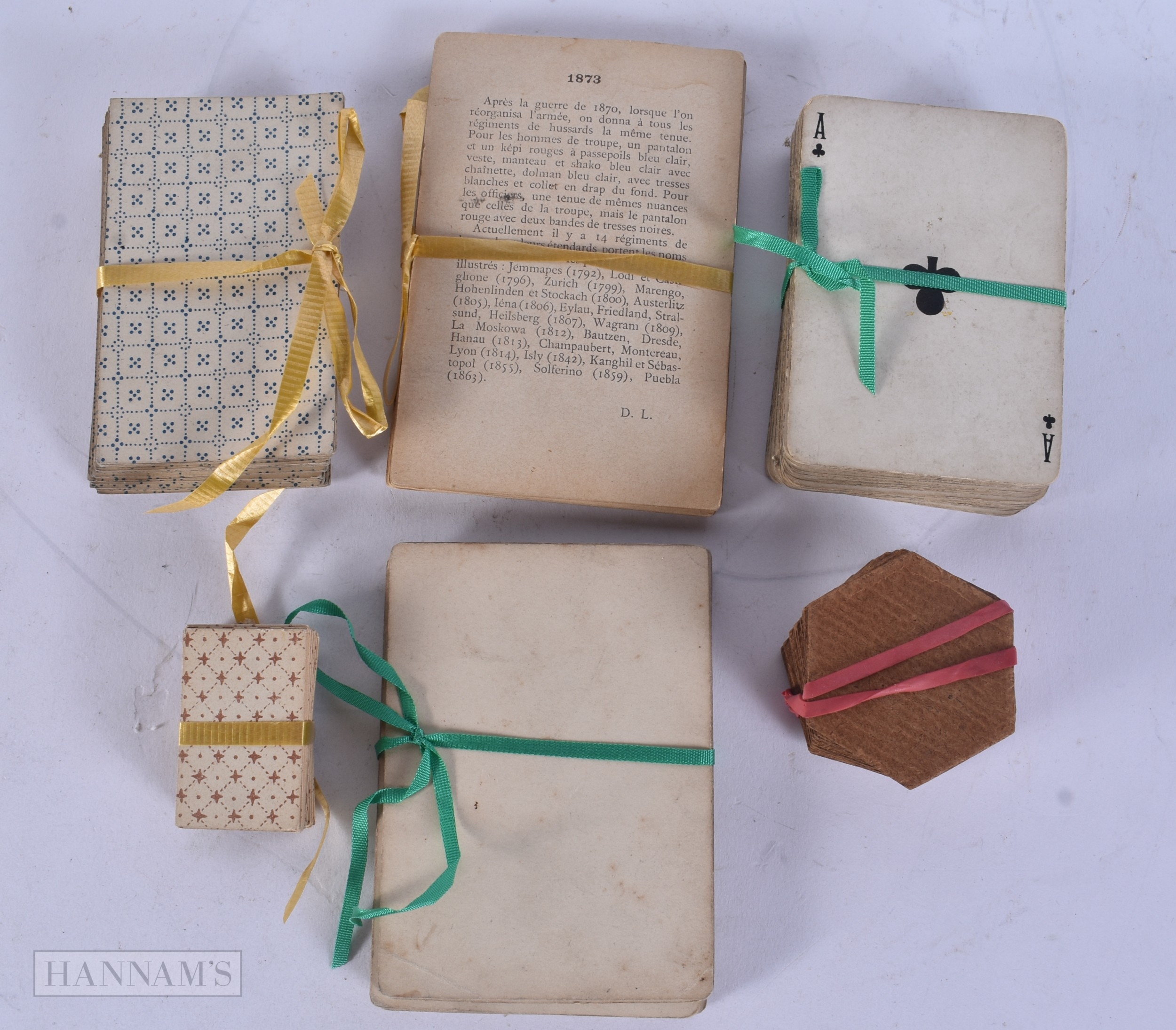 FIVE PART SETS OF VINTAGE PLAYING CARDS and a set of miniature cards, including Devaud. (qty)