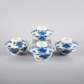 A SET OF FOUR CHINESE PORCELAIN BLUE AND WHITE GAIWANS